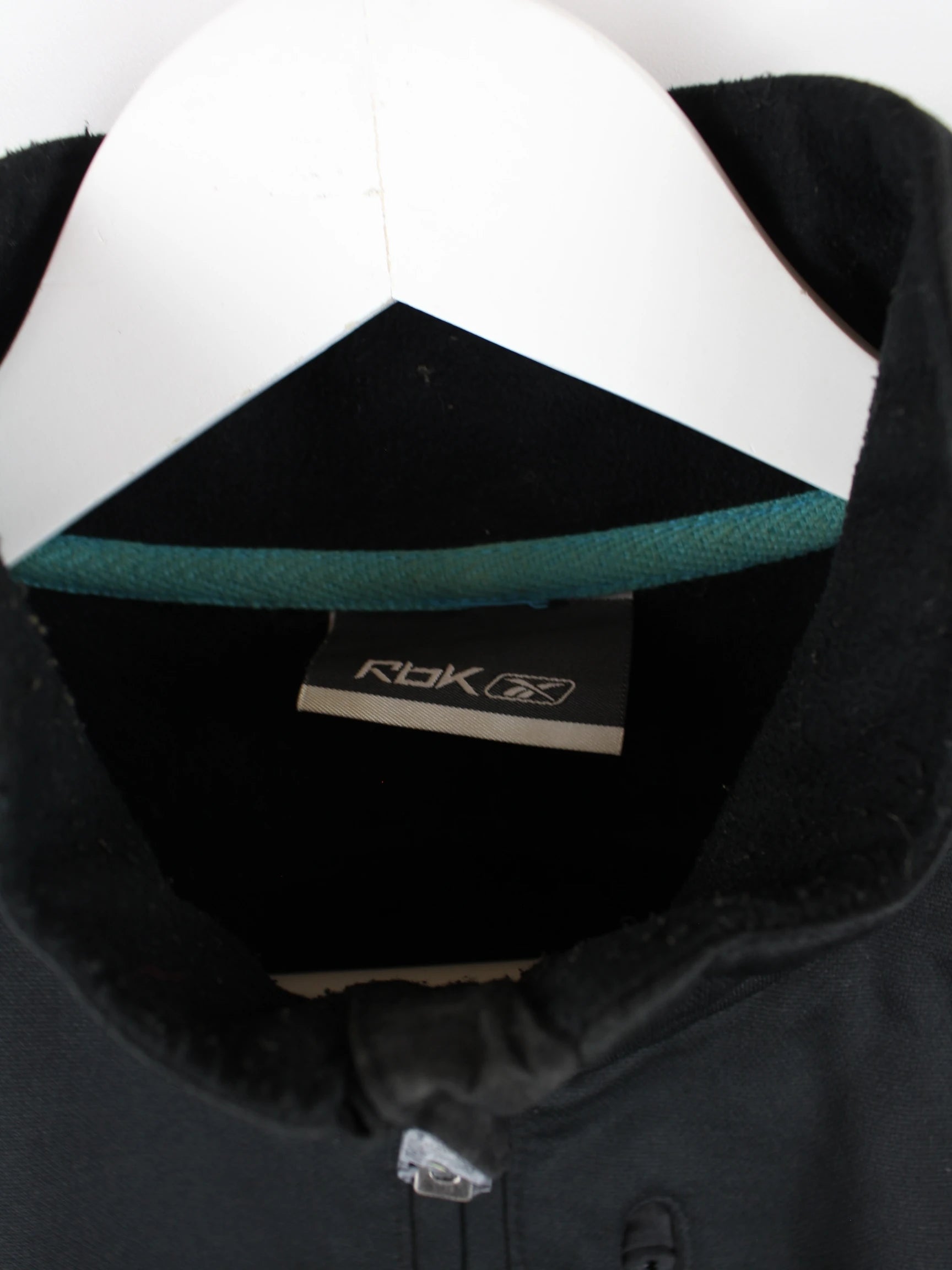 Schwarze Trainingsjacke der Brand Reebok in Größe M. Sie ist aus Synthetik und in gutem Zustand vorrätig.