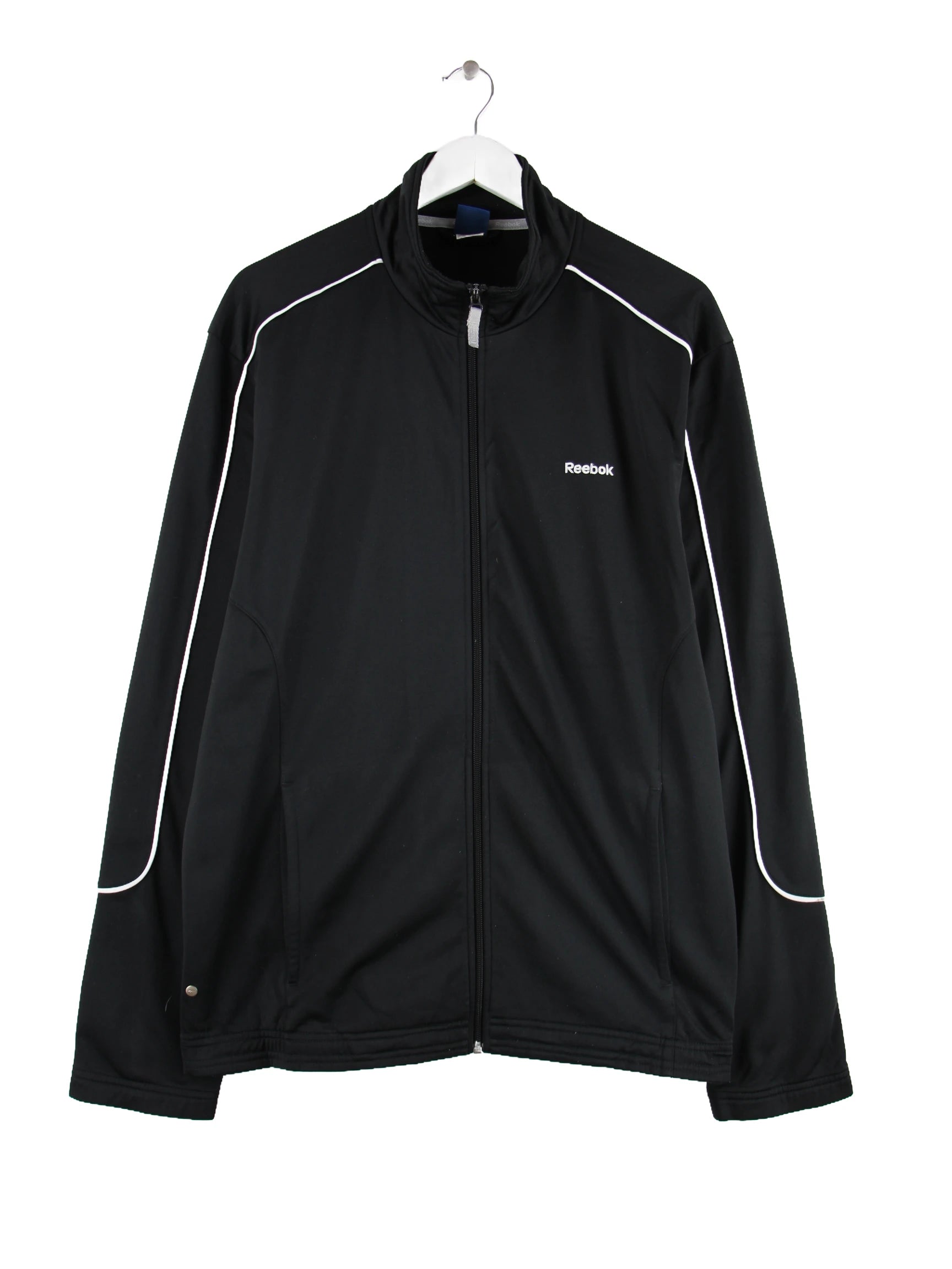 Trainingsjacke von Reebok in Größe L. Sie ist aus Synthetik produziert und in Schwarz in Stock.