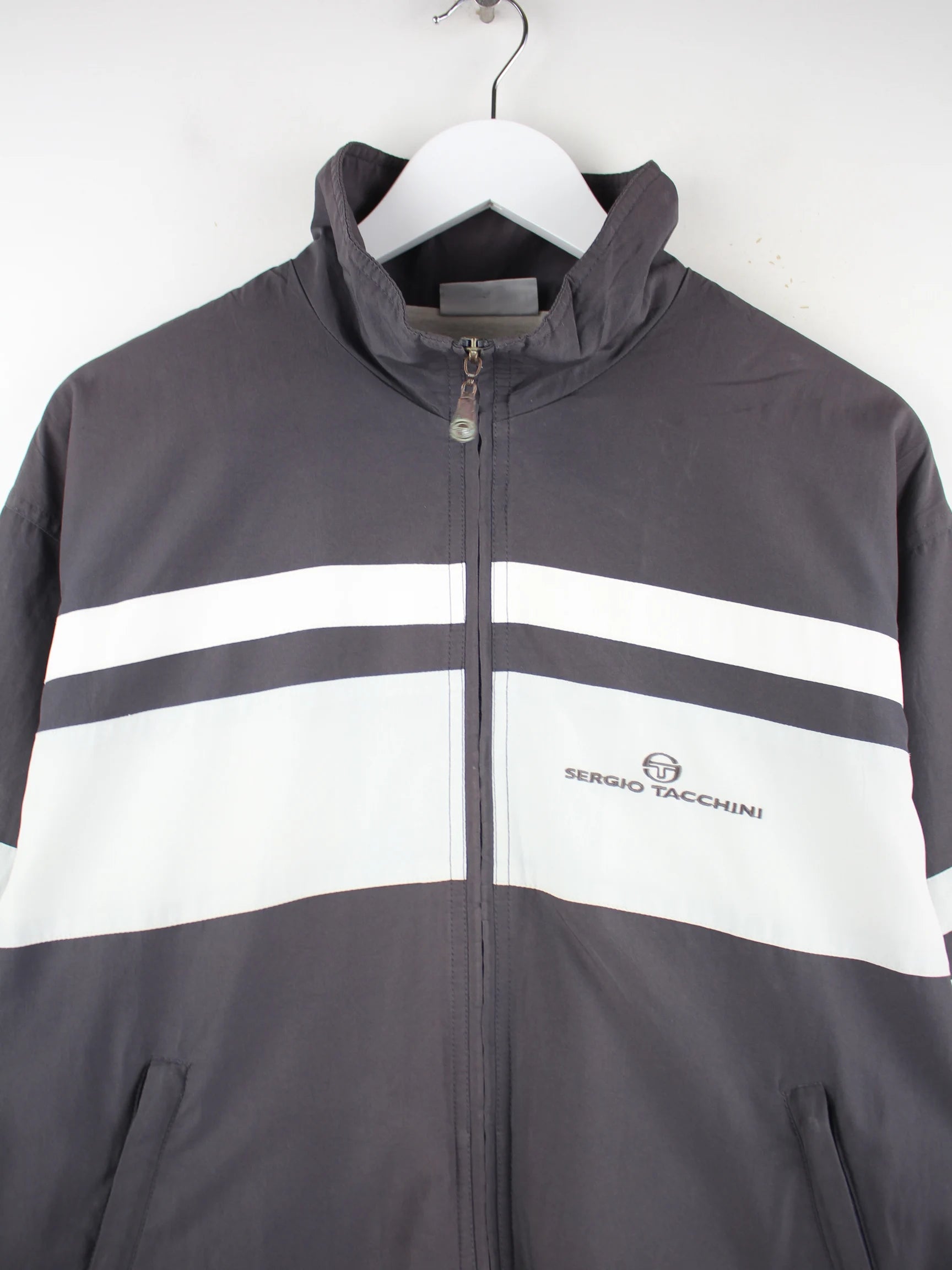 Trainingsjacke des Labels Sergio Tacchini in Größe M. Sie ist aus Synthetik angefertigt und in Grau im Bestand.