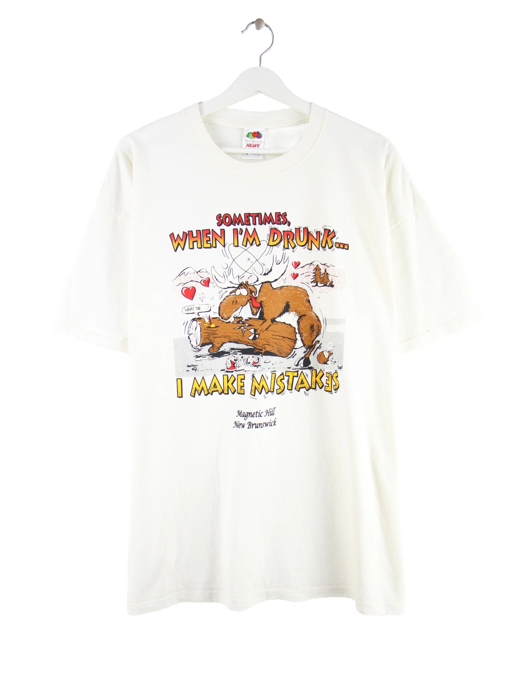 Fruit of the Loom 00s Elk Funny Print T-Shirt Beige XXL