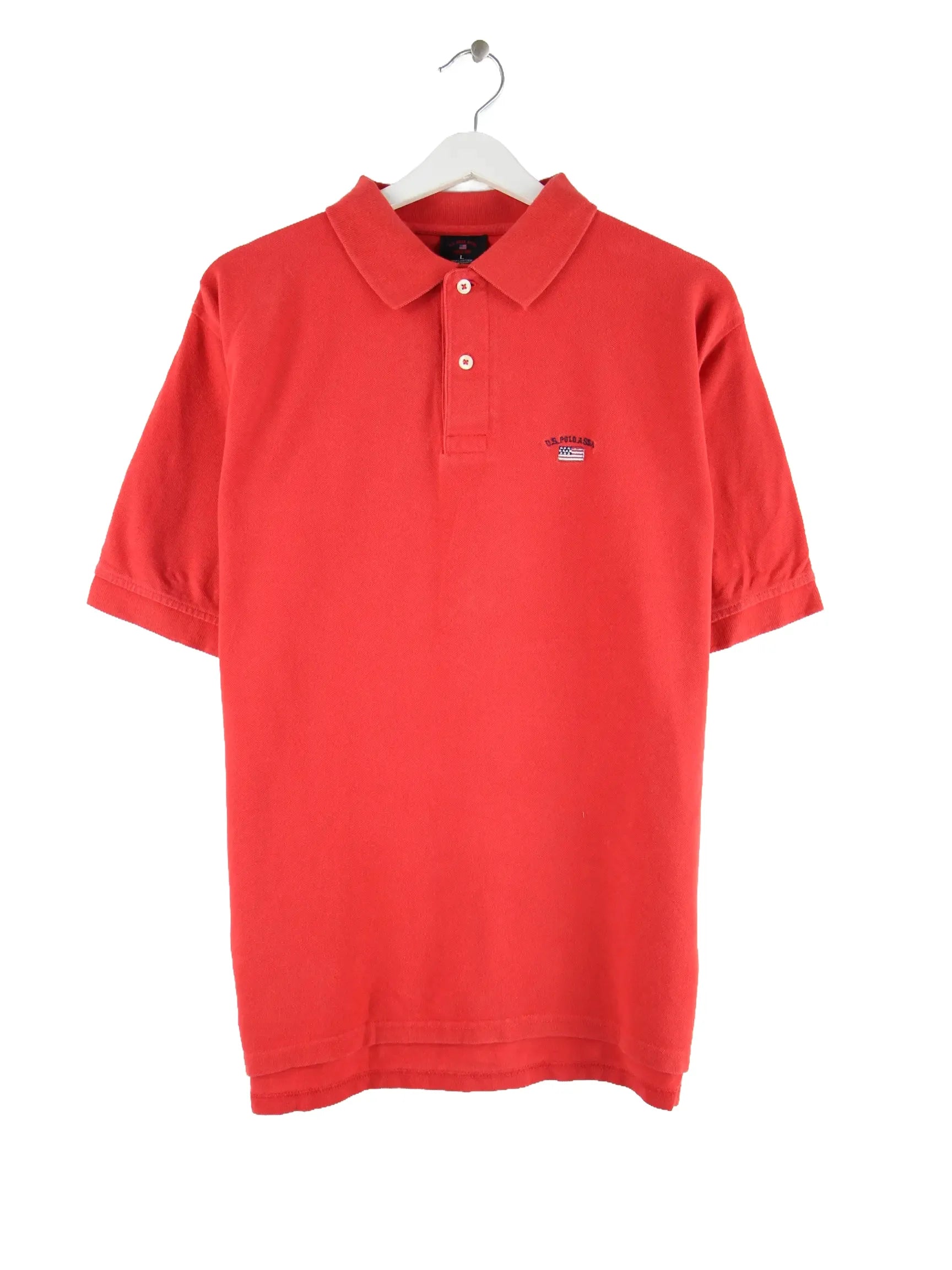 Rotes Poloshirt vom Label U.S. Polo ASSN. in Größe L. Es ist aus Baumwolle hergestellt und in sehr gutem Zustand im Bestand.