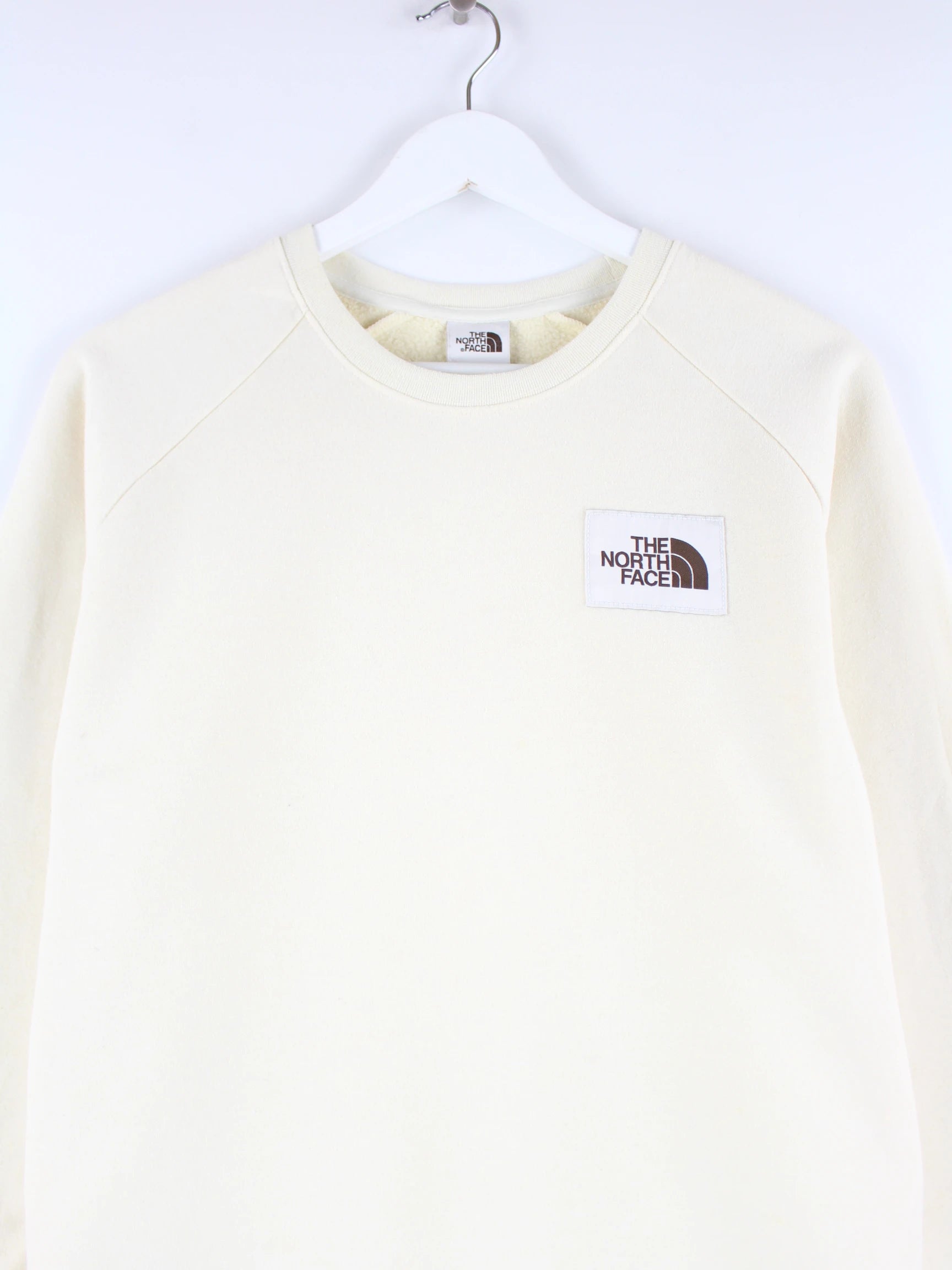 Beigefarbener Sweater des Labels The North Face in Größe L. Er ist aus einer Baumwollmischung produziert und in gutem Zustand bei uns zu bekommen.