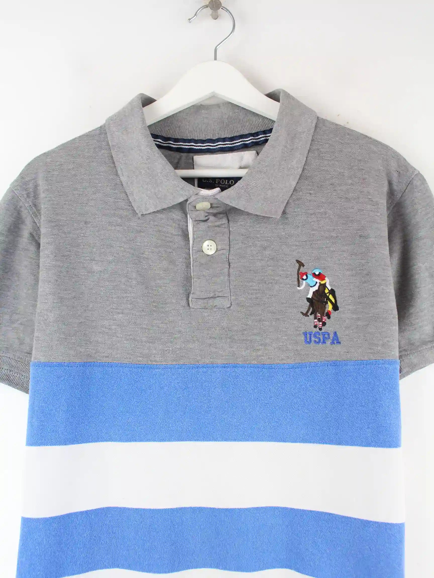 Graues Poloshirt des Labels U.S. Polo ASSN. in Größe XL. Es ist aus Baumwolle gefertigt. Den Zustand würden wir als 'In Ordnung' bezeichnen (vergl. Bilder).