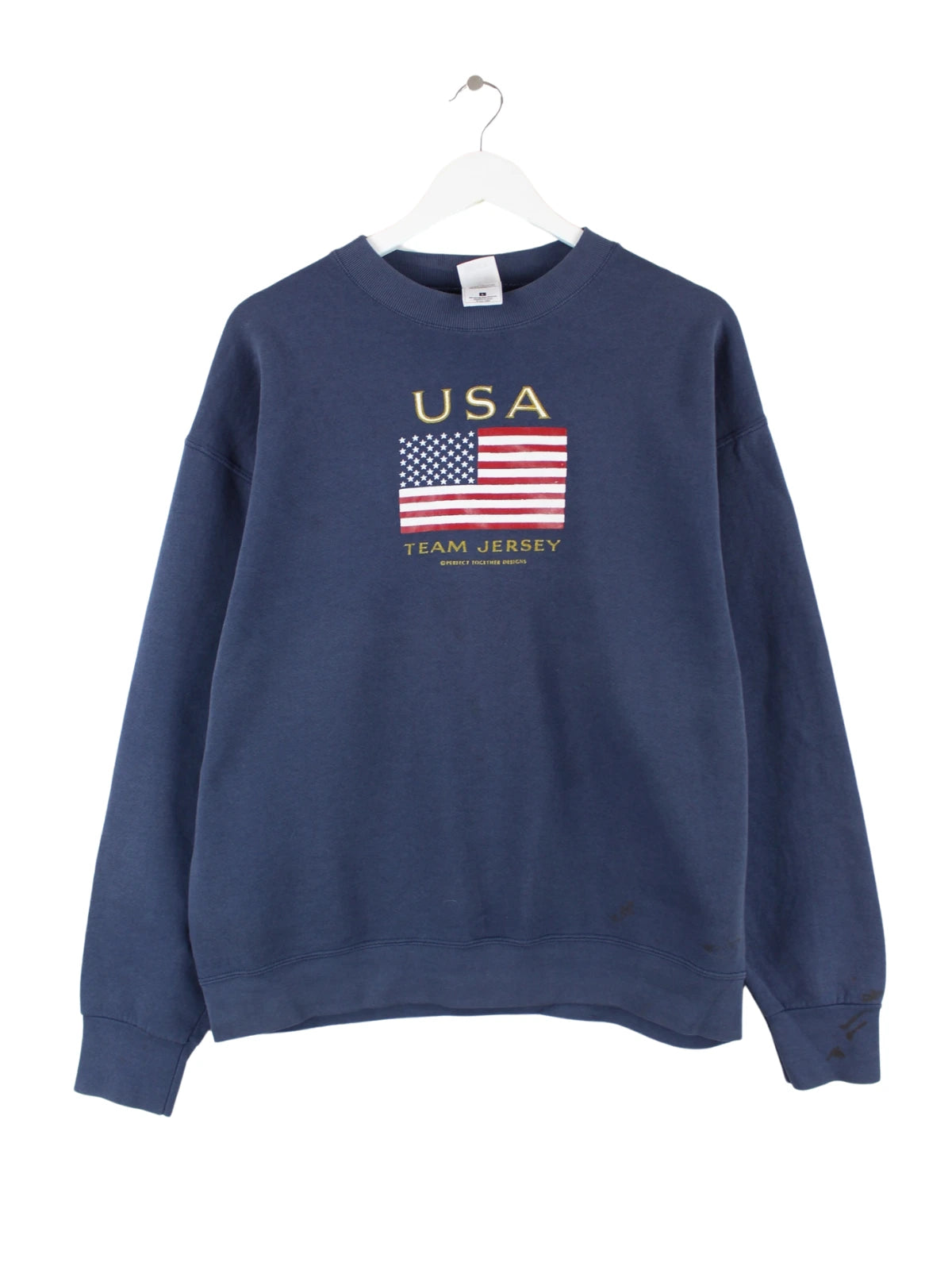 Fruit of the Loom USA Flag Print Sweater Blau L
