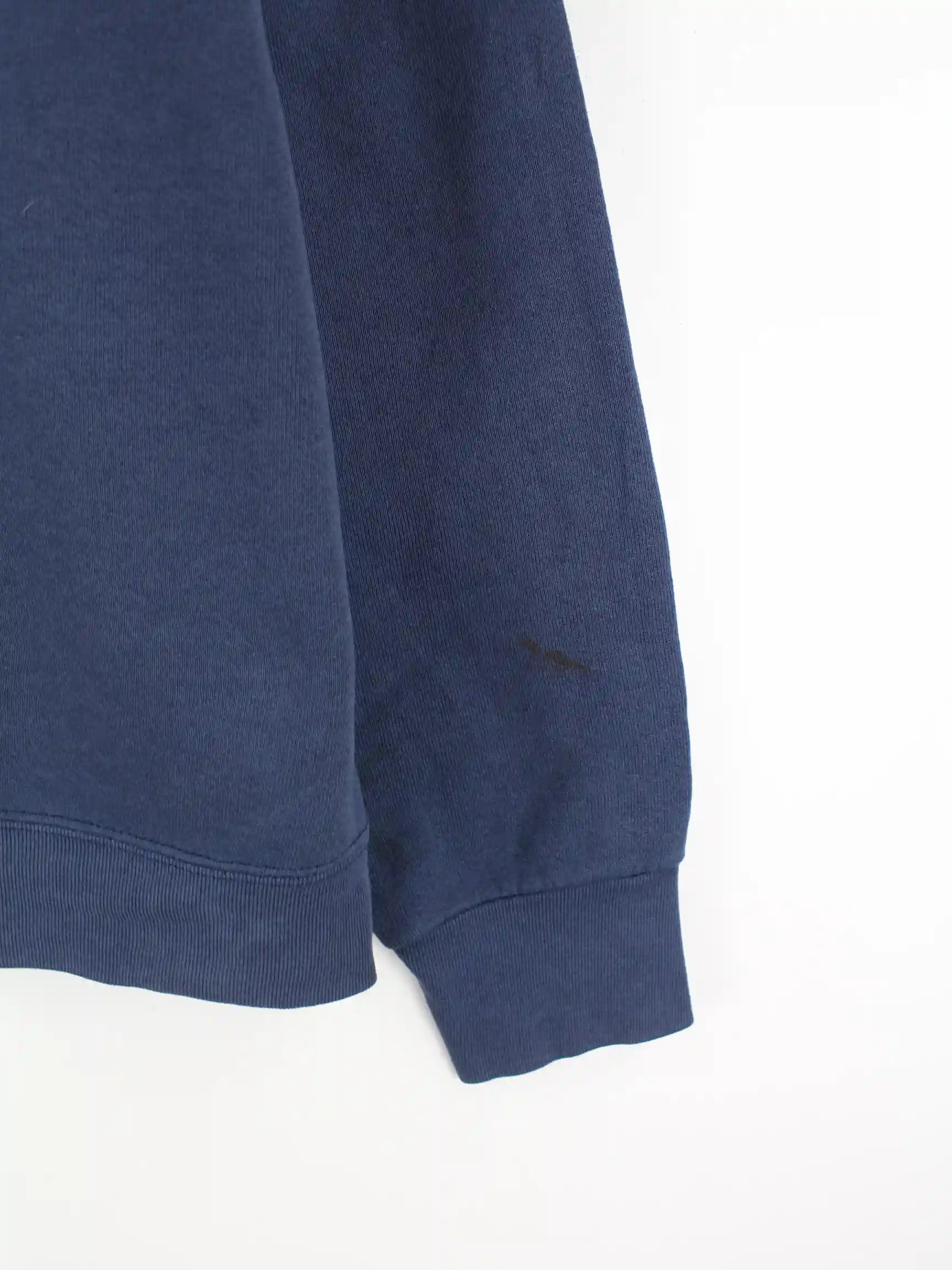 Sweater aus dem Hause Fruit of the Loom in Größe L. Er ist aus einer Baumwollmischung angefertigt und in Blau in Stock. Mit schickem Flag Print.