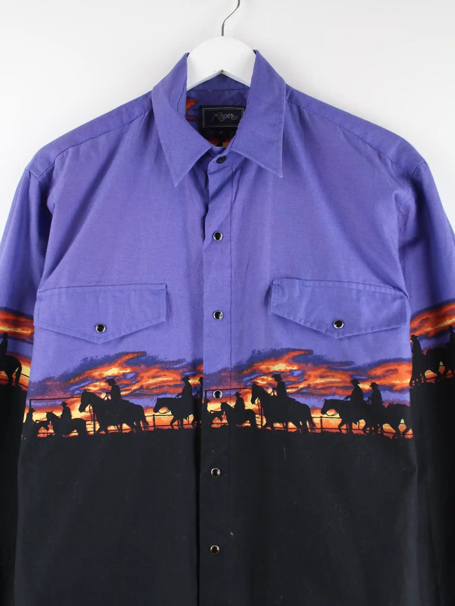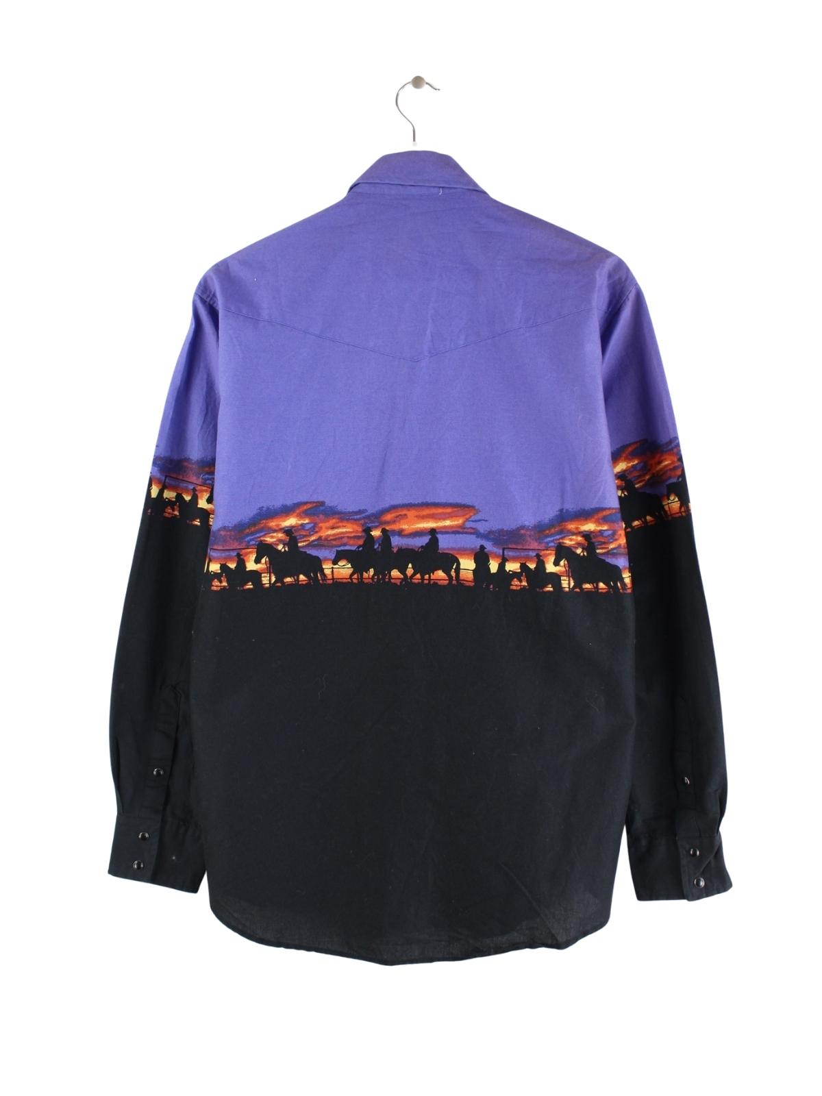 Vintage 00s Wolf Embroidered Jeans Kurzarm Hemd Blau XL