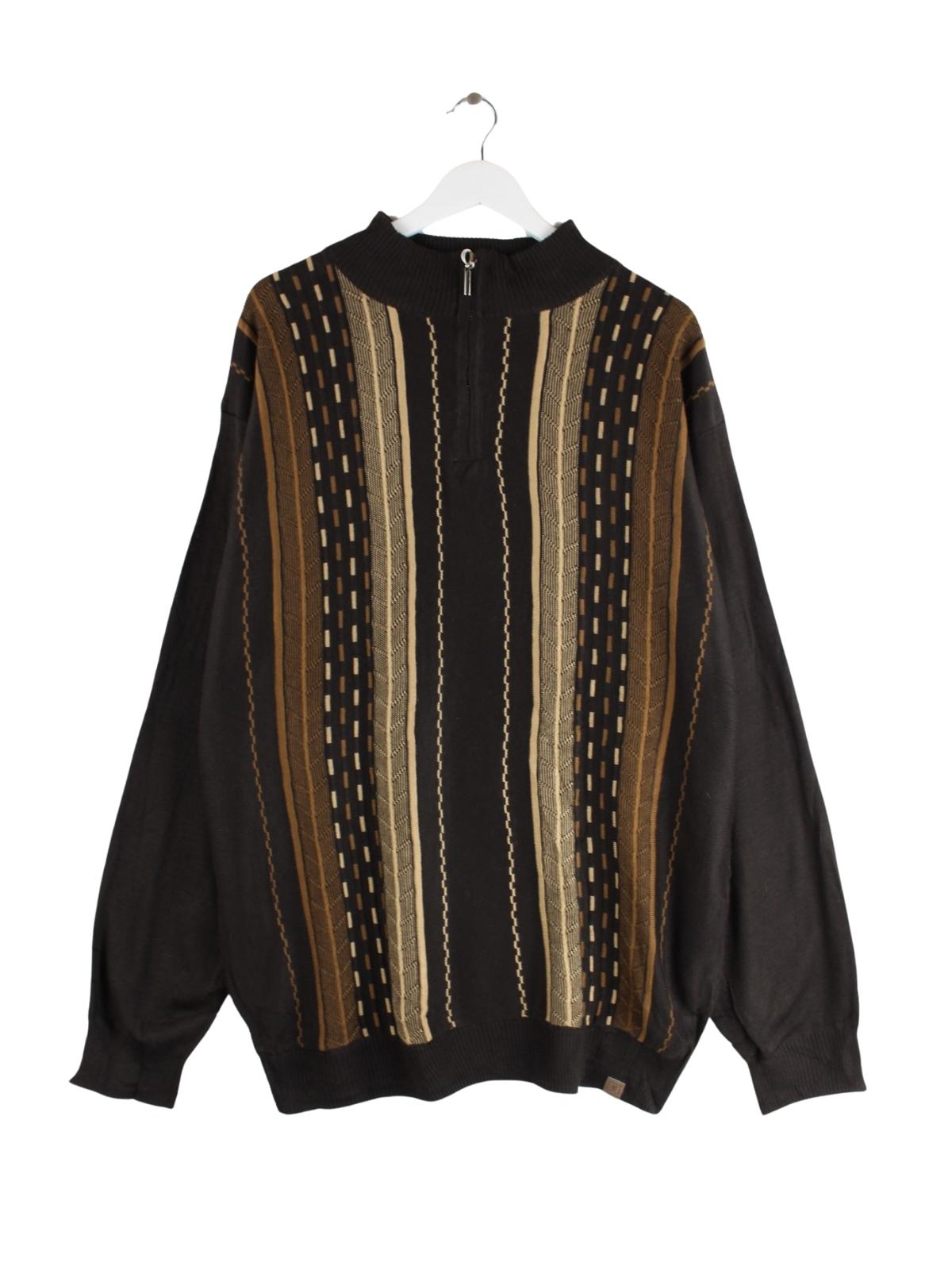 Vintage 3D Pattern Half Zip Pullover Braun 3XL