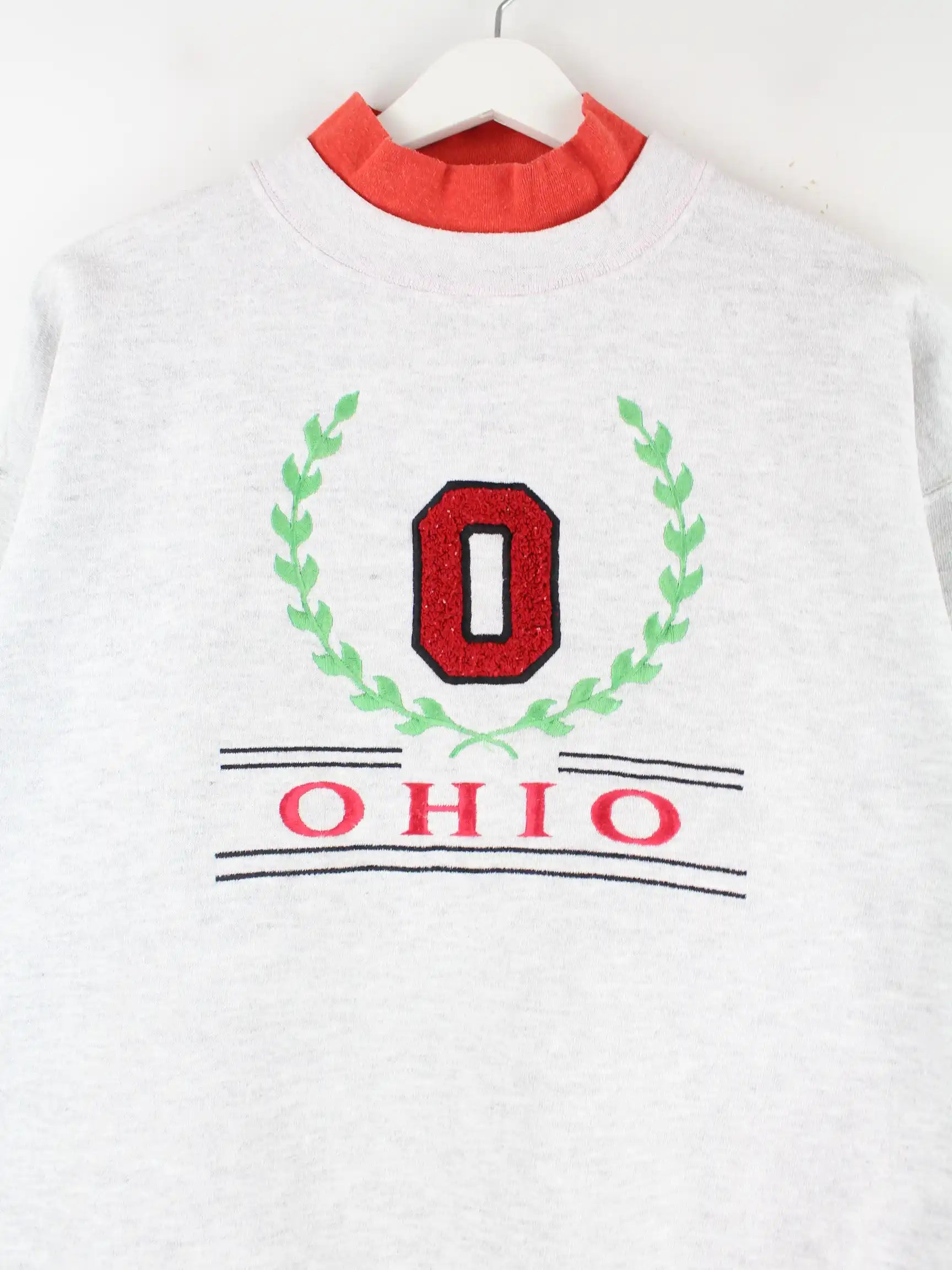 Vintage 80s Ohio Embroidered Sweater Grau L