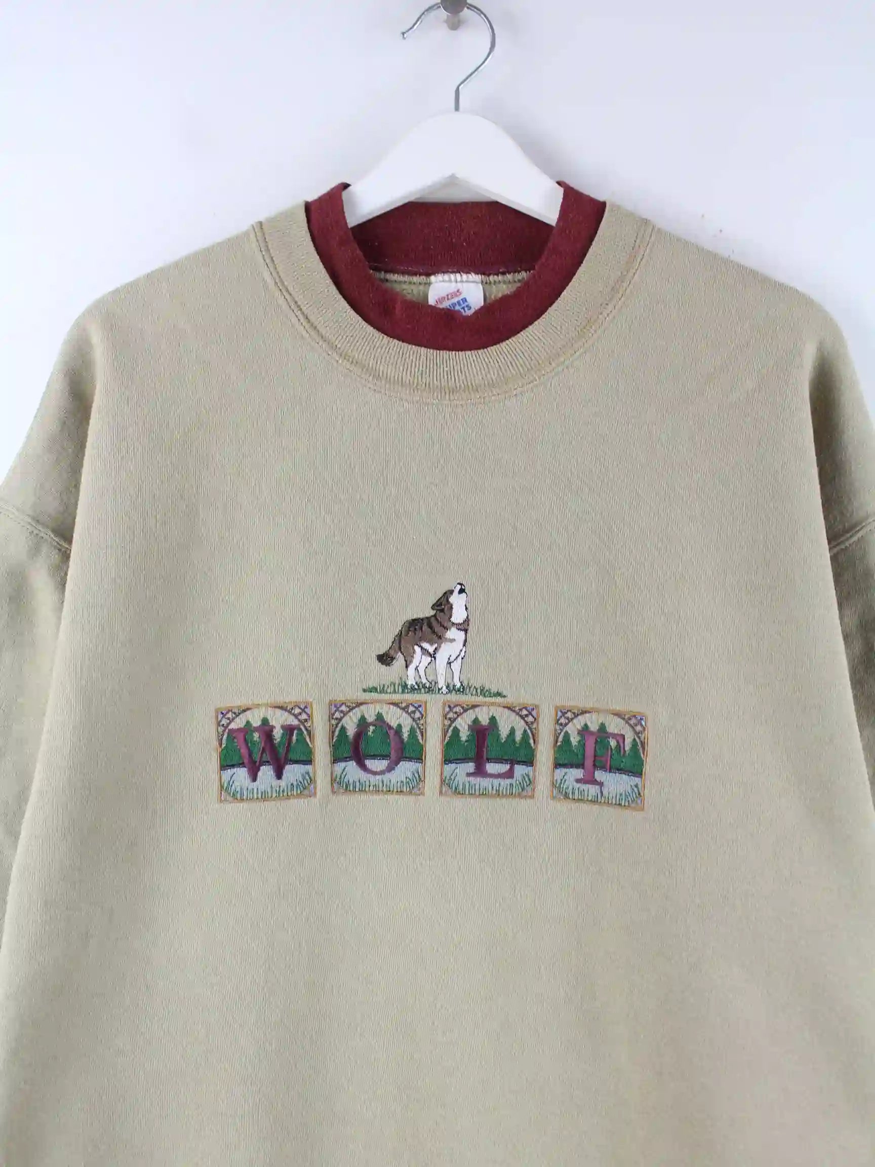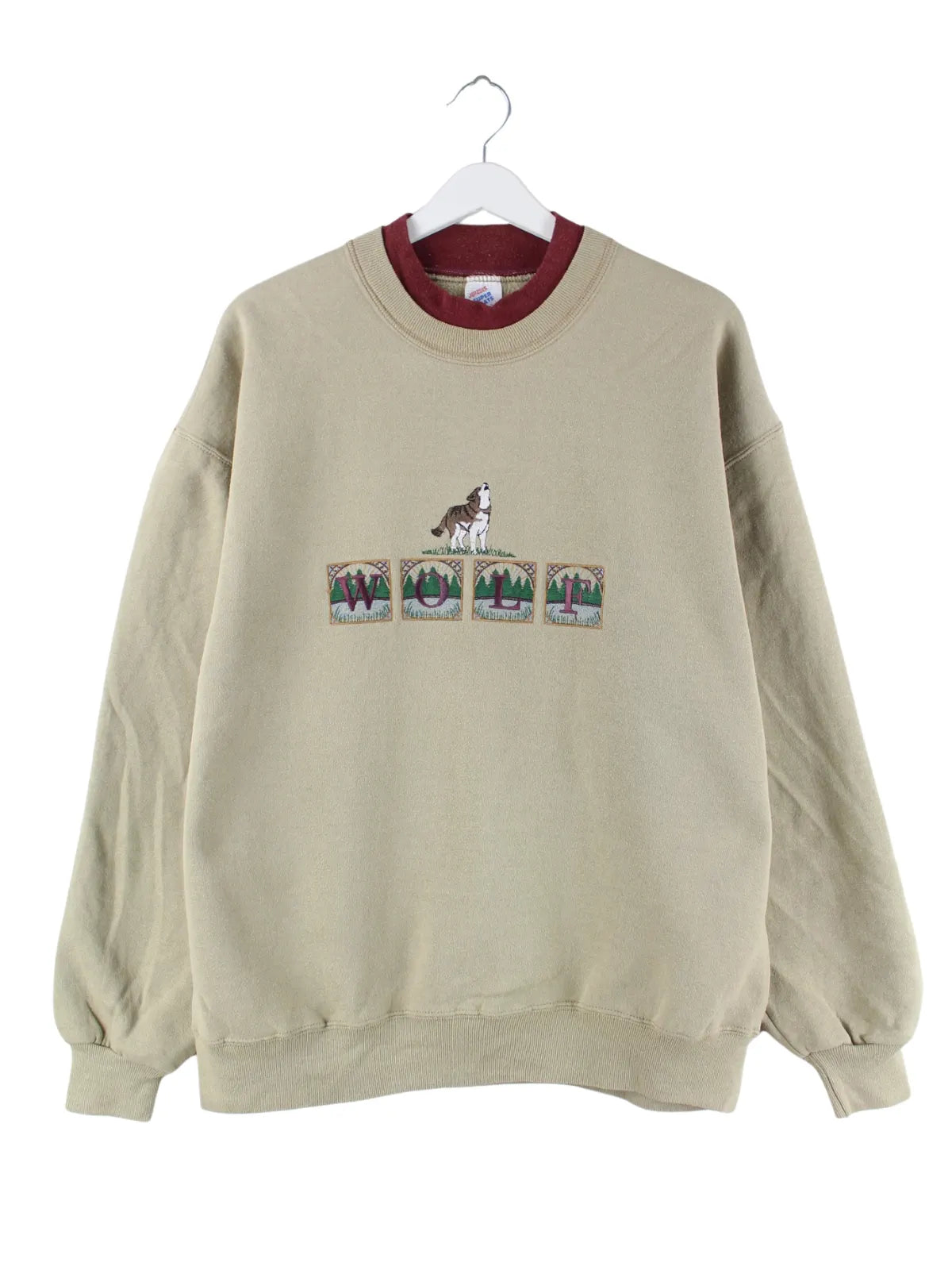 Jerzees 90s Vintage Wolf Embroidered Sweater Braun L