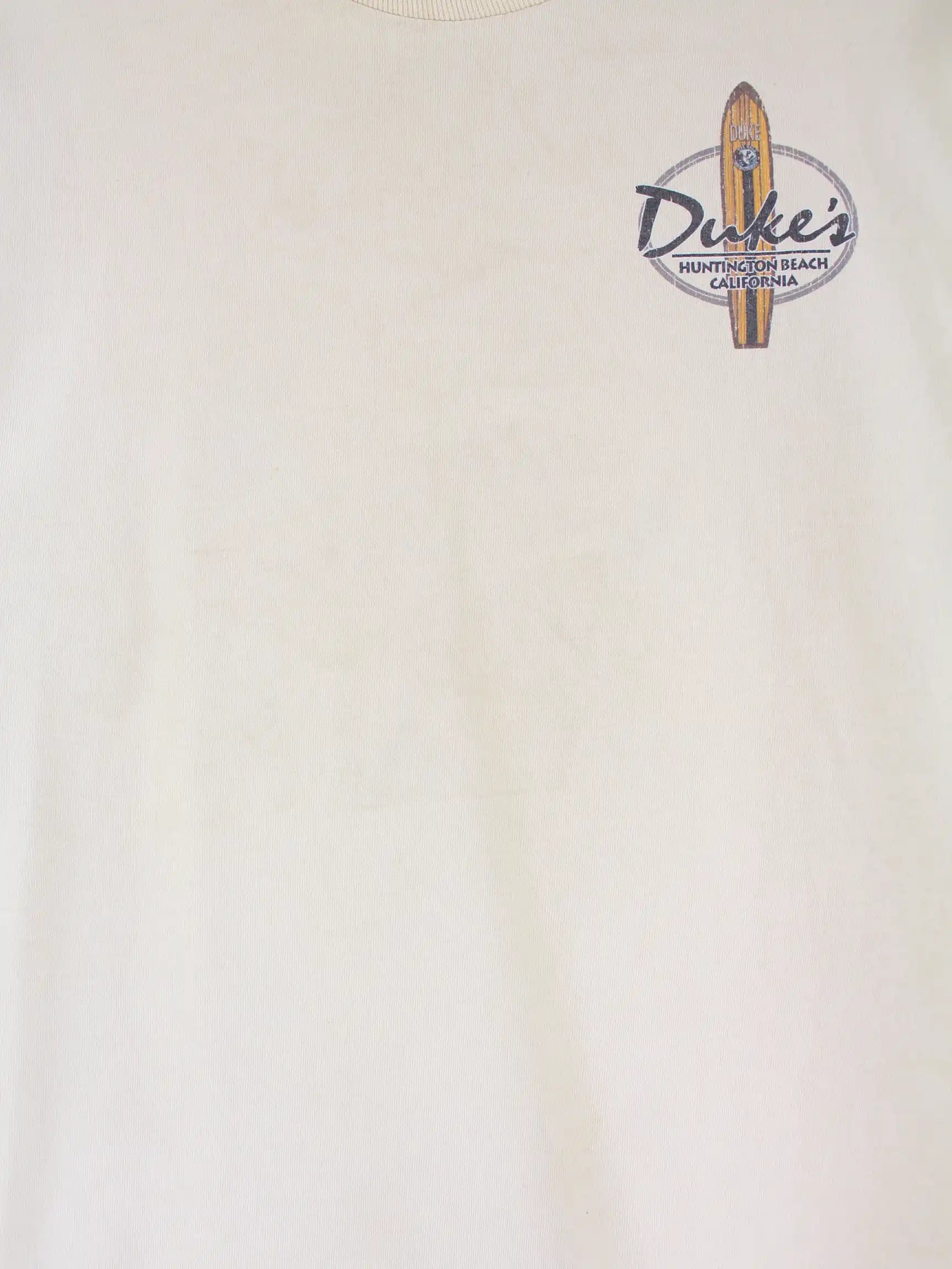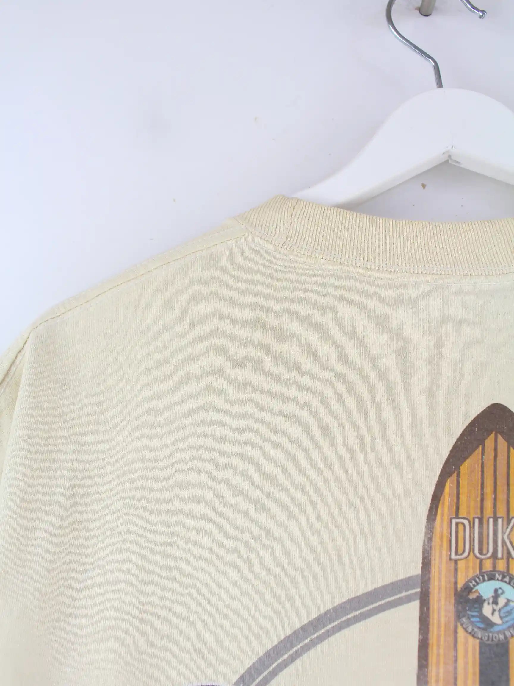 Vintage 00s California Surfing Duke Print T-Shirt Gelb M