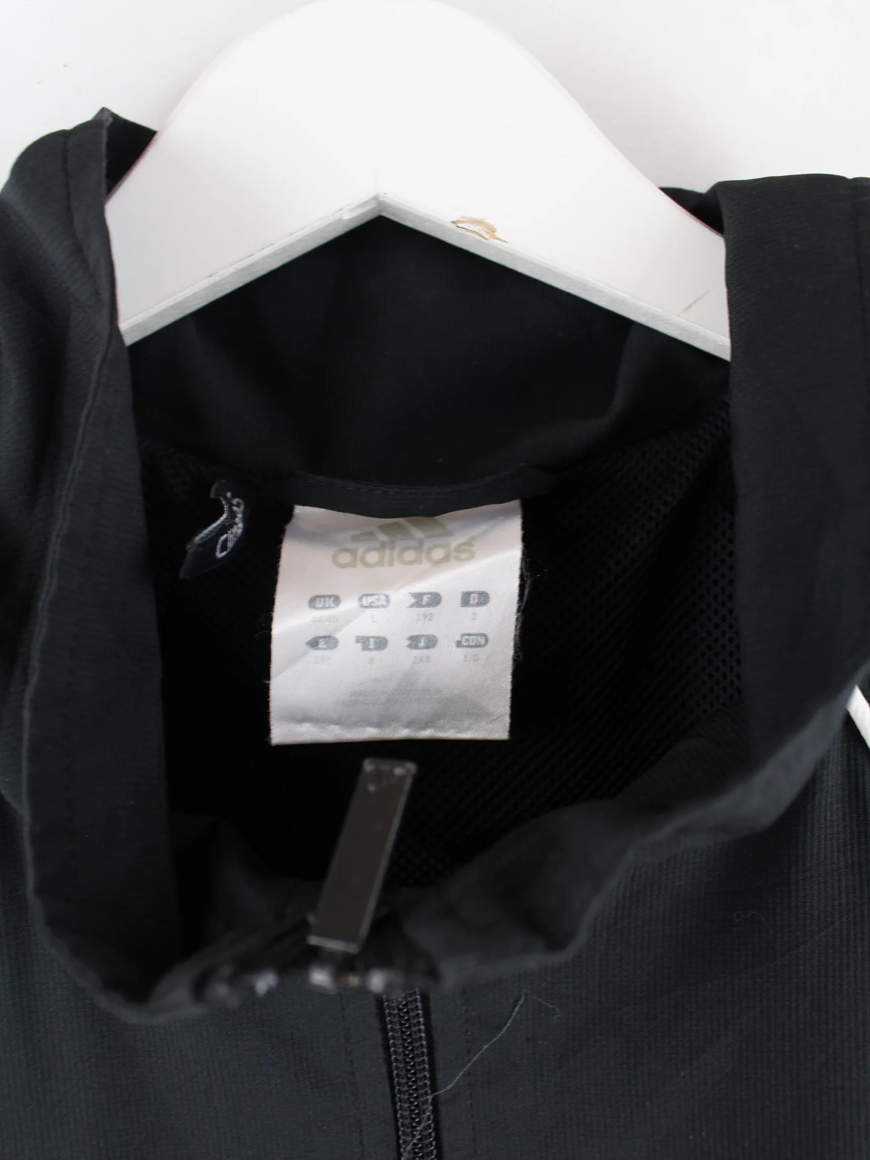 Schwarze Trainingsjacke mit Stick vom Brand Adidas in Größe XL. Sie ist aus Synthetik hergestellt und in gutem Zustand zu haben.