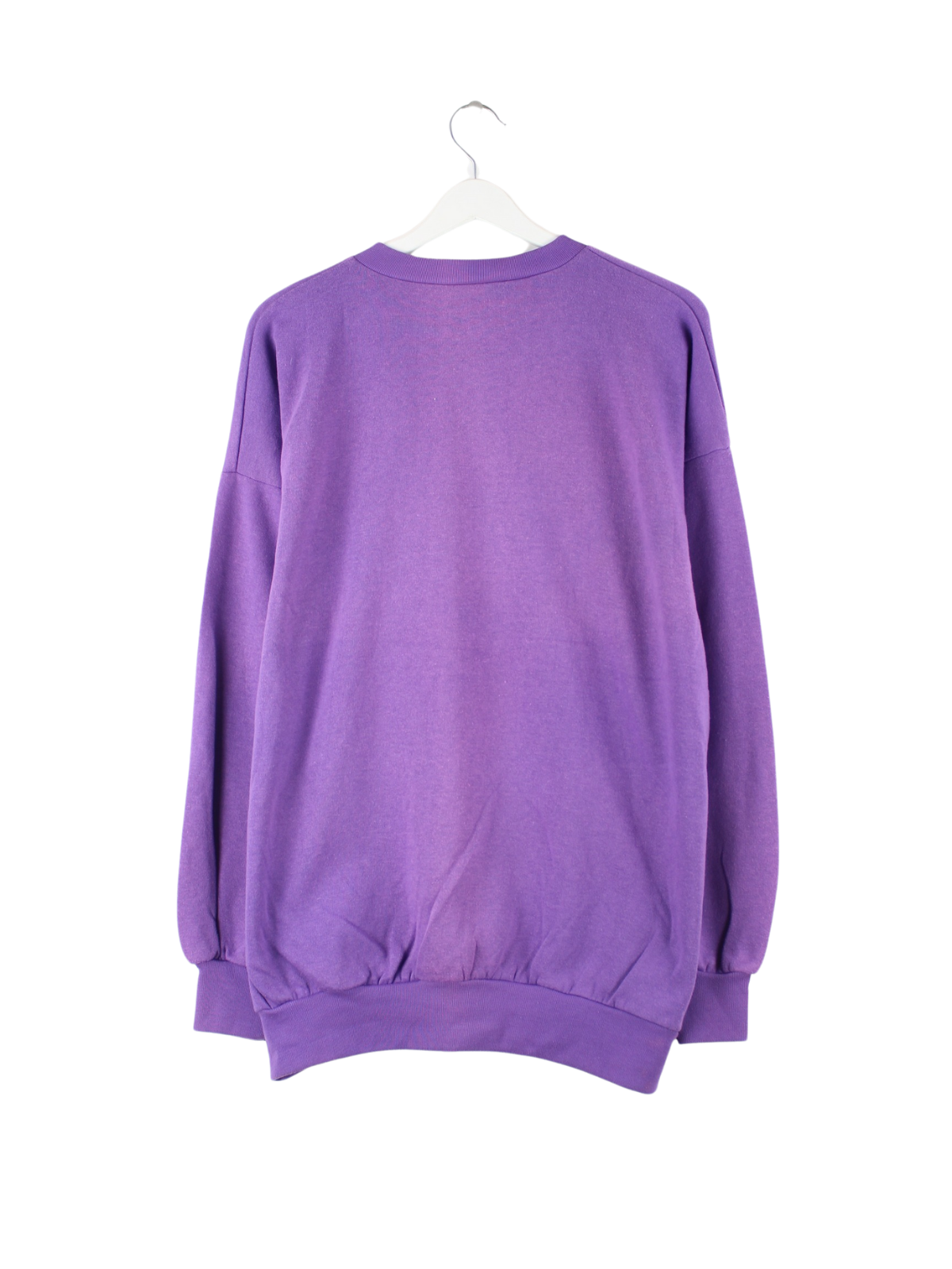 Lilafarbener Sweater vom Label Adidas aus den 80'ern in Größe XL. Er ist aus einer Baumwollmischung gefertigt und in gutem Zustand zu haben.
