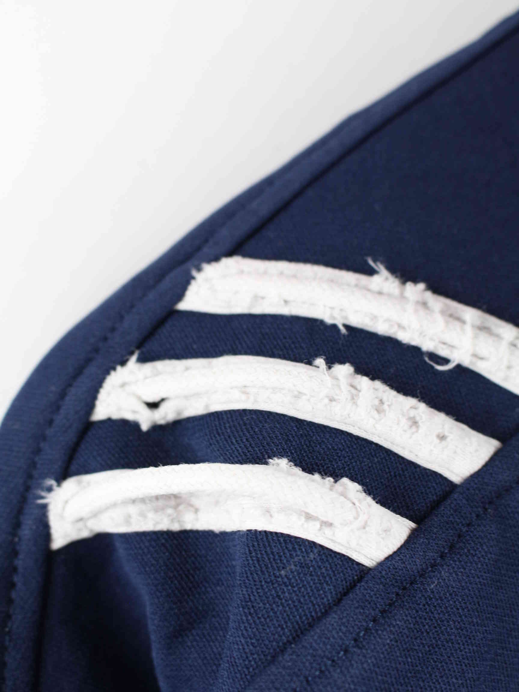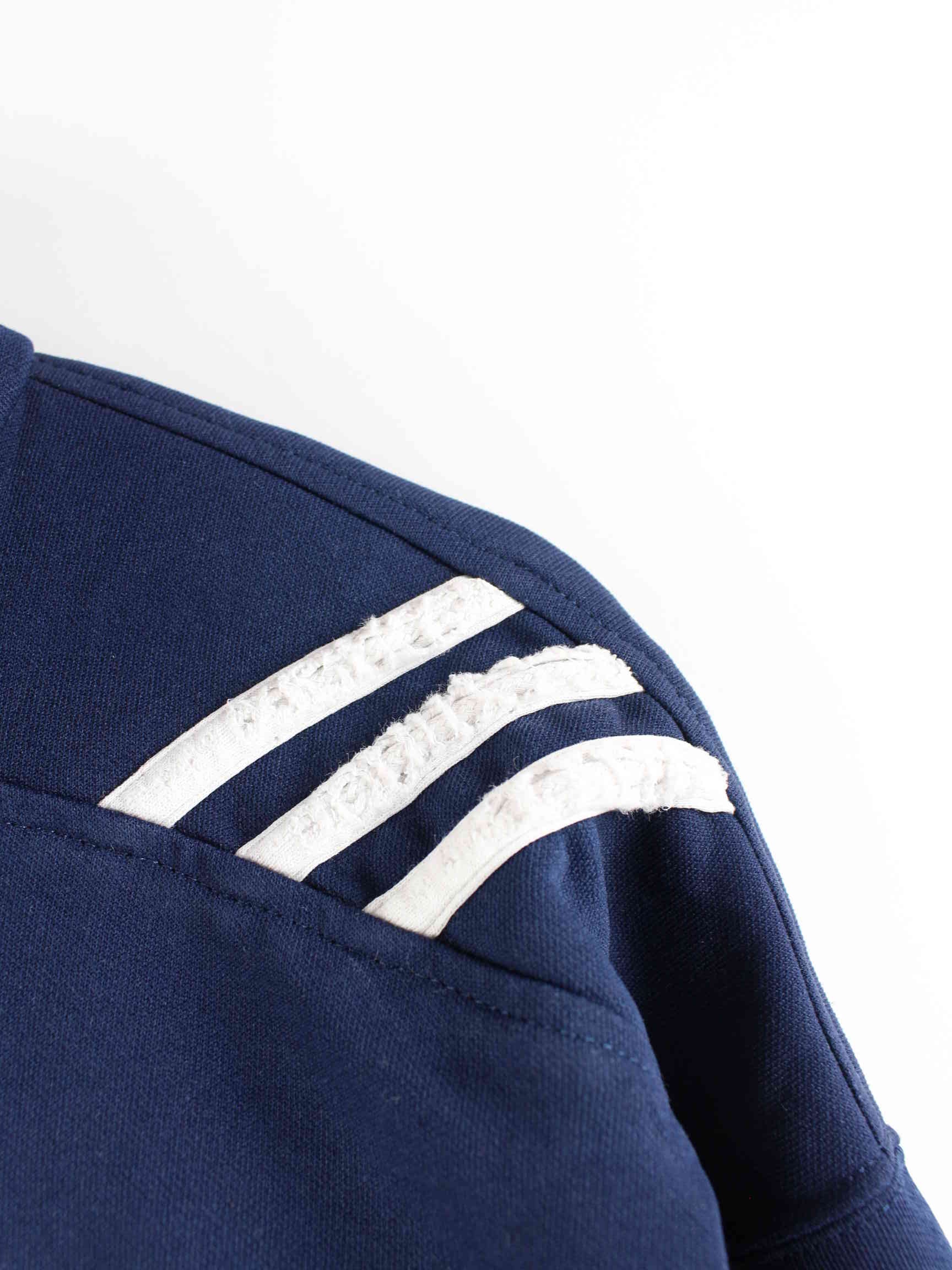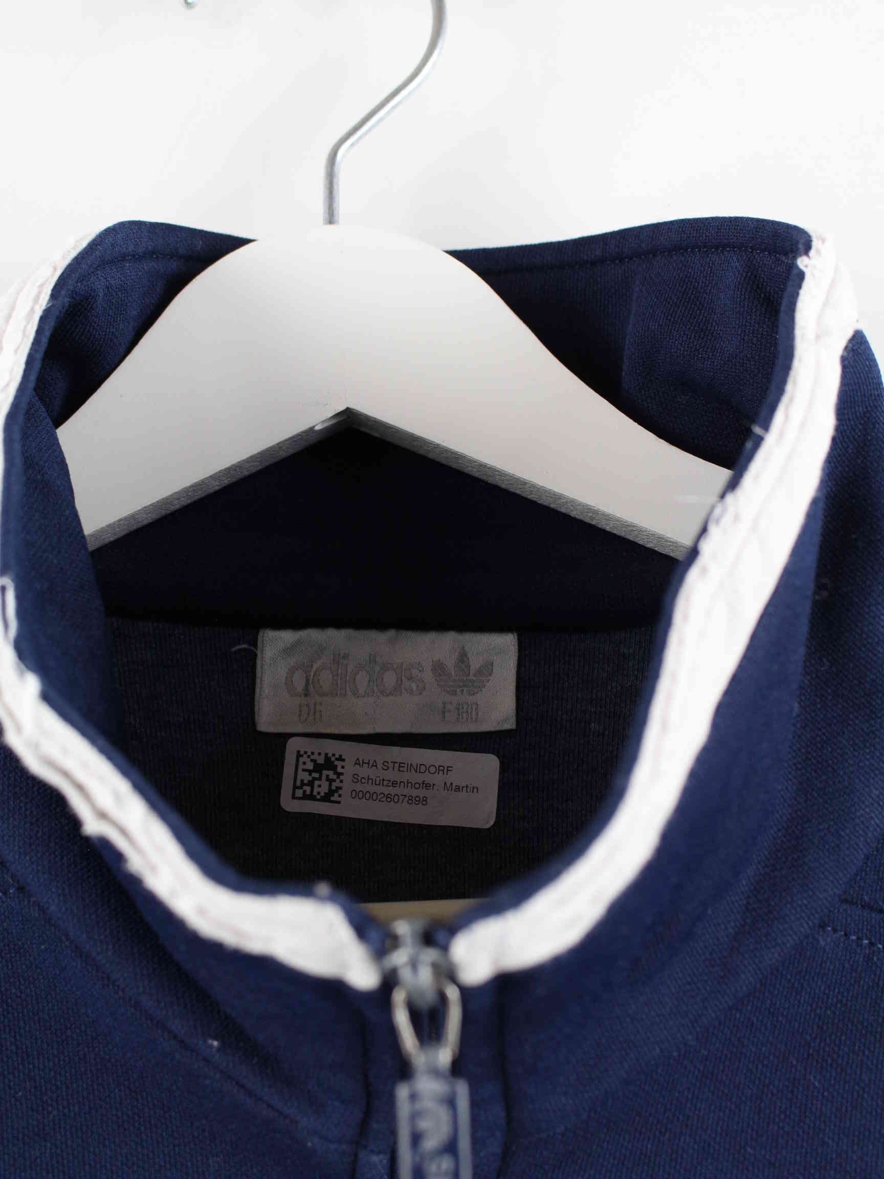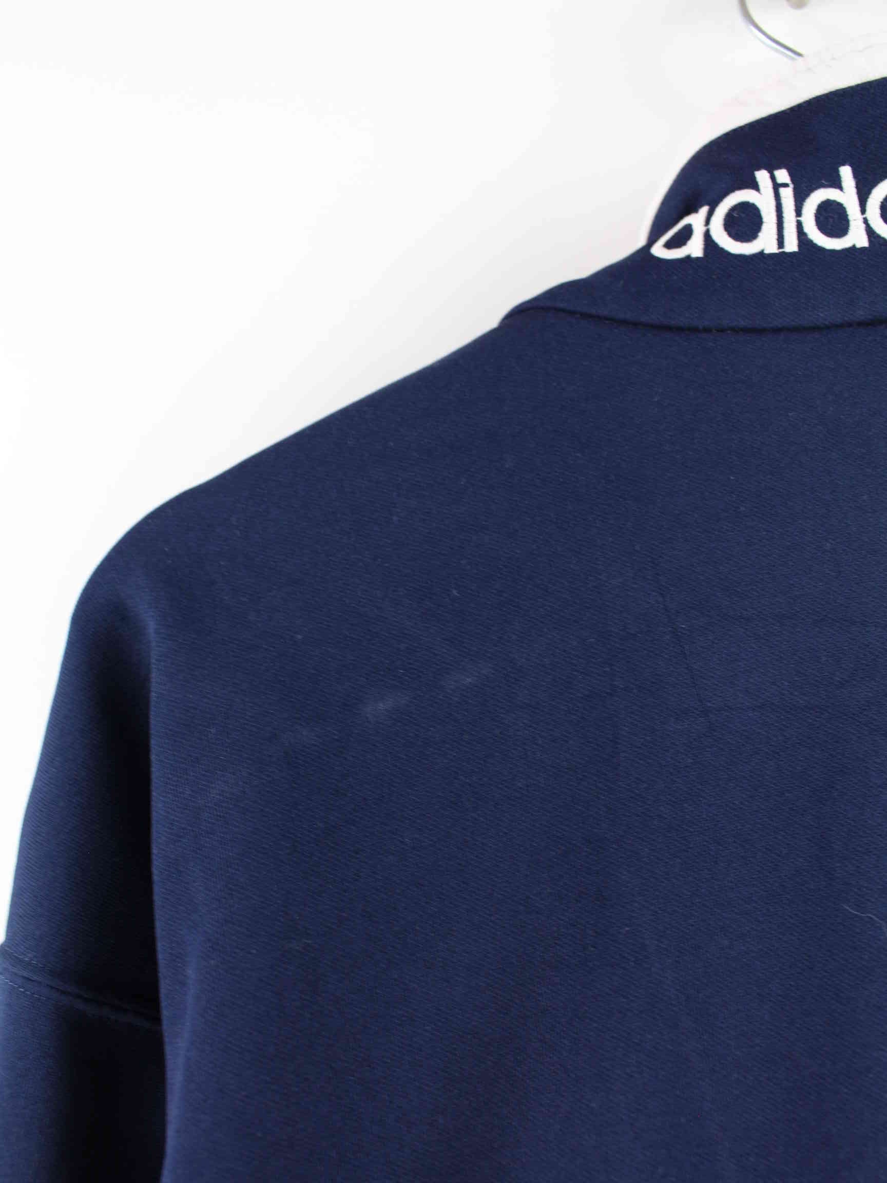 Blaue Trainingsjacke der Brand Adidas aus den 80'ern in Größe L. Sie ist aus Synthetik hergestellt und in gutem Zustand zu haben.
