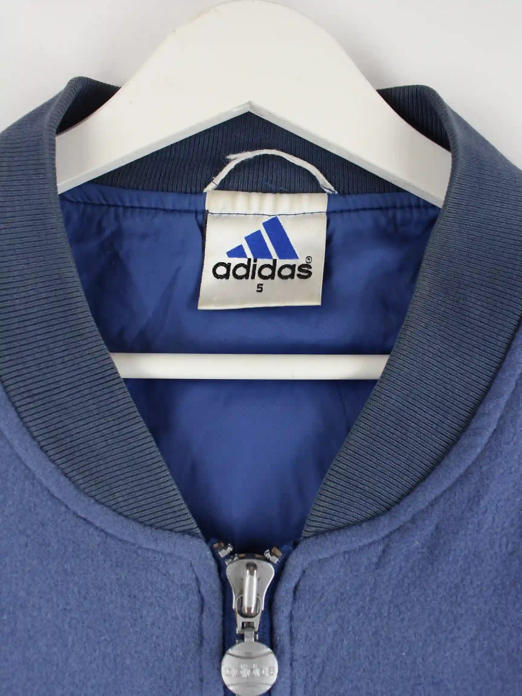 Leichte Jacke der Marke Adidas in Größe M aus den 90'ern. Sie ist aus einer Baumwollmischung produziert und in Blau im Angebot.