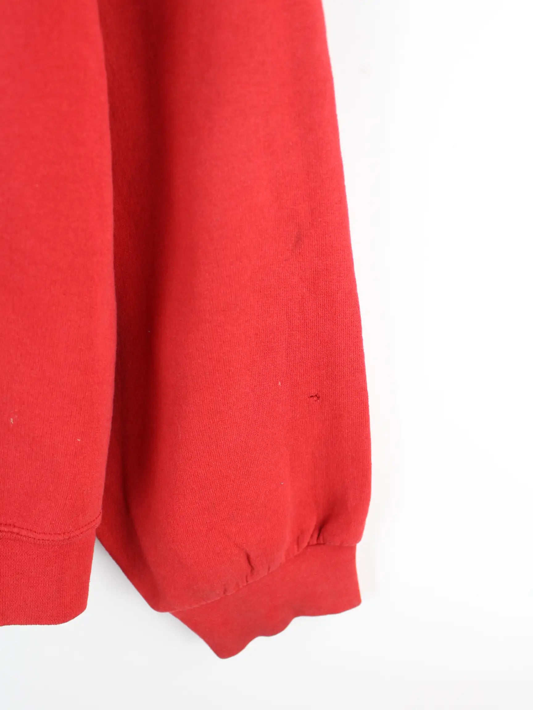Sweater vom Brand Adidas mit Stick in Größe XXL aus den 90'ern. Er ist aus einer Baumwollmischung und in Rot bei uns vorrätig.