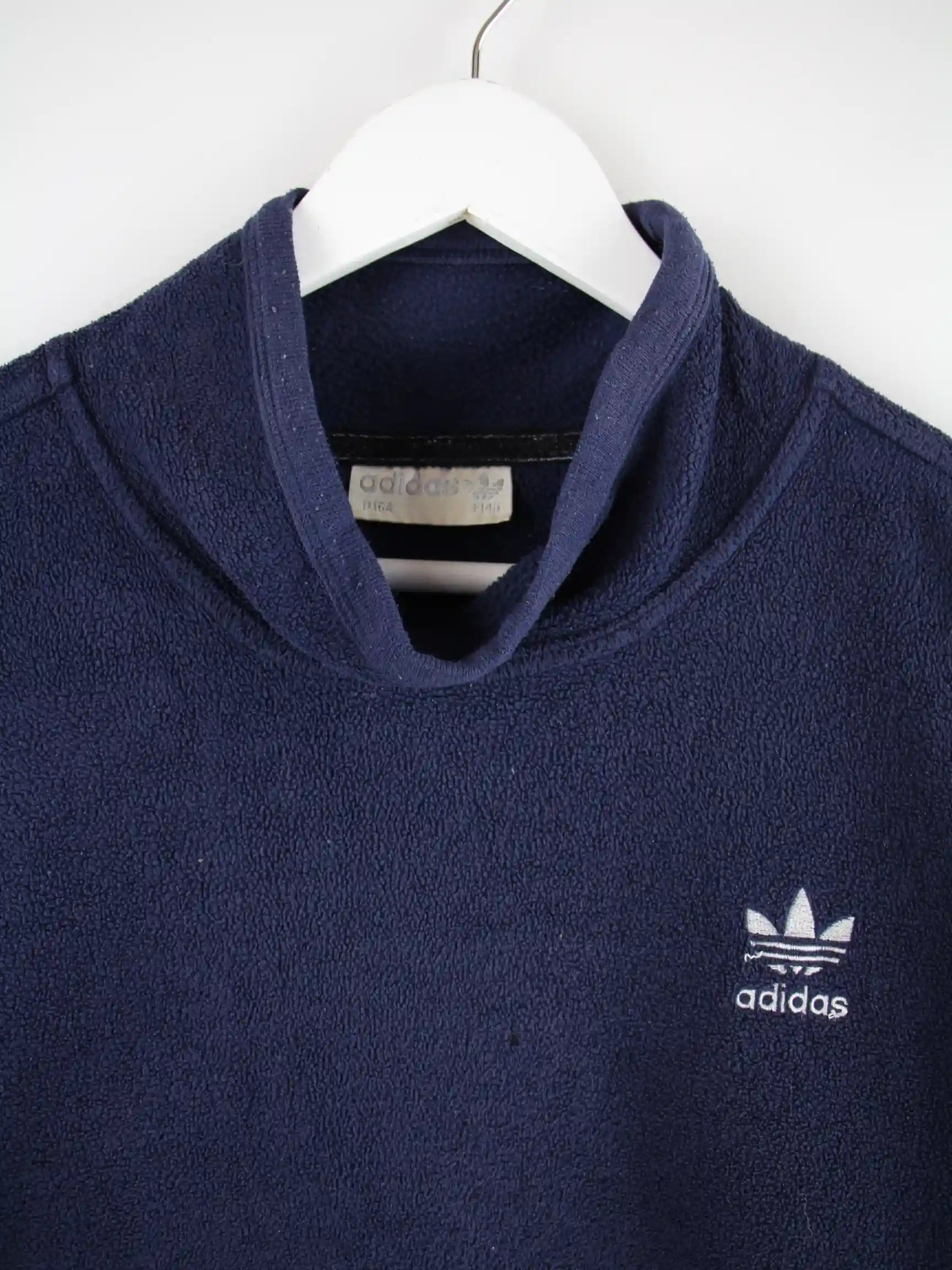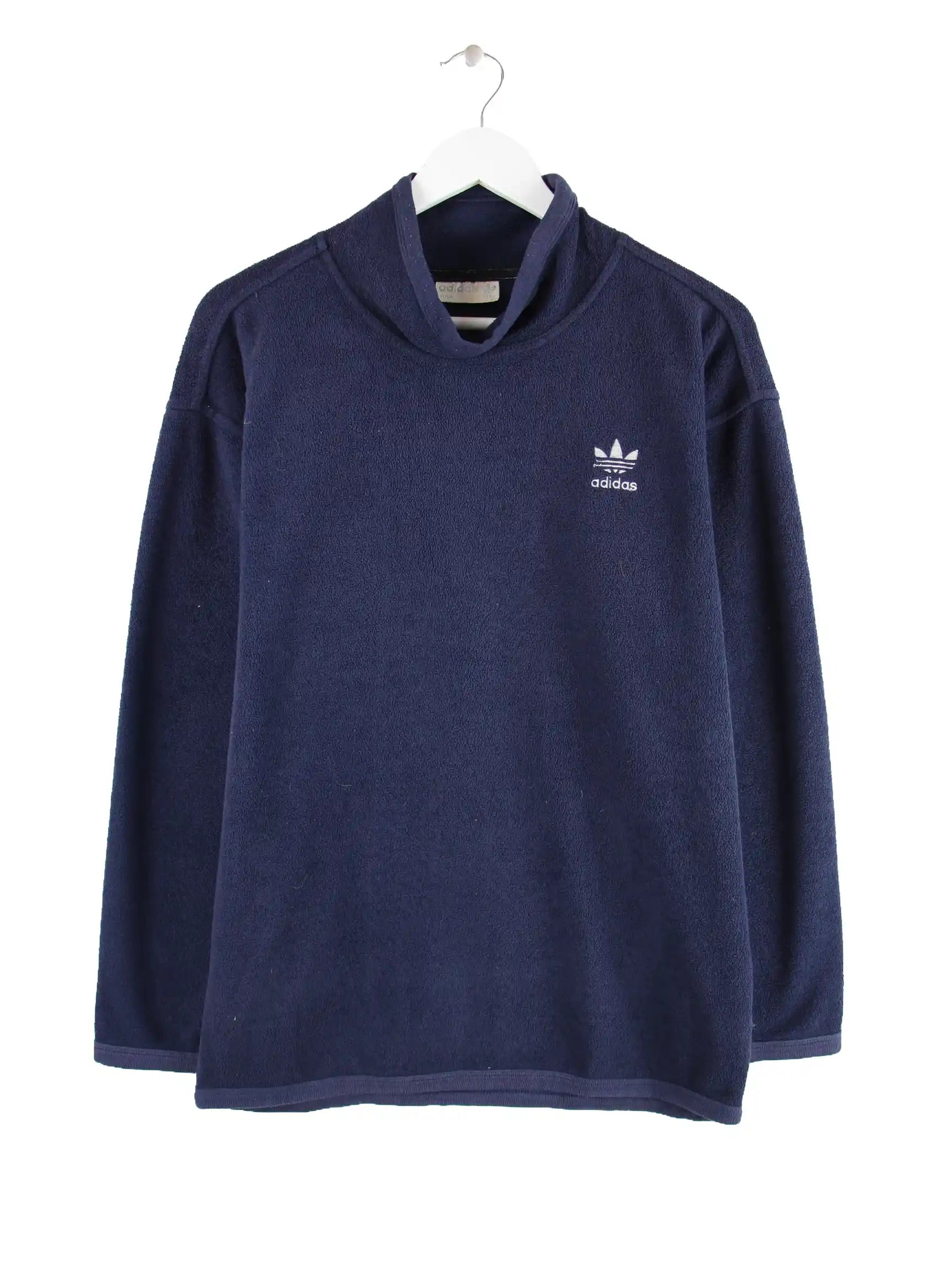 Blauer Sweater der Marke Adidas aus den 90'ern in Größe S. Er ist aus weichem Fleece produziert und in gutem Zustand im Bestand.