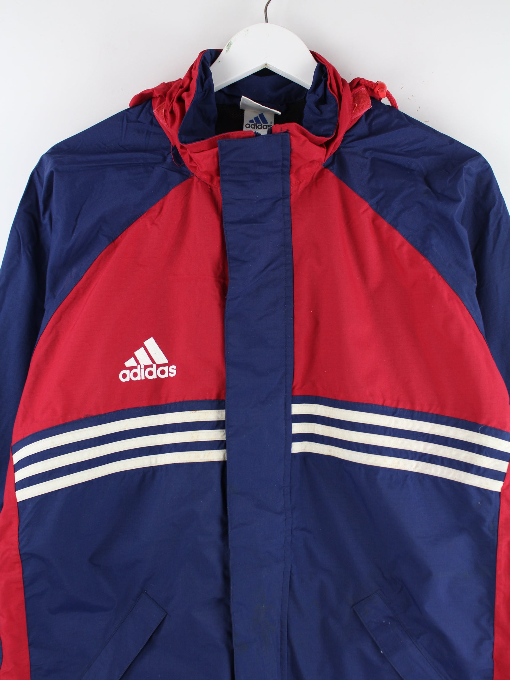 Blaue Leichte Jacke der Brand Adidas aus den 90'ern in Größe L. Sie ist aus Synthetik . Den Zustand würden wir als 'In Ordnung' bezeichnen (vergl. Bilder).