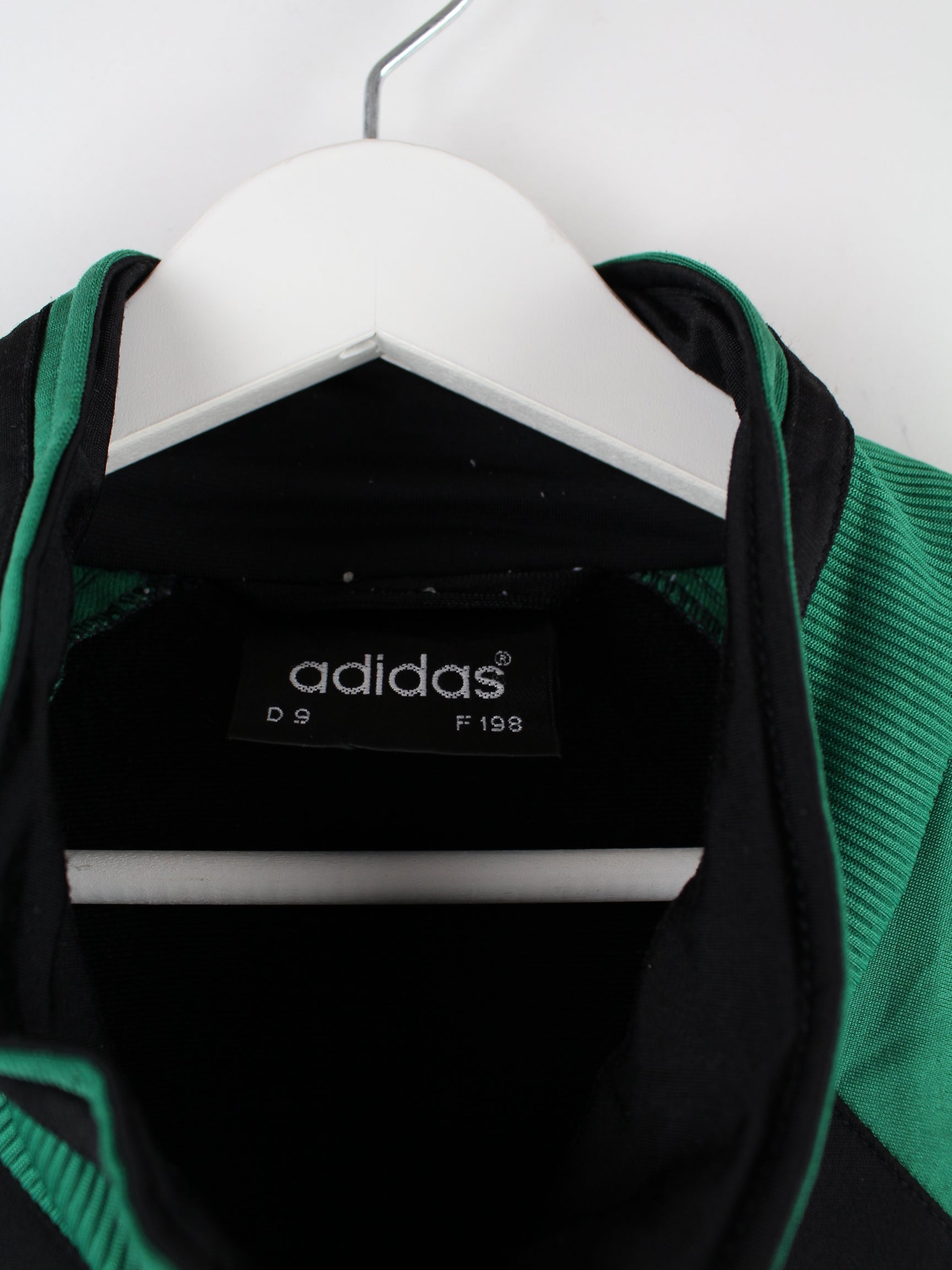 Schwarze Trainingsjacke der Brand Adidas aus den 90'ern in Größe XXL. Sie ist aus Synthetik . Den Zustand würden wir als 'In Ordnung' bezeichnen (vergl. Bilder).Mit schönem Vintage Print.