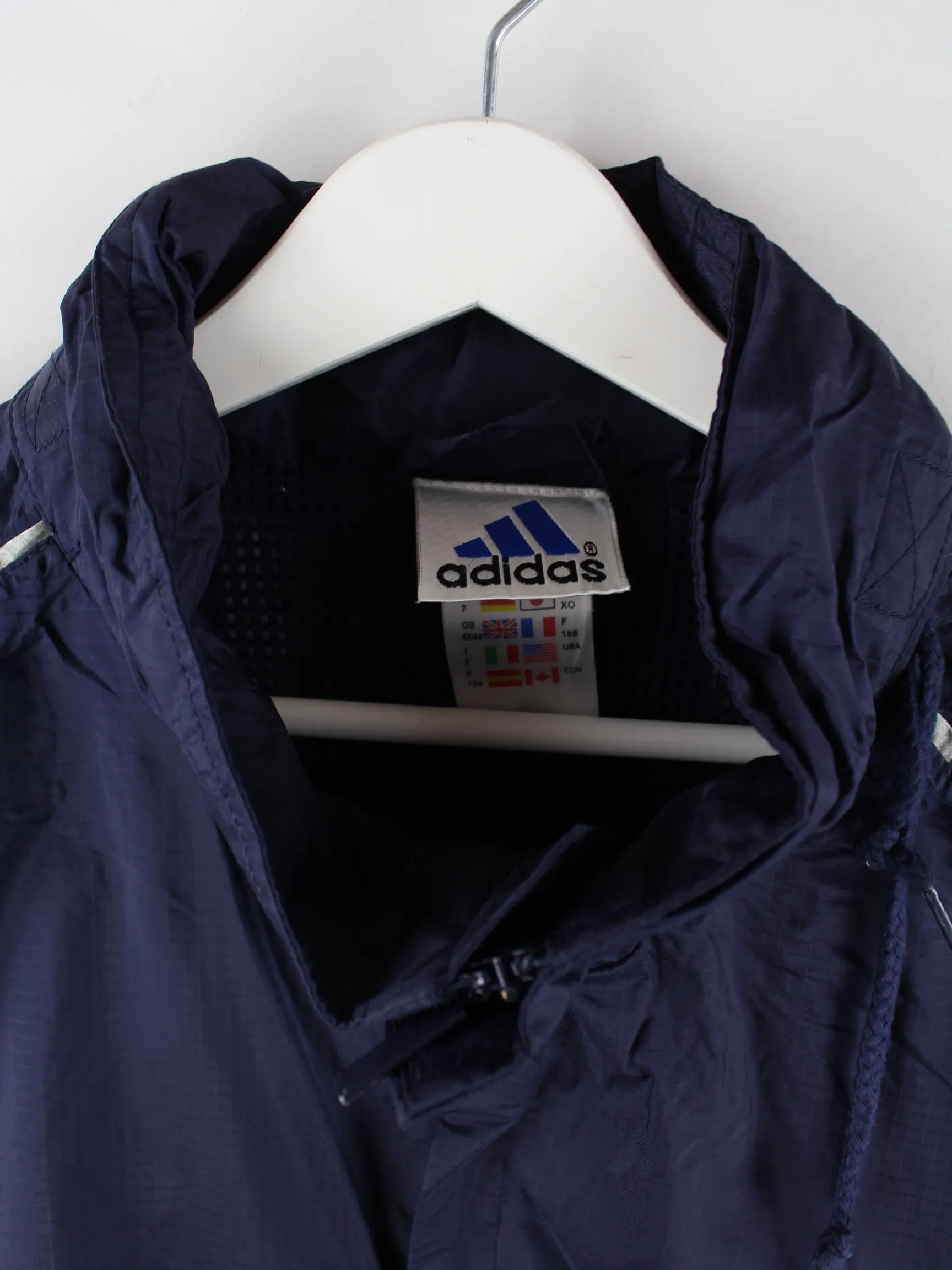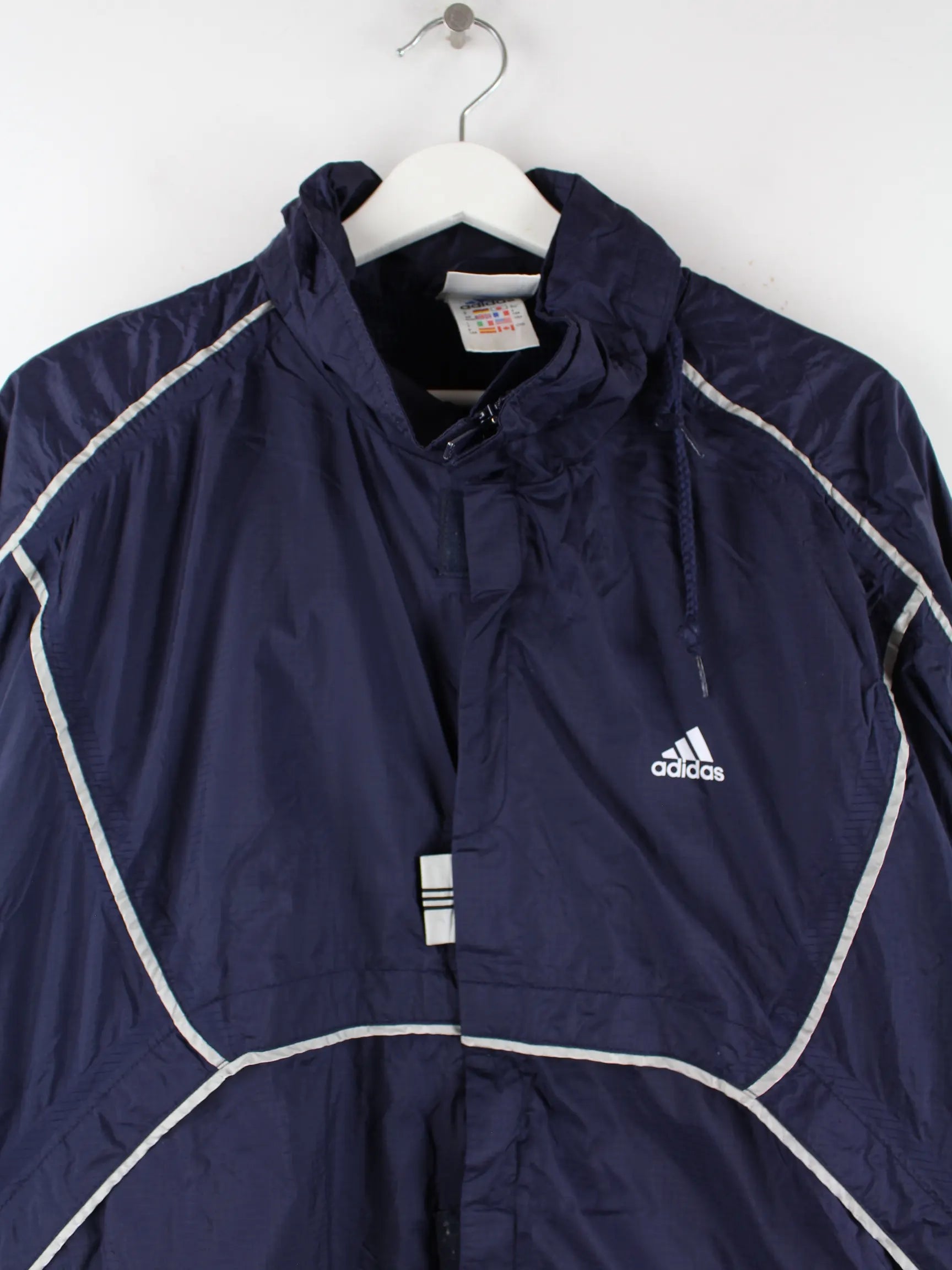 Blaue Leichte Jacke der Marke Adidas aus den 90'ern in Größe XL. Sie ist aus Synthetik gemacht und in sehr gutem Zustand auf Lager.