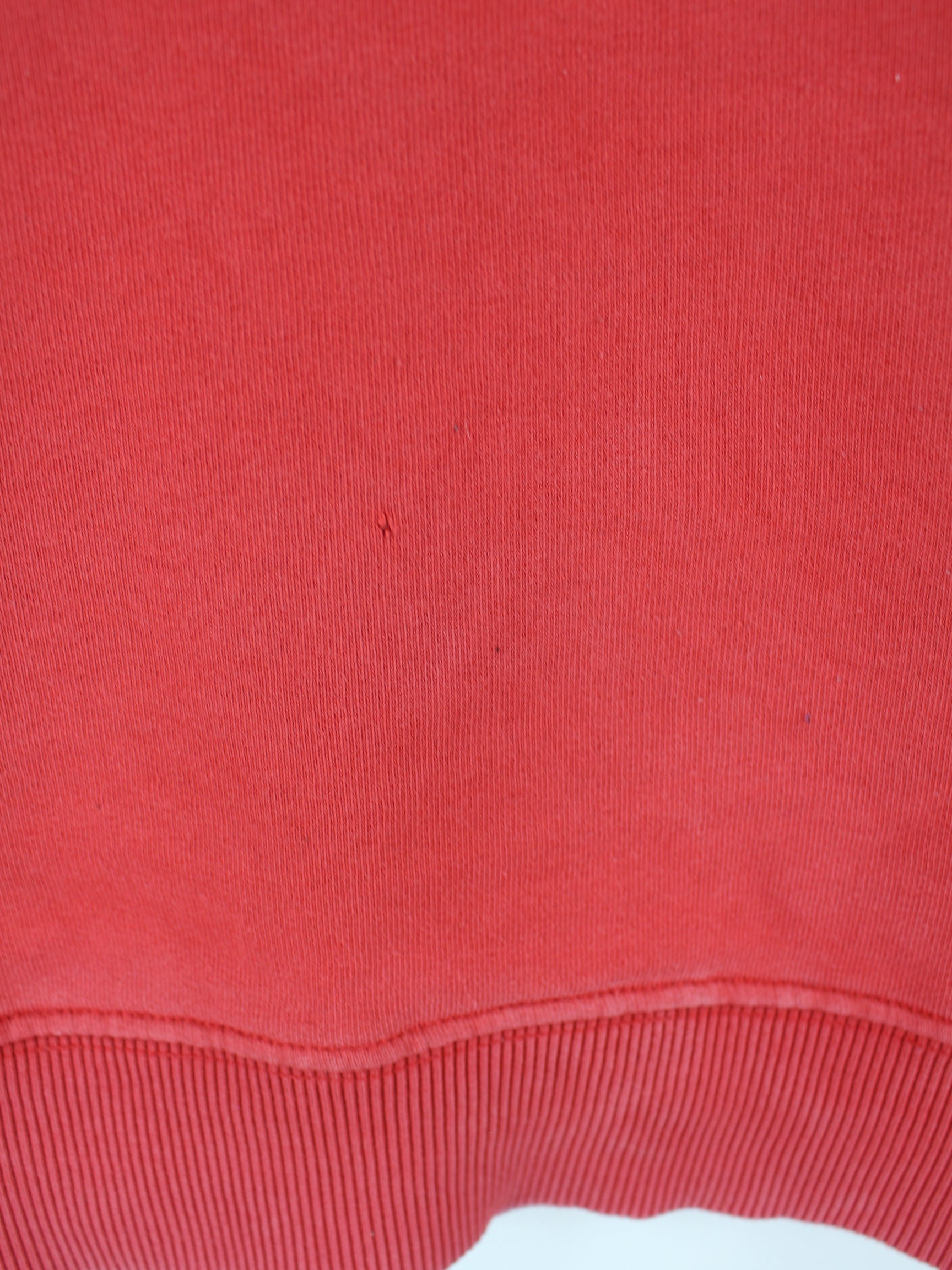 Roter Sweater mit gesticktem Logo vom Label Adidas aus den 90'ern in Größe S. Er ist aus einer Baumwollmischung produziert und in gutem Zustand bei uns vorrätig.
