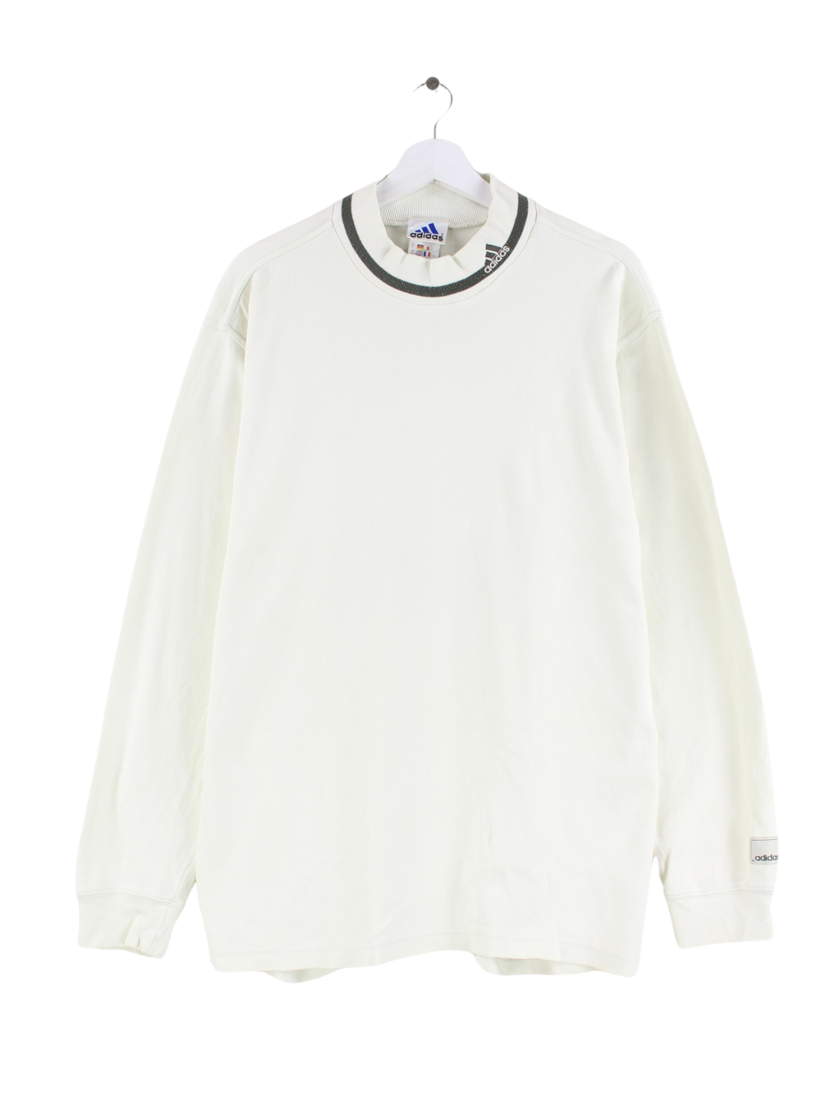 Sweatshirt des Labels Adidas in Größe M aus den 90'ern. Es ist aus Baumwolle gefertigt und in Beige bei uns zu bekommen.