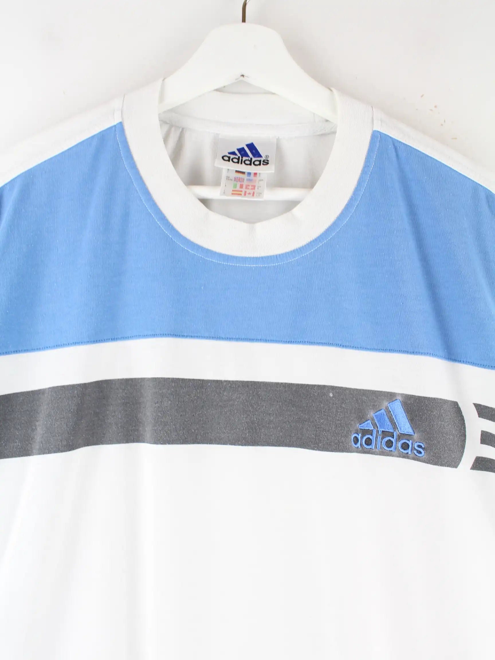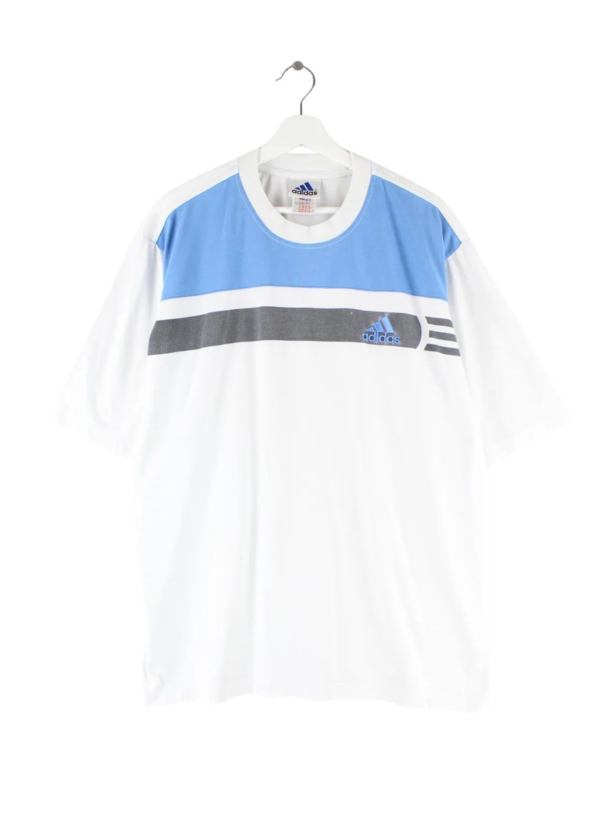 Weißes T-Shirt vom Label Adidas aus den 90'ern in Größe XL. Es ist aus Baumwolle produziert und in gutem Zustand in Stock.