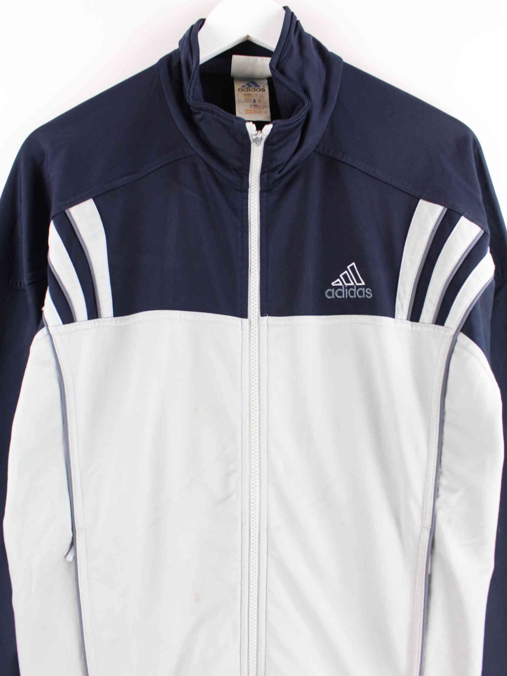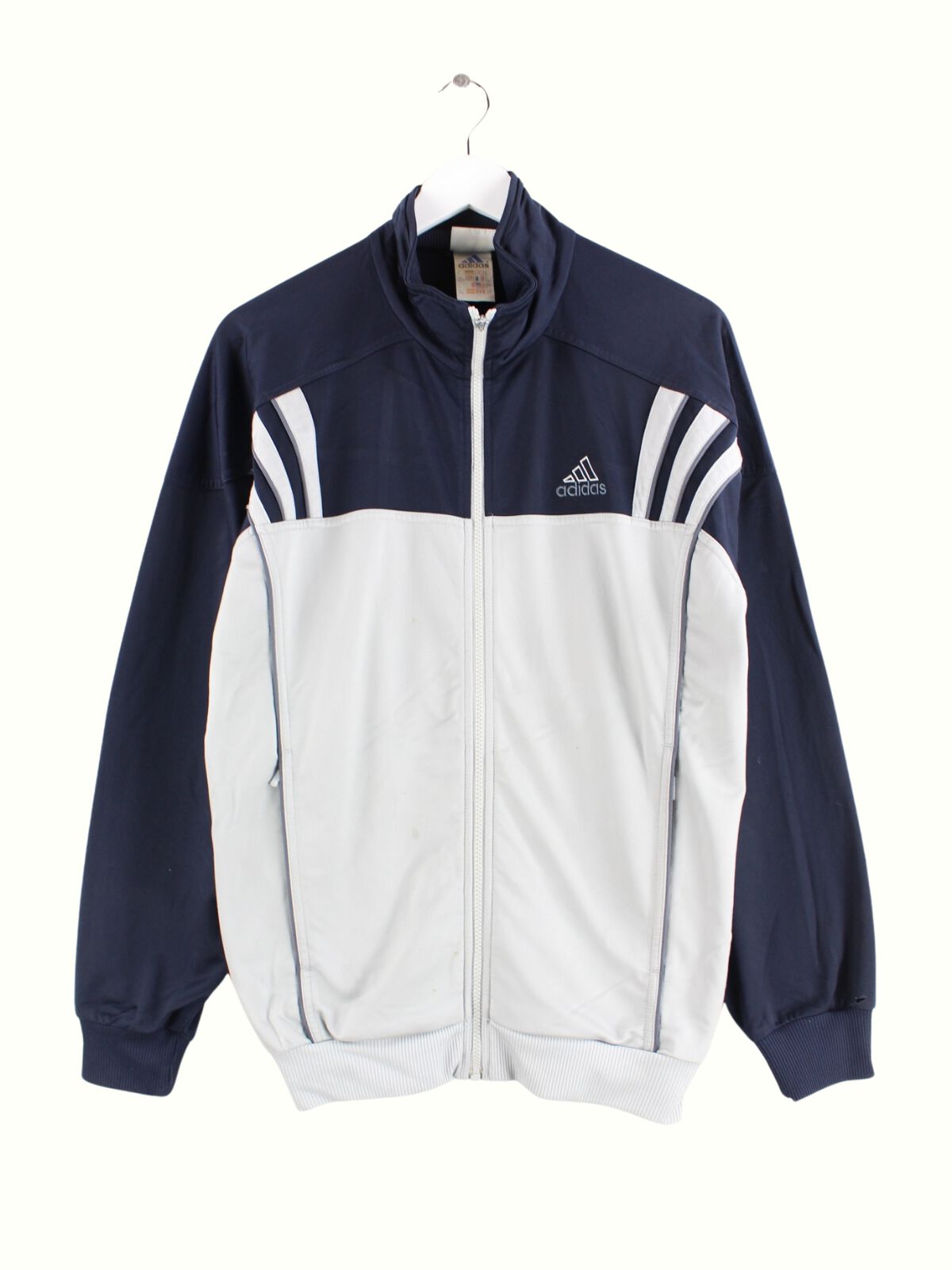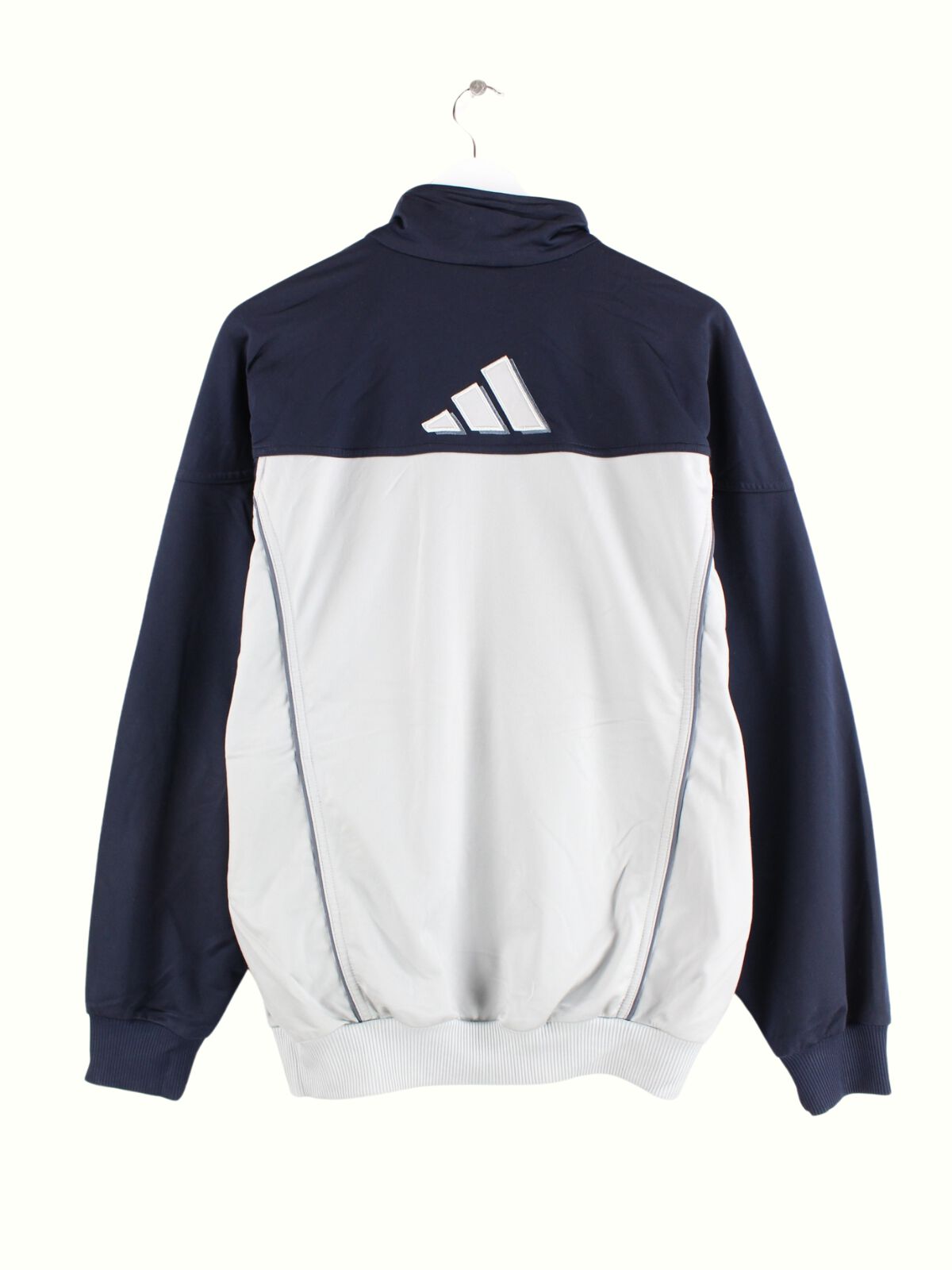 Graue Trainingsjacke von Adidas aus den 90'ern in Größe L. Sie ist aus Synthetik gefertigt. Den Zustand würden wir als 'In Ordnung' bezeichnen (vergl. Bilder).