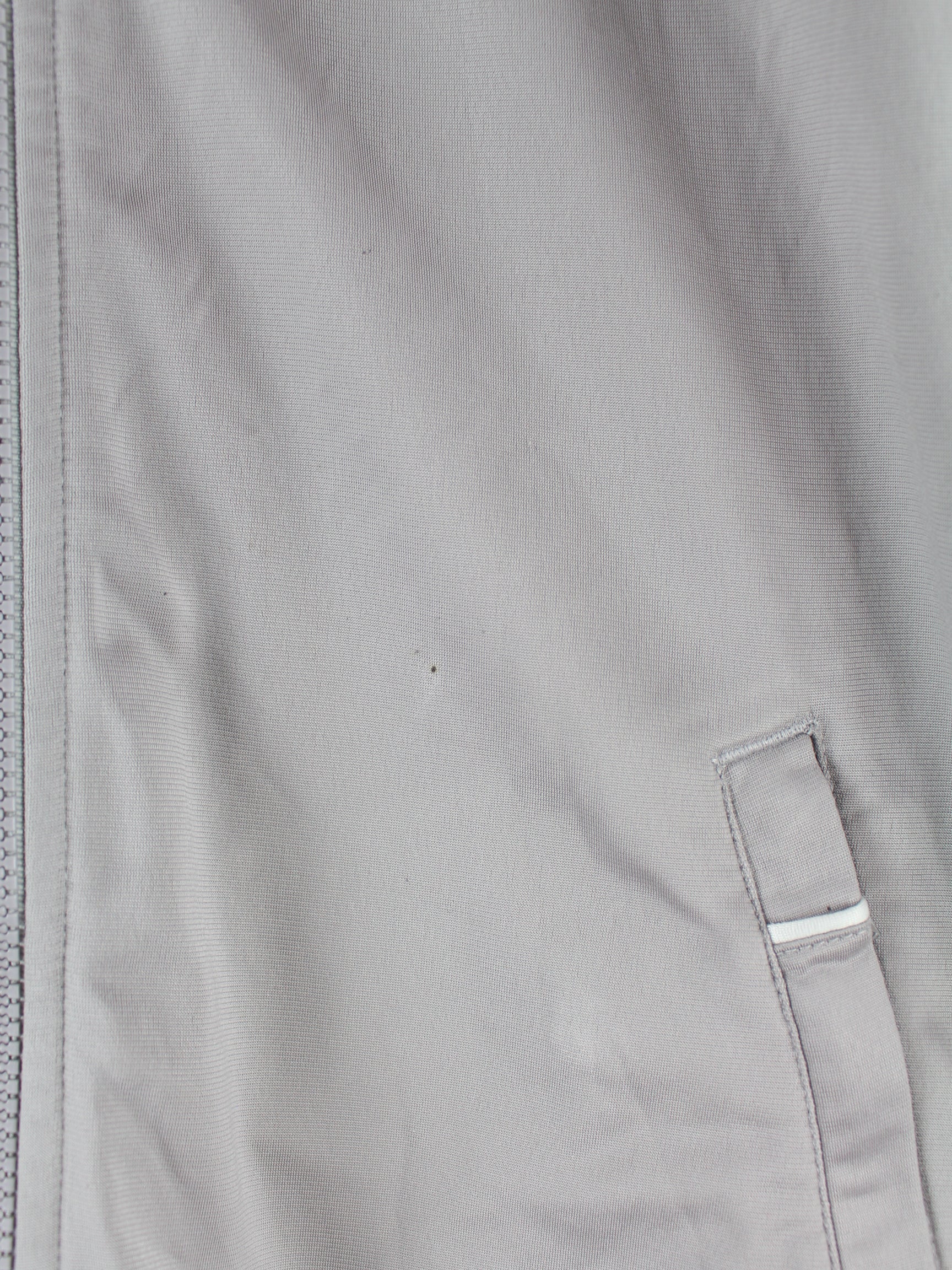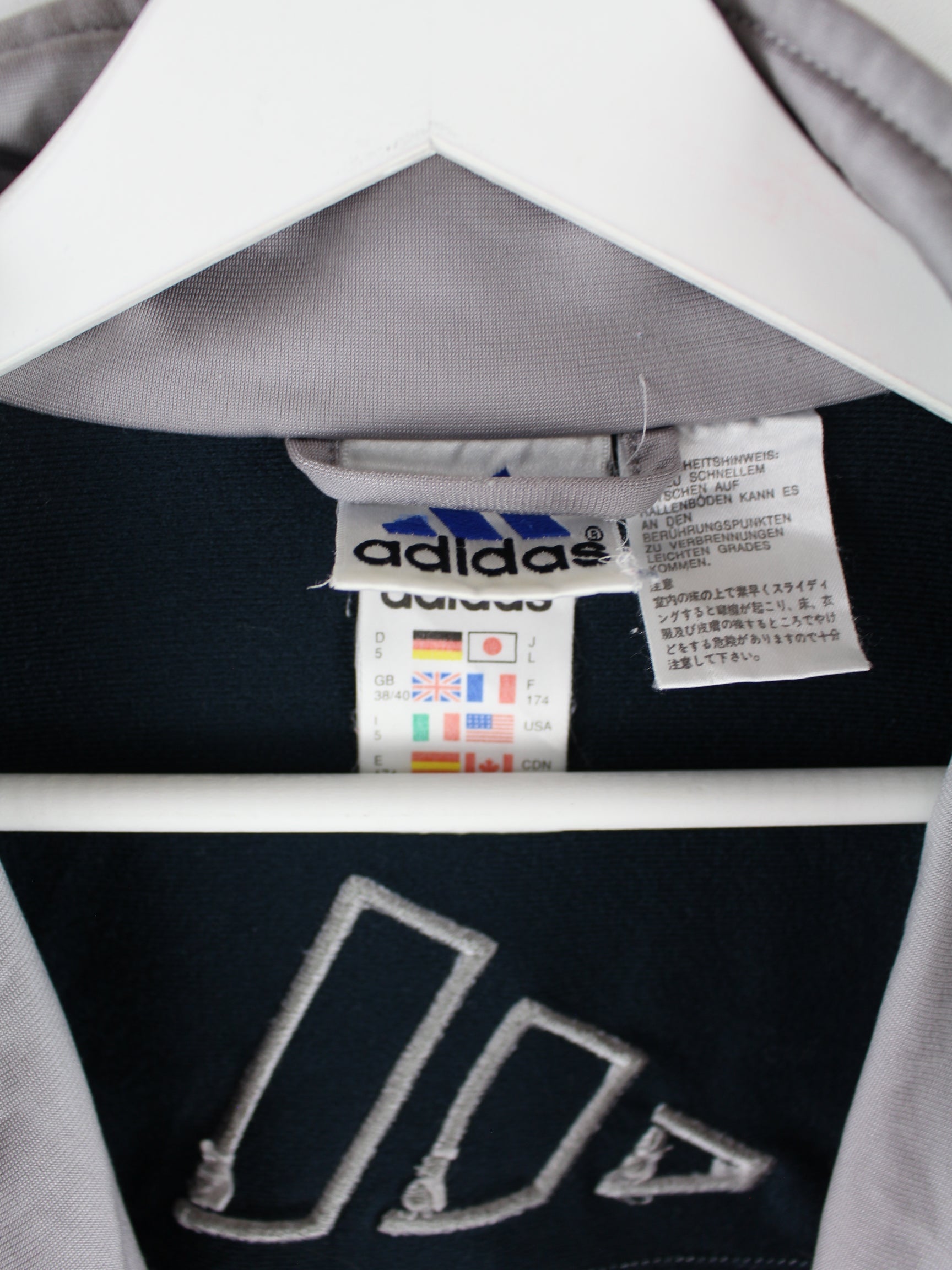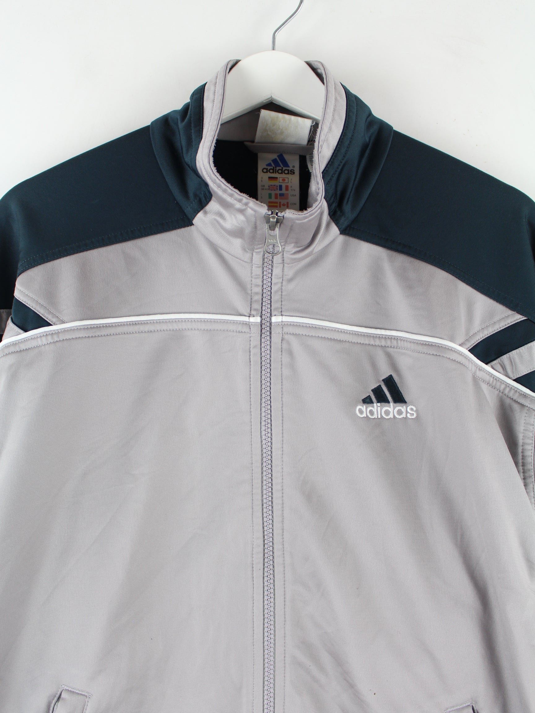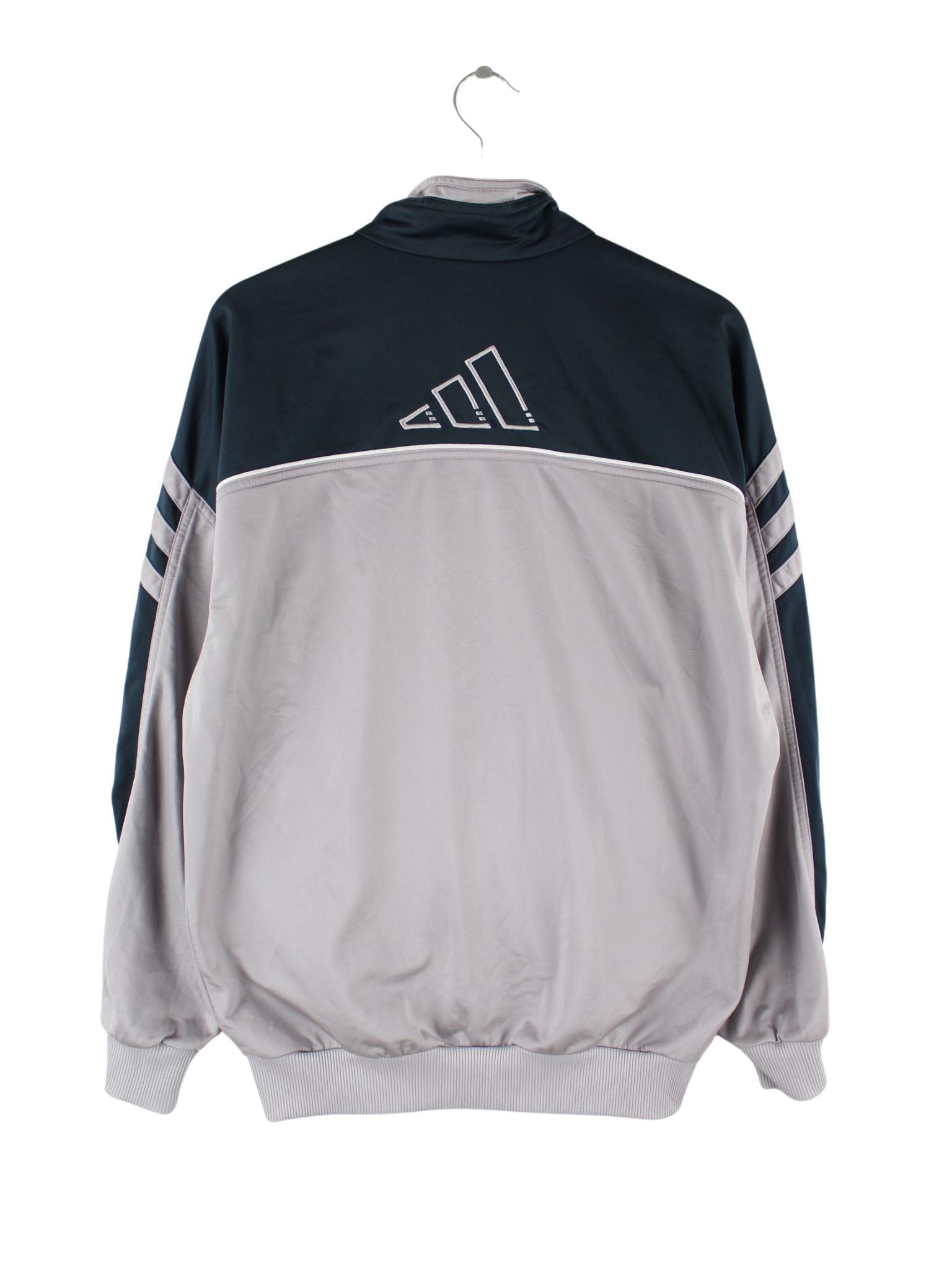 Graue Trainingsjacke des Labels Adidas aus den 90'ern in Größe L. Sie ist aus Synthetik hergestellt und in gutem Zustand in Stock.