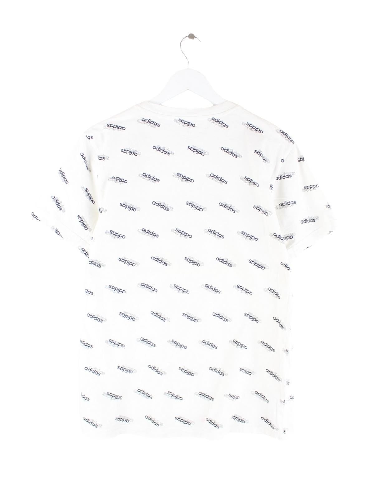 Weißes T-Shirt aus dem Hause Adidas in Größe M. Es ist aus Baumwolle gefertigt. Den Zustand würden wir als 'In Ordnung' bezeichnen (vergl. Bilder).Mit schönem Over Print.