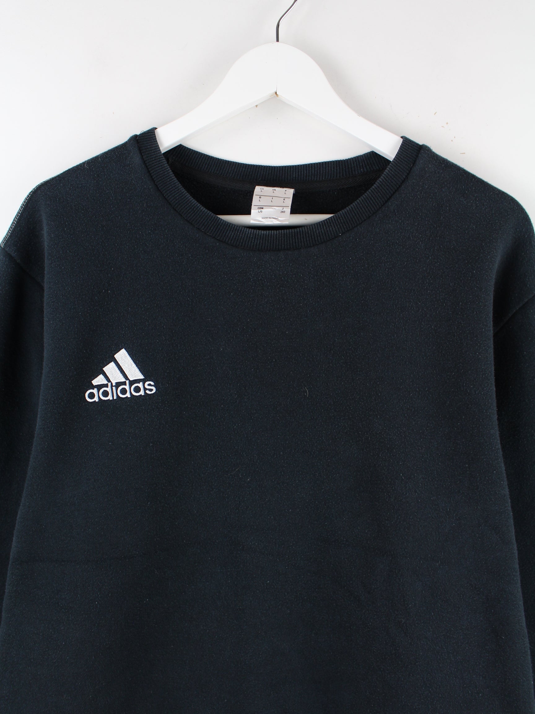 Schwarzer Sweater der Marke Adidas in Größe L. Er ist aus einer Baumwollmischung und in sehr gutem Zustand lieferbar.