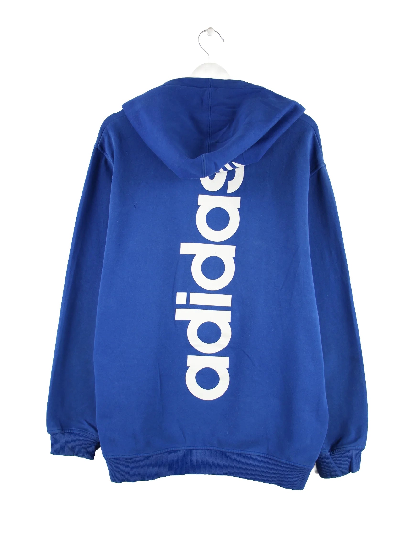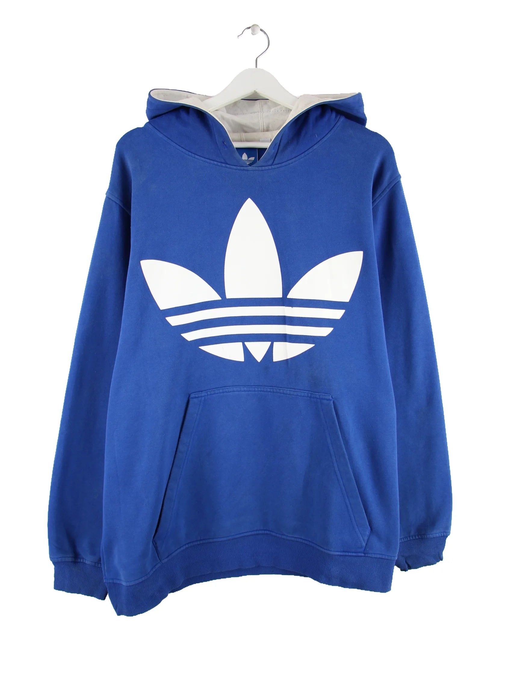 Hoodie der Brand Adidas in Größe XL. Er ist aus einer Baumwollmischung gefertigt und in Blau auf Lager. Mit schönem Trefoil Print.