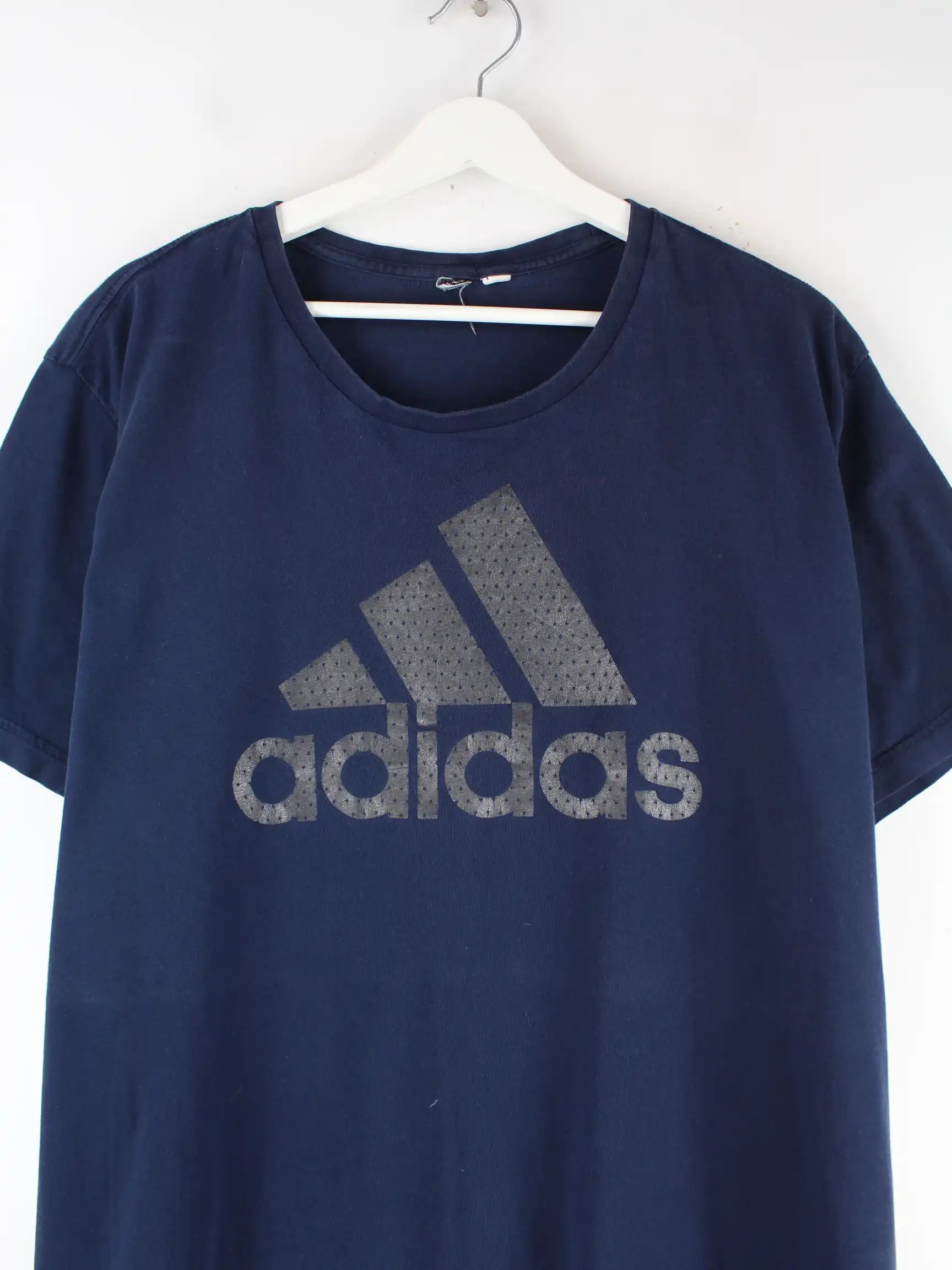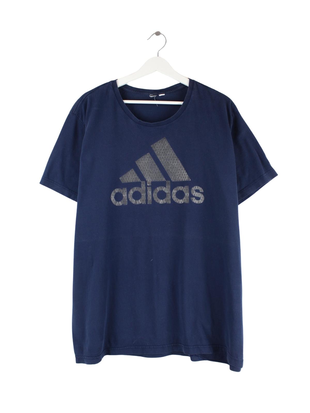 T-Shirt der Marke Adidas in Größe XXL. Es ist aus Baumwolle und in Blau vorrätig. Mit seltenem Logo Print.