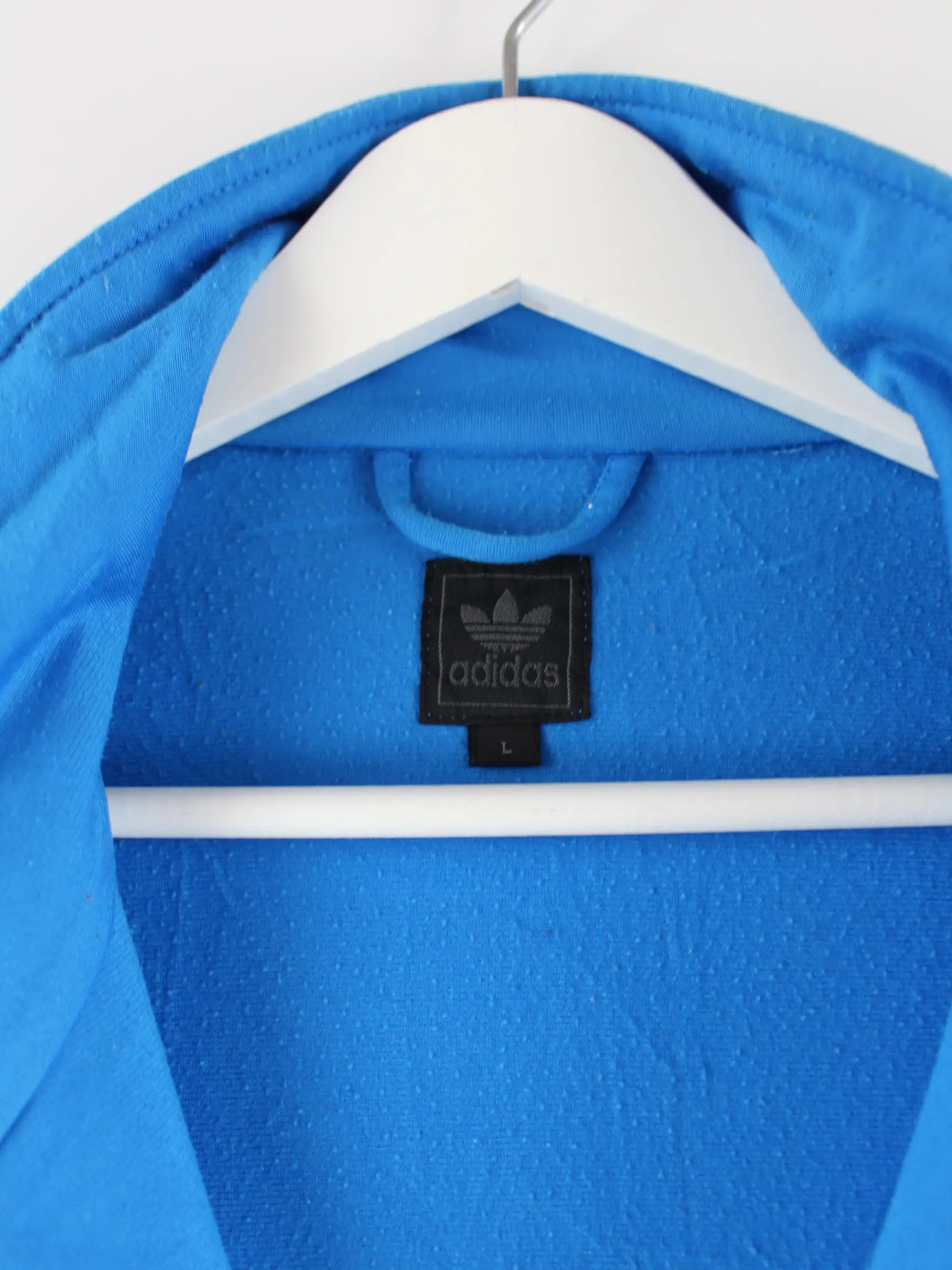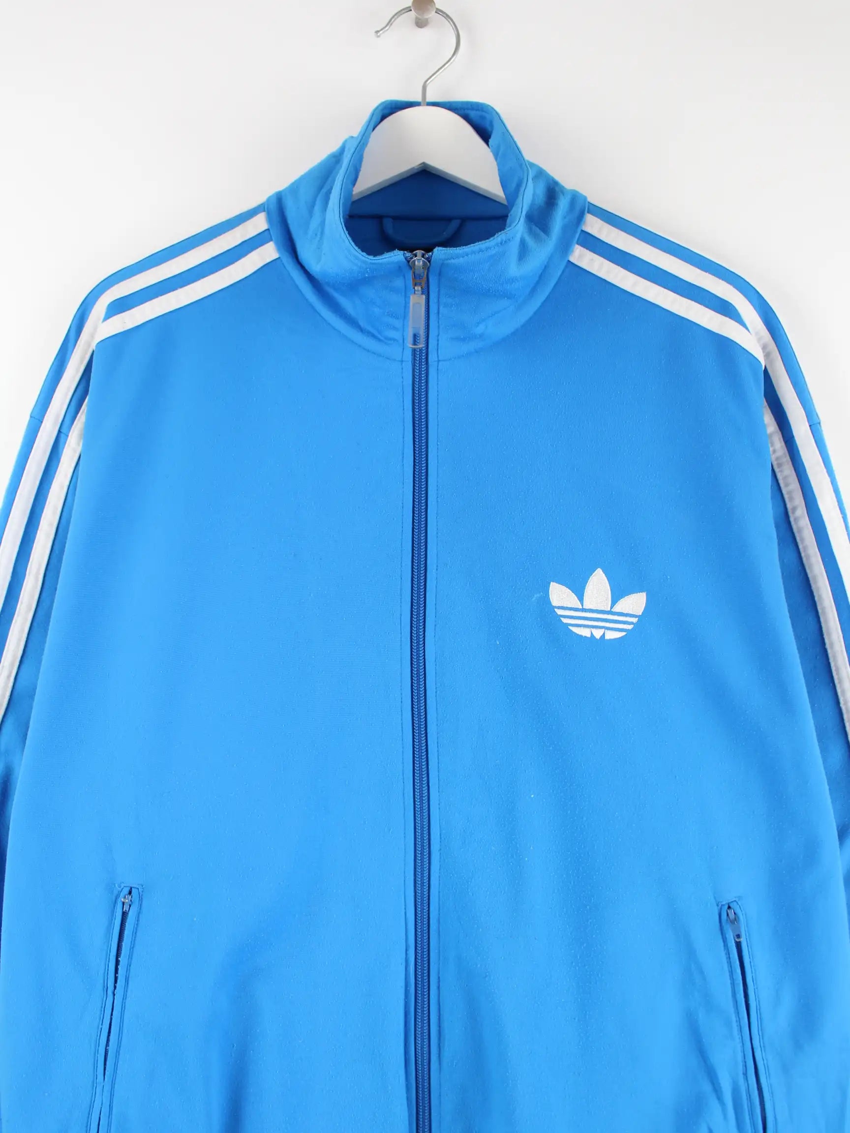 Trainingsjacke der Marke Adidas in Größe L. Sie ist aus Synthetik produziert und in Blau vorrätig.