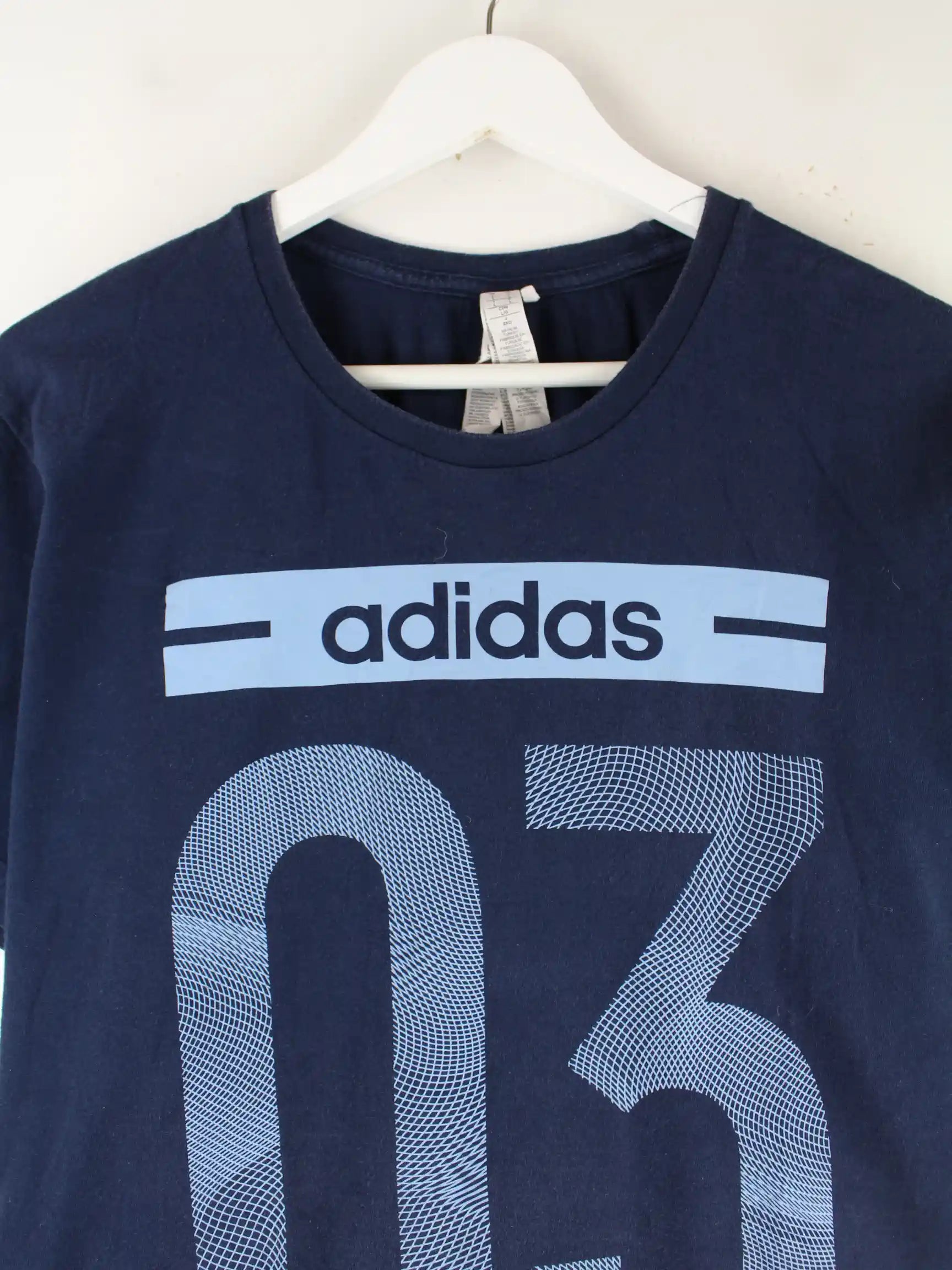 Blaues T-Shirt der Marke Adidas in Größe L. Es ist aus Baumwolle und in sehr gutem Zustand in Stock. Mit schickem Print.