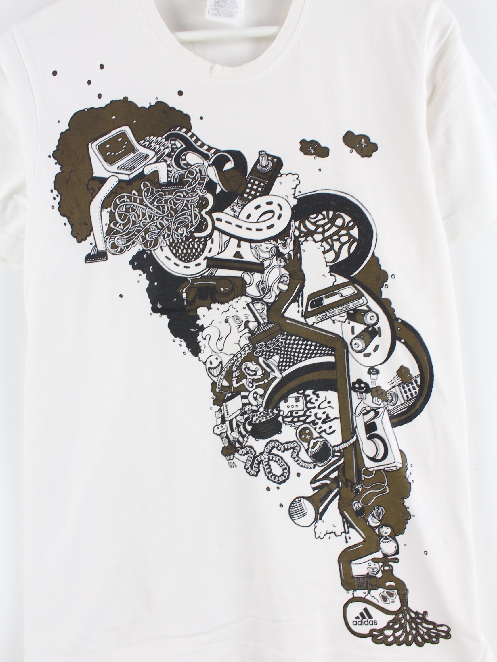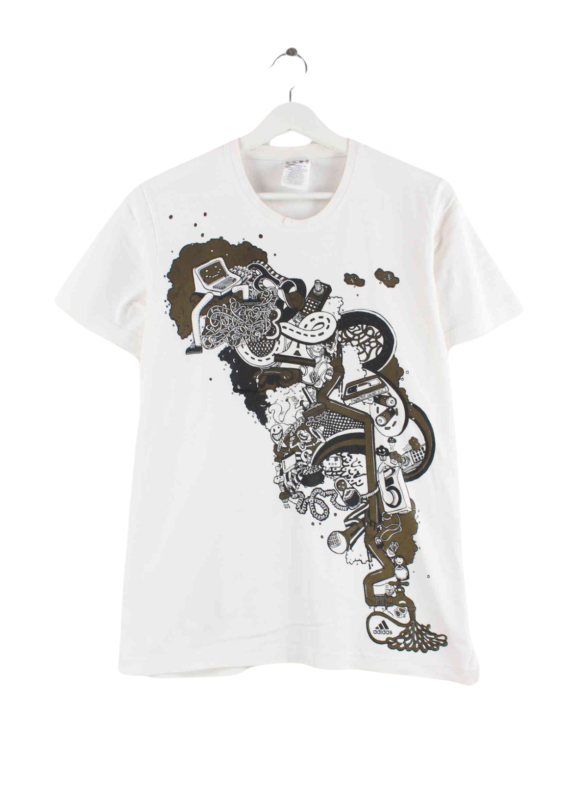 Besonderes weißes T-Shirt aus dem Hause Adidas in Größe XS. Es ist aus Baumwolle produziert und in sehr gutem Zustand zu bekommen. Mit schickem Print.