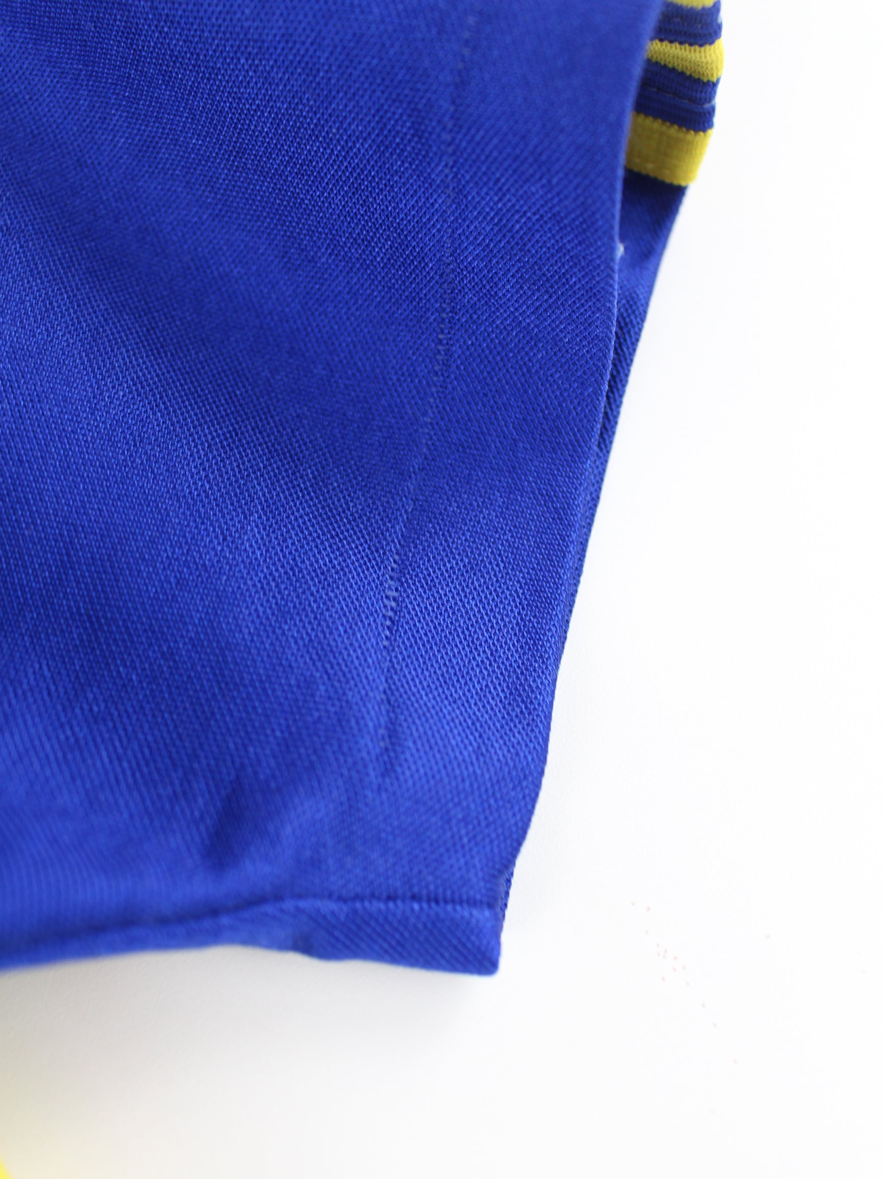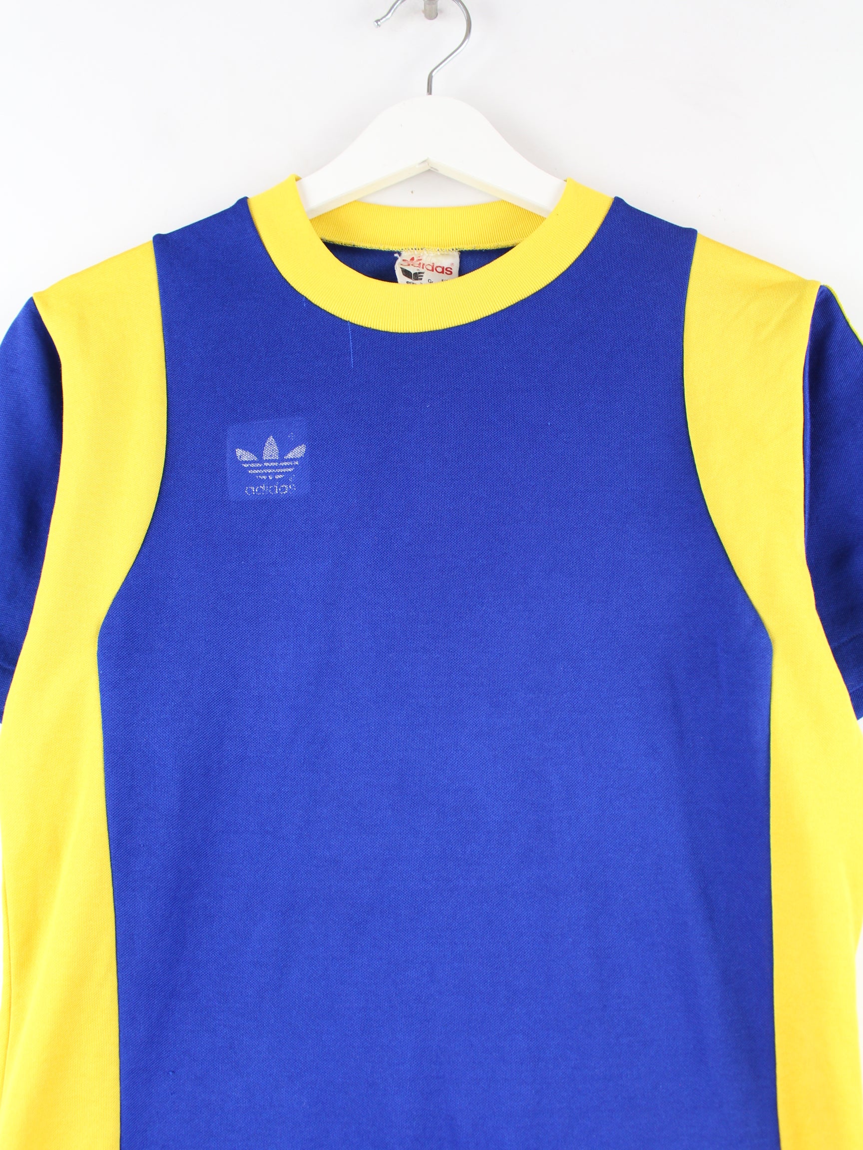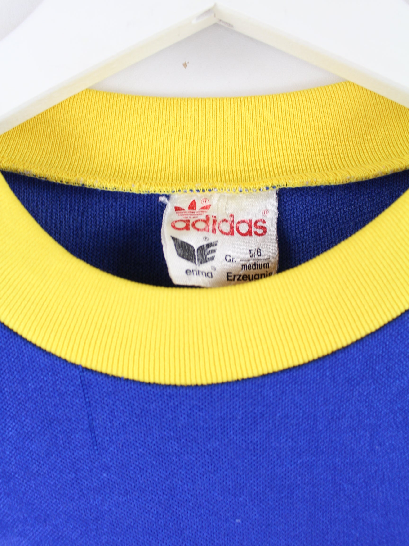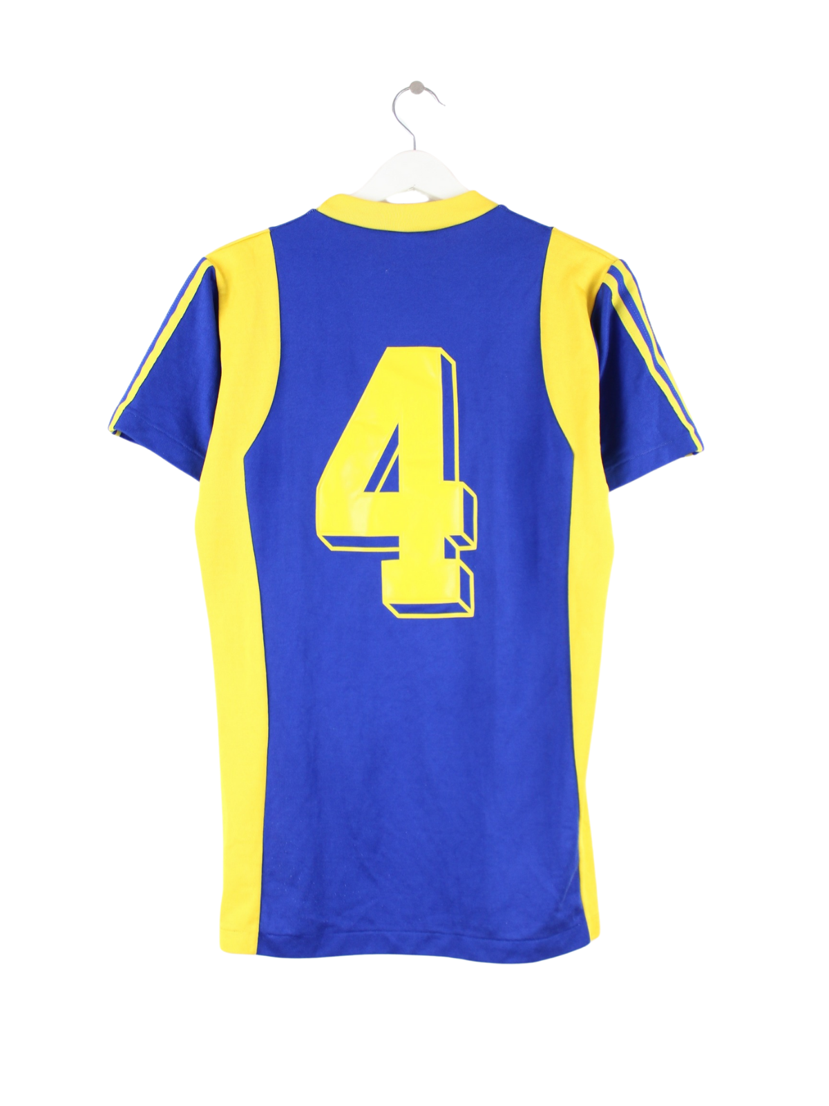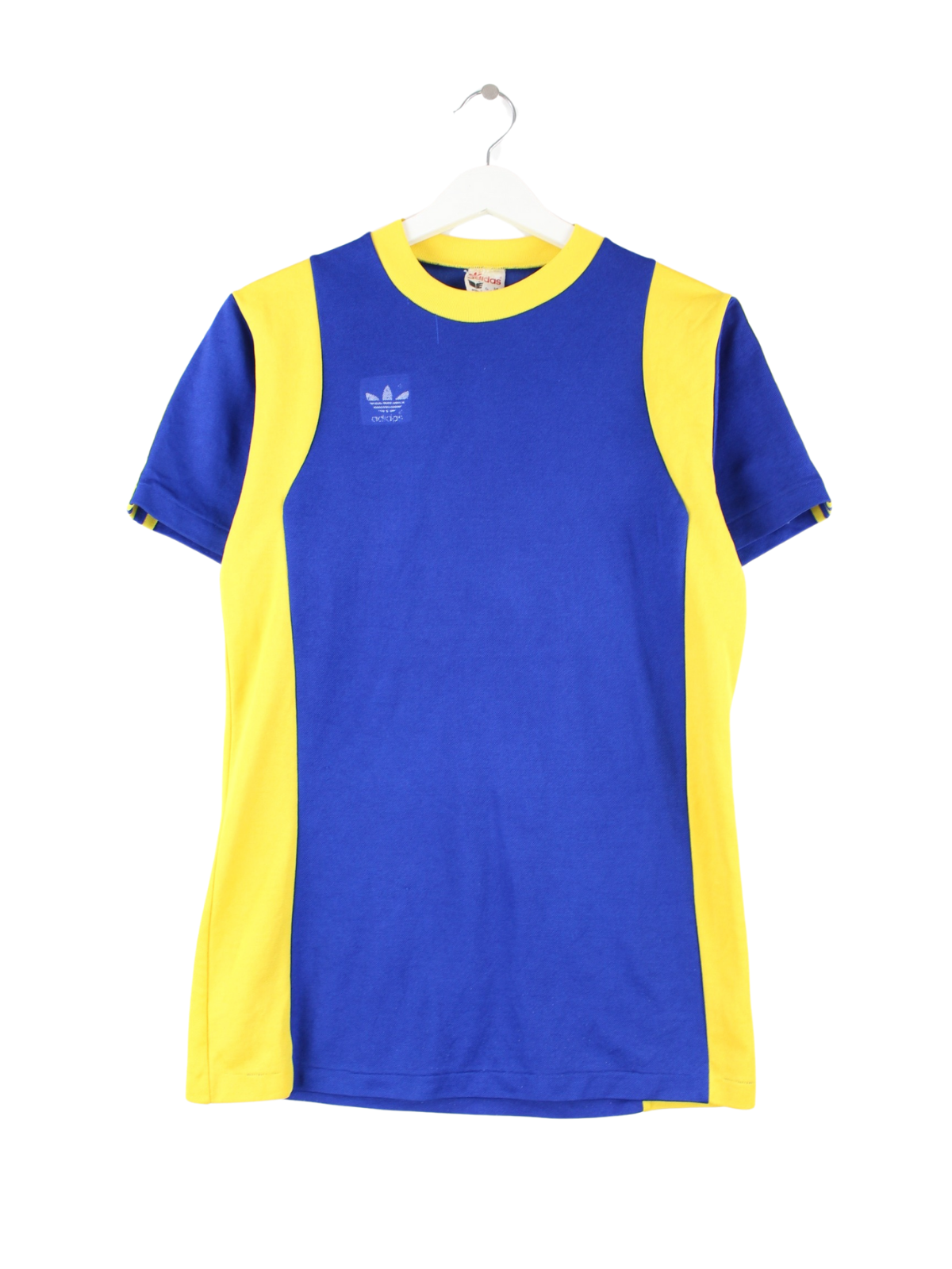 Blaues Trikot der Brand Adidas aus den 80'ern in Größe M. Es ist aus Synthetik gefertigt und in gutem Zustand zu bekommen.