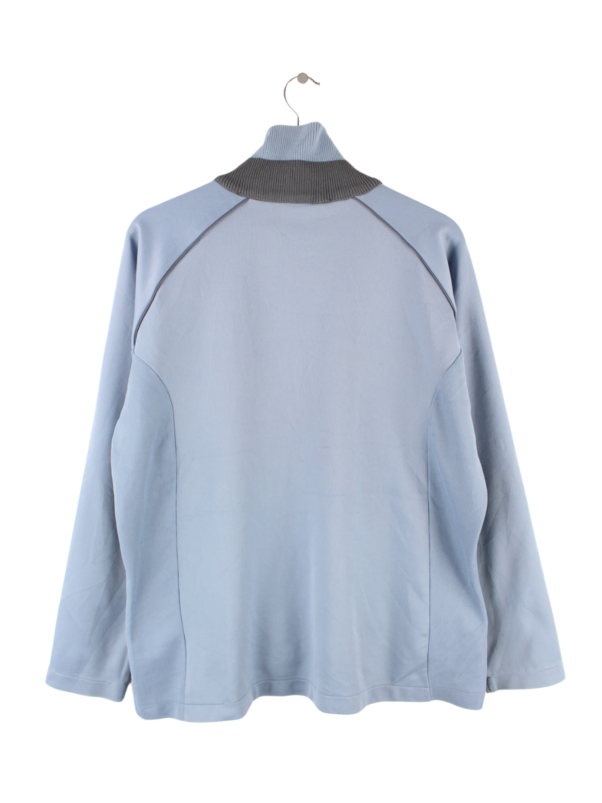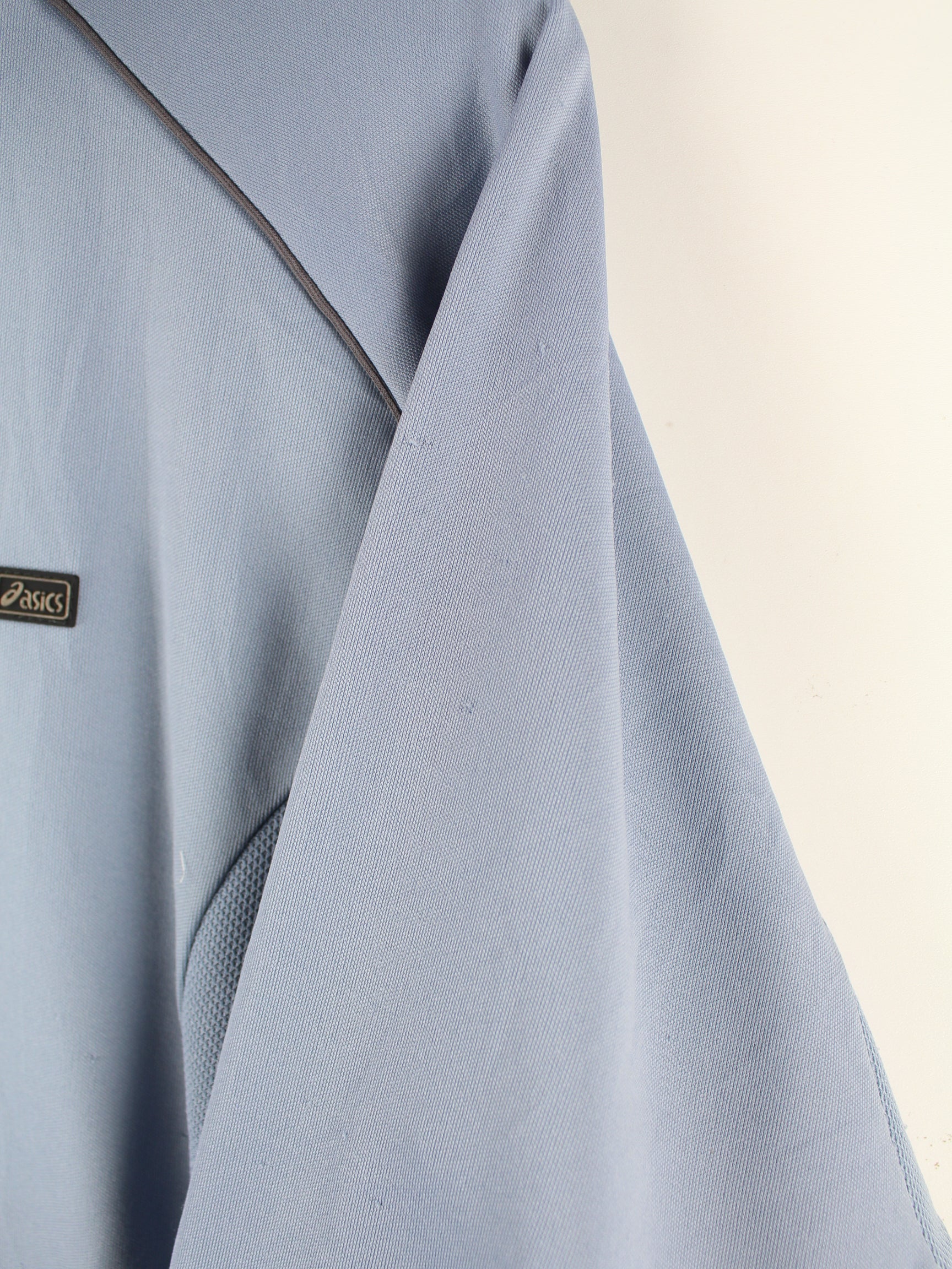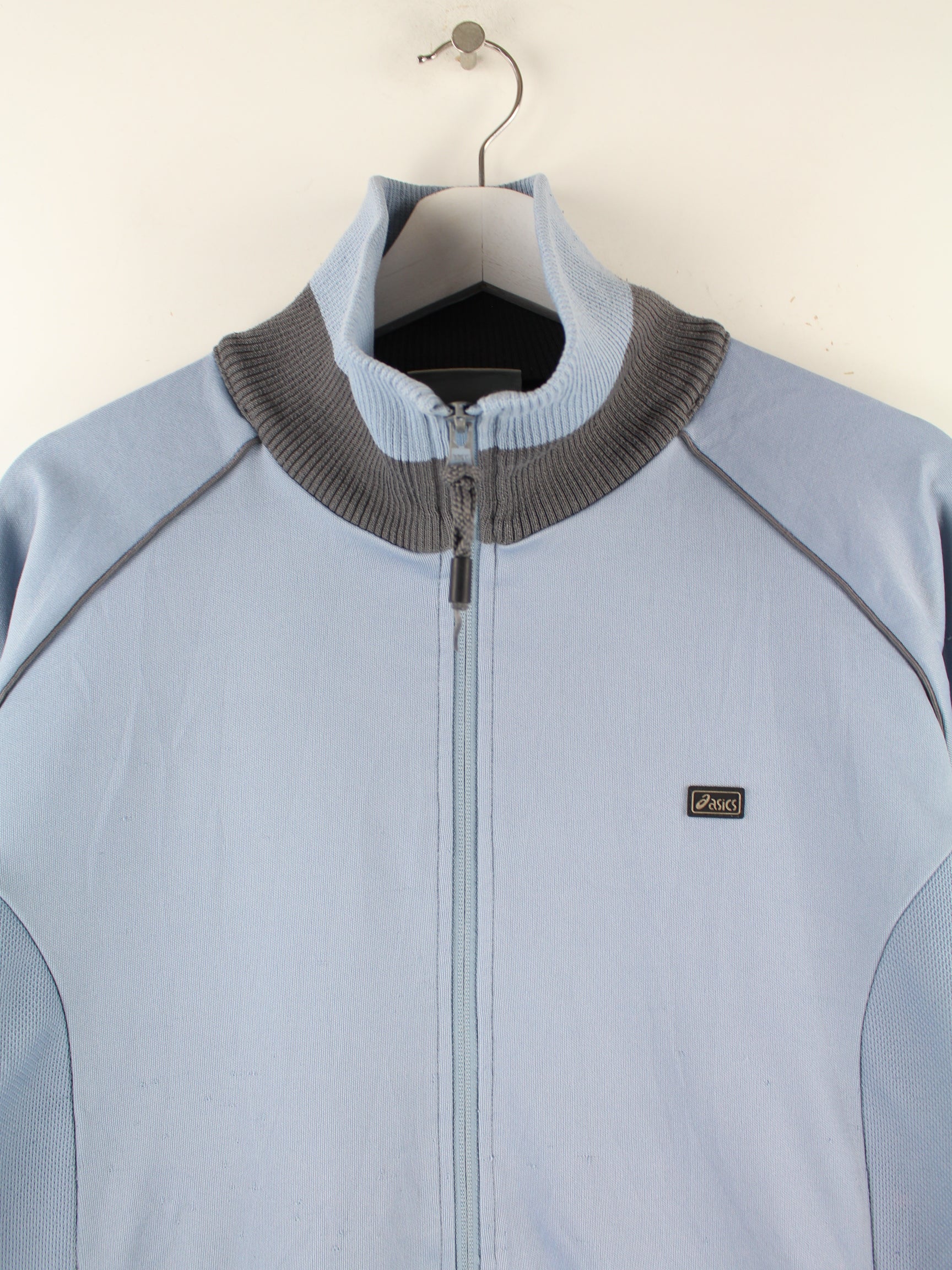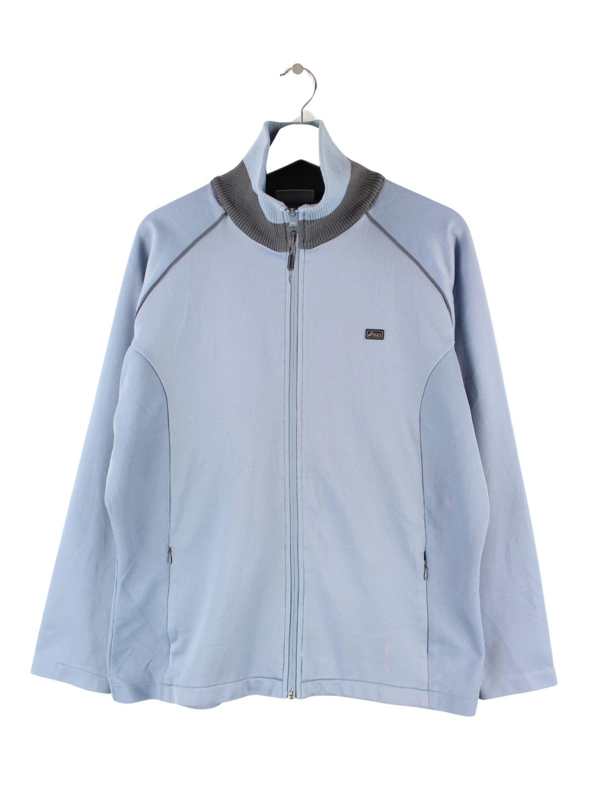 Blaue Trainingsjacke des Labels Asics aus den 90'ern in Größe M. Sie ist aus Synthetik . Den Zustand würden wir als 'In Ordnung' bezeichnen (vergl. Bilder).
