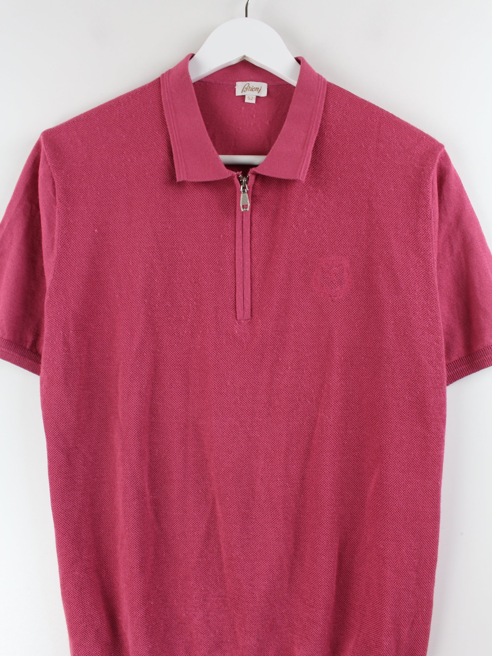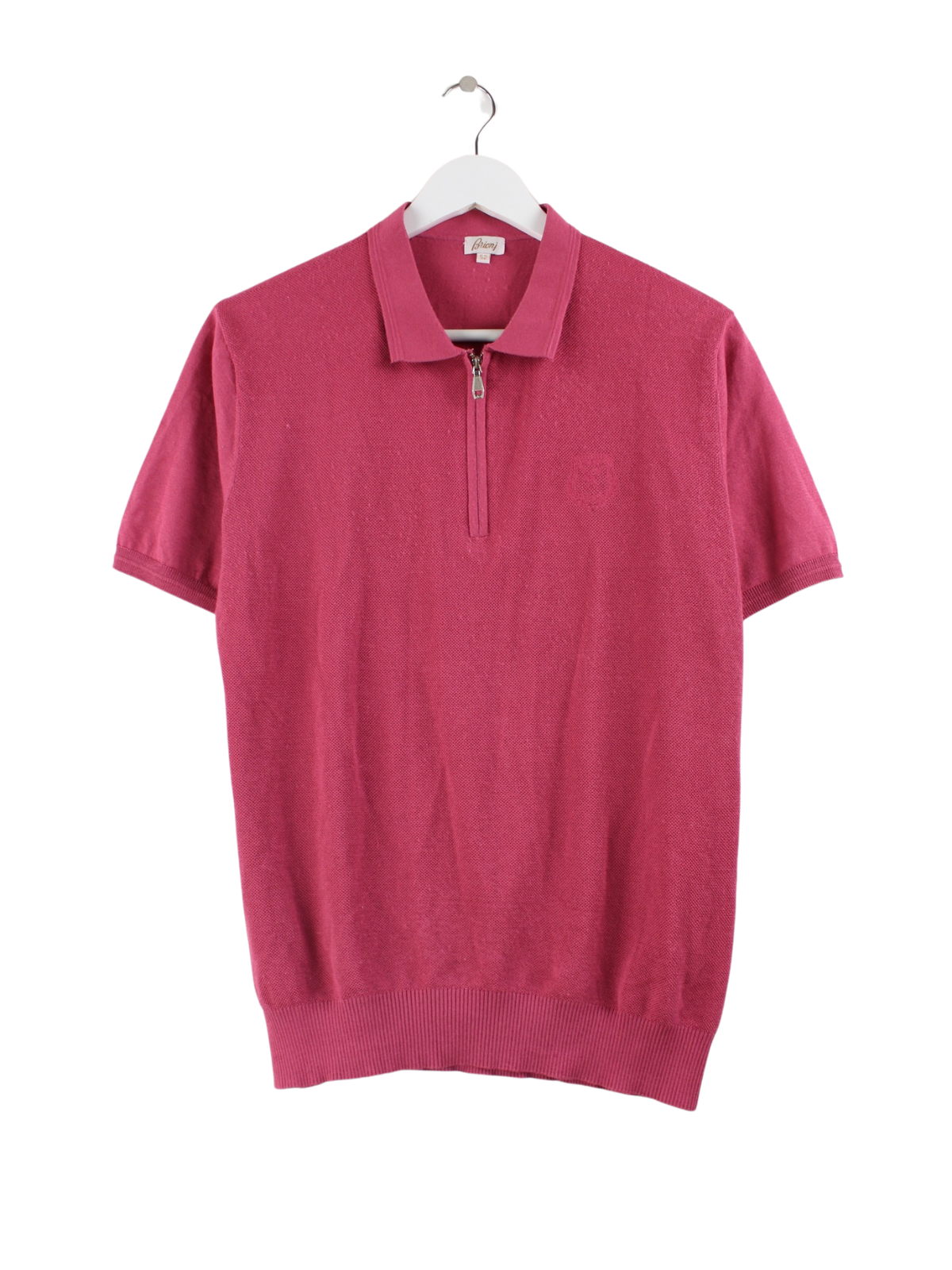 Poloshirt der Brand Brioni mit halbem Reißverschluß in Größe S. Es ist aus Seide gefertigt und in Rot im Angebot.