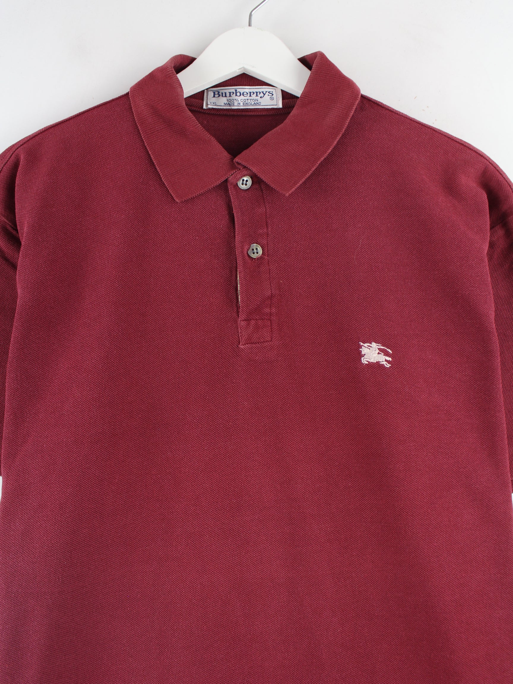 Rotes Poloshirt vom Brand Burberry aus den 80'ern in Größe L. Es ist aus Baumwolle und in sehr gutem Zustand lieferbar.