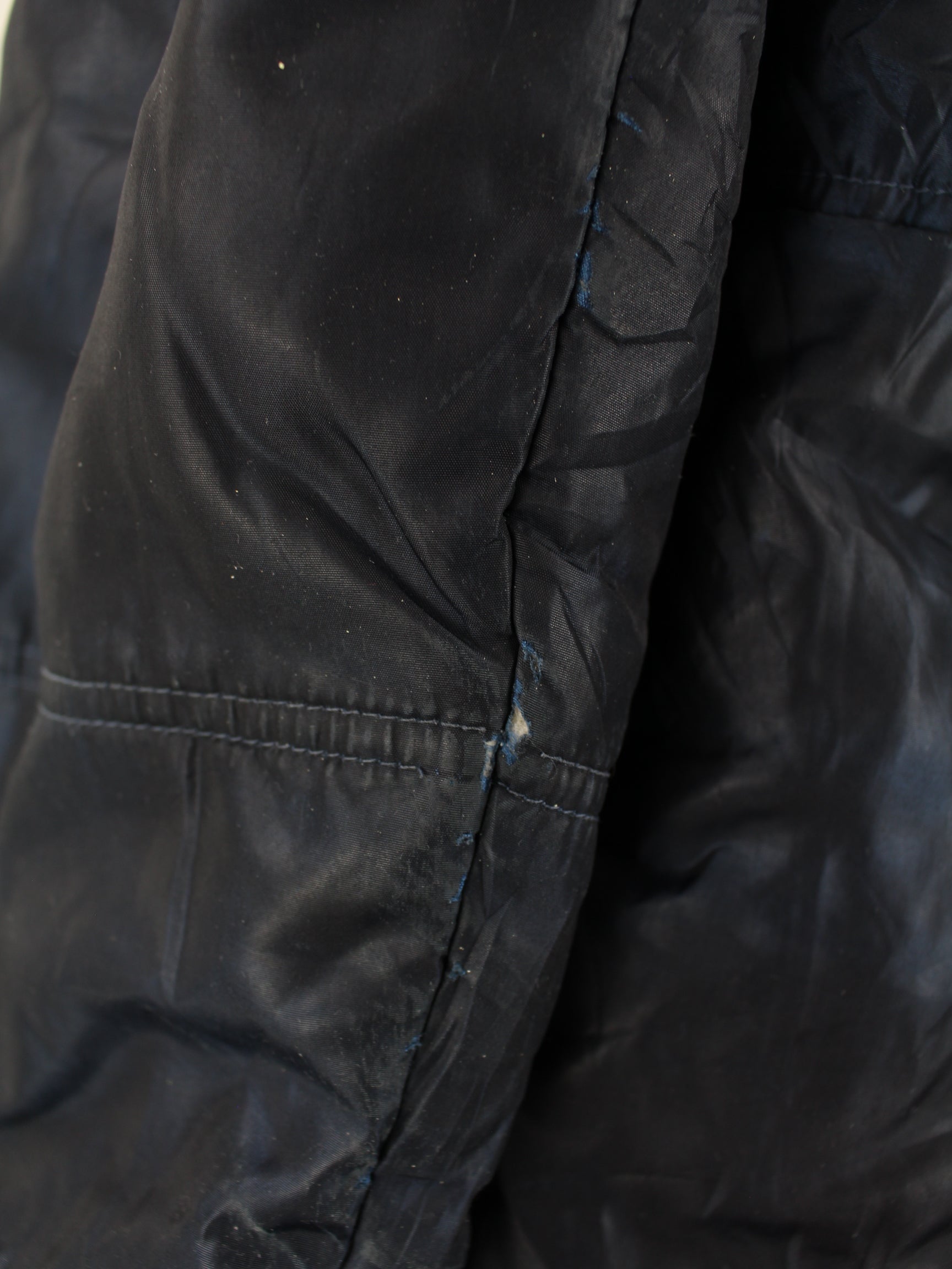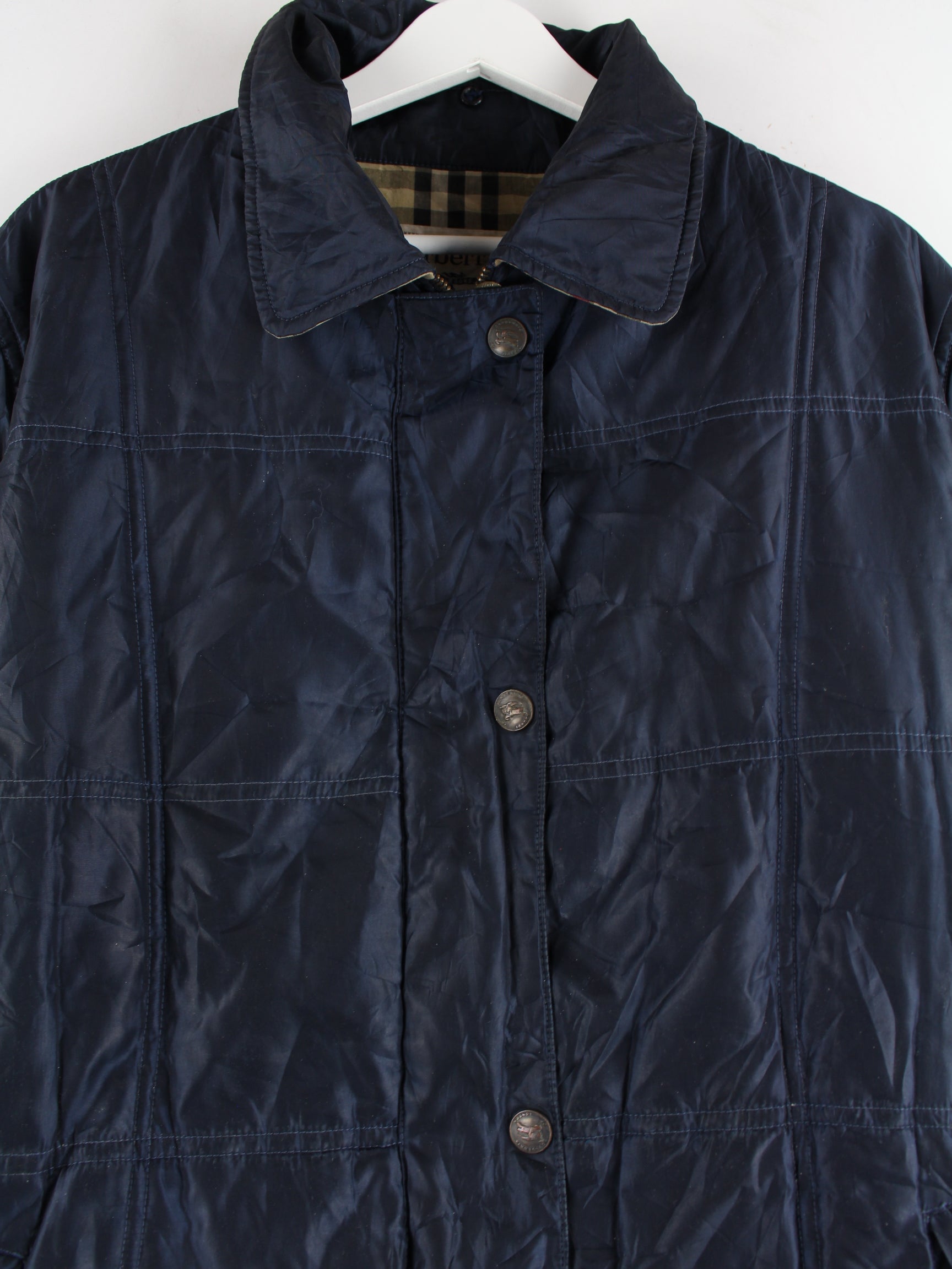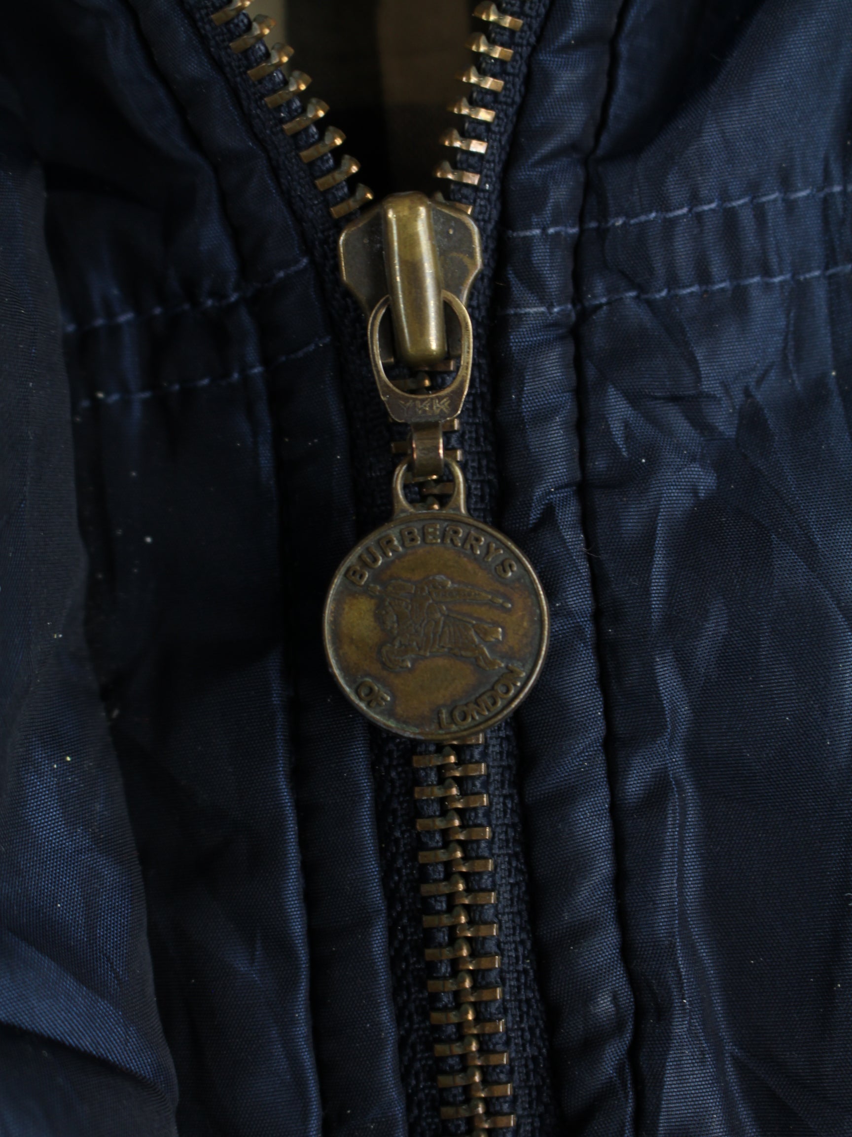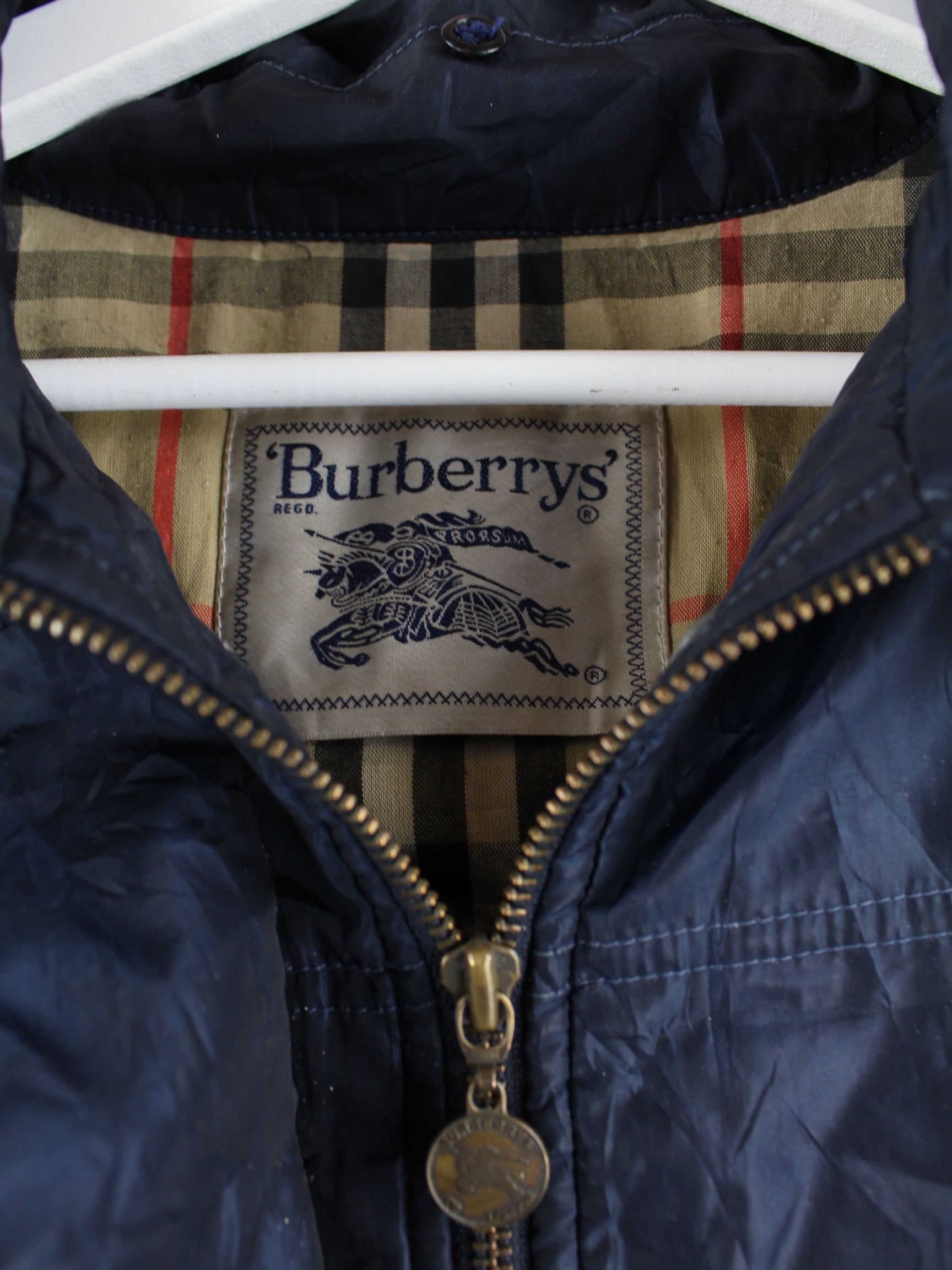 Blaue Jacke der Marke Burberry aus den 90'ern in Größe L. Sie ist aus Synthetik hergestellt. Den Zustand würden wir als 'In Ordnung' bezeichnen (vergl. Bilder).