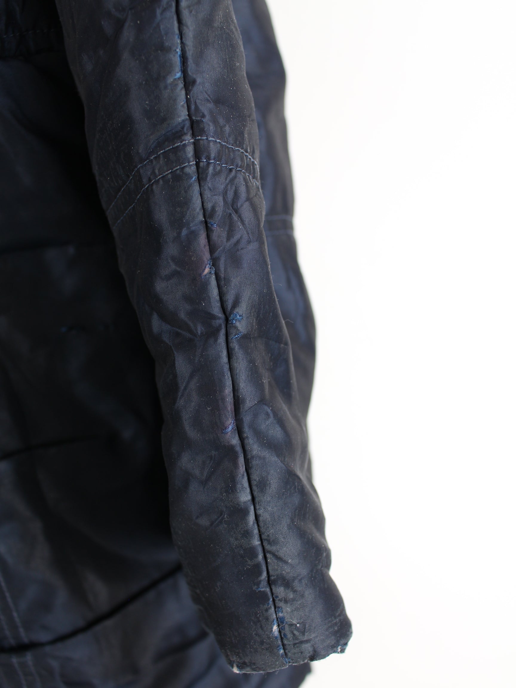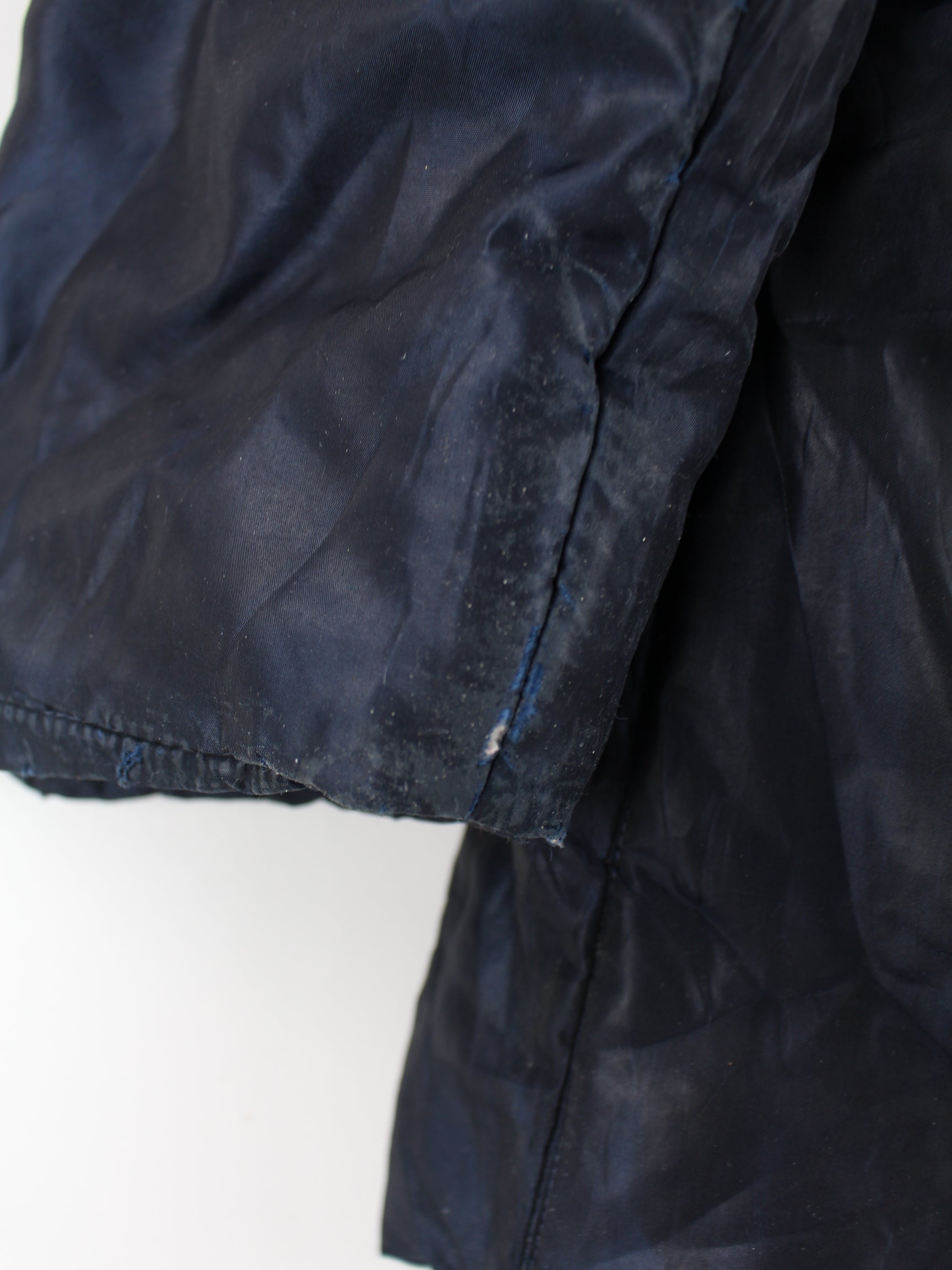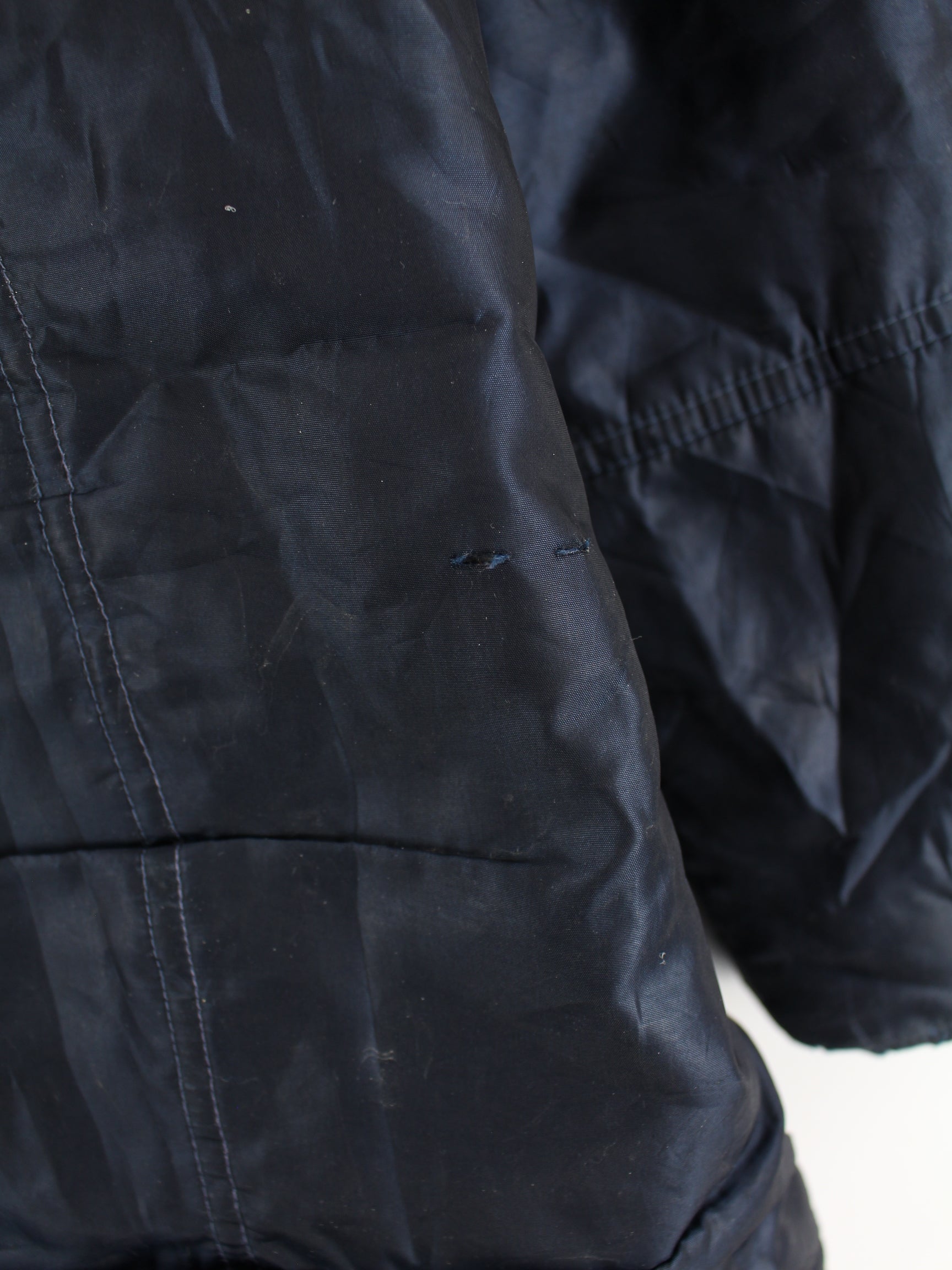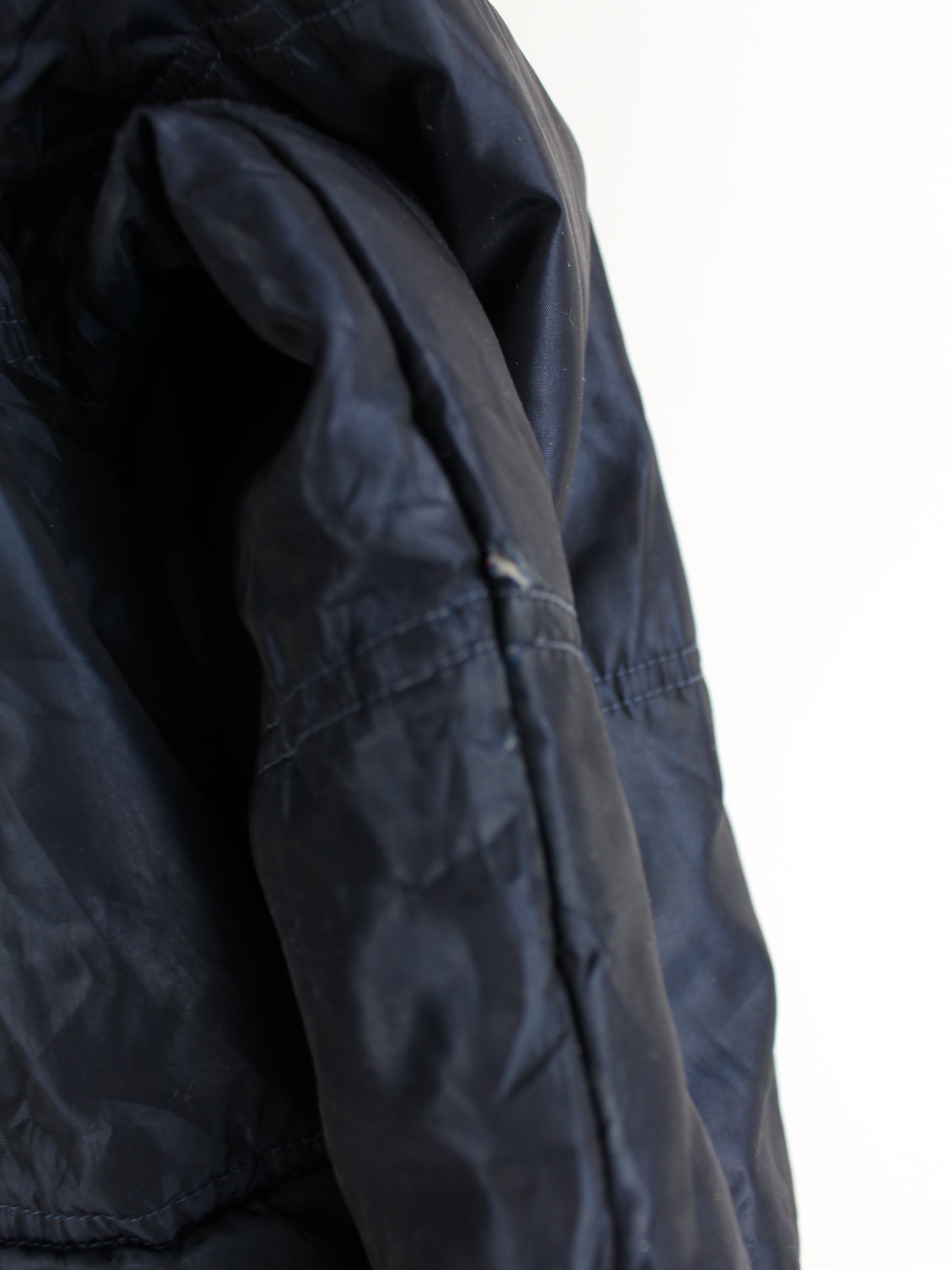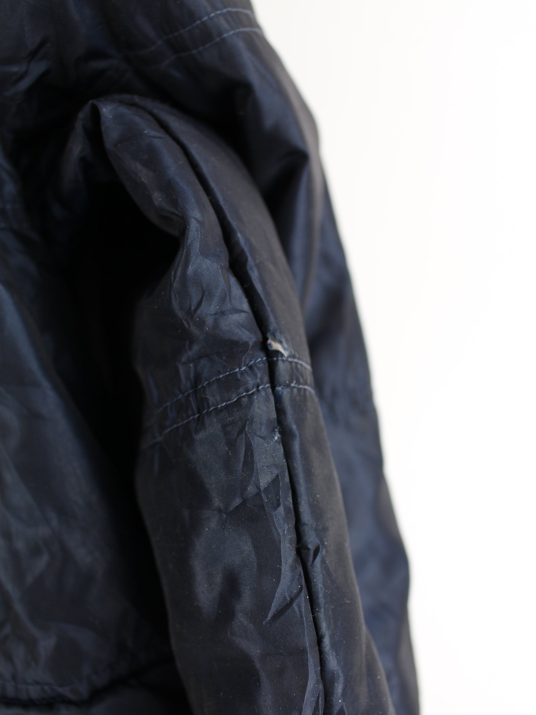 Blaue Jacke der Marke Burberry aus den 90'ern in Größe L. Sie ist aus Synthetik hergestellt. Den Zustand würden wir als 'In Ordnung' bezeichnen (vergl. Bilder).