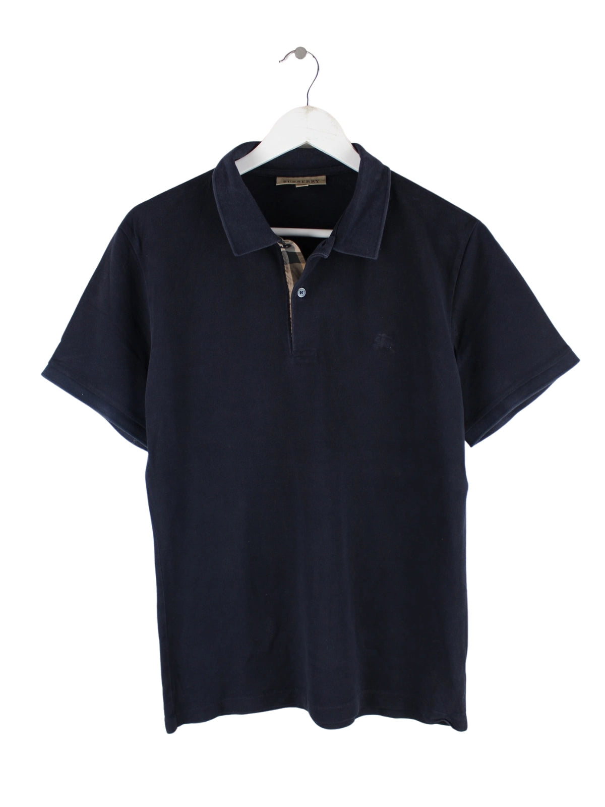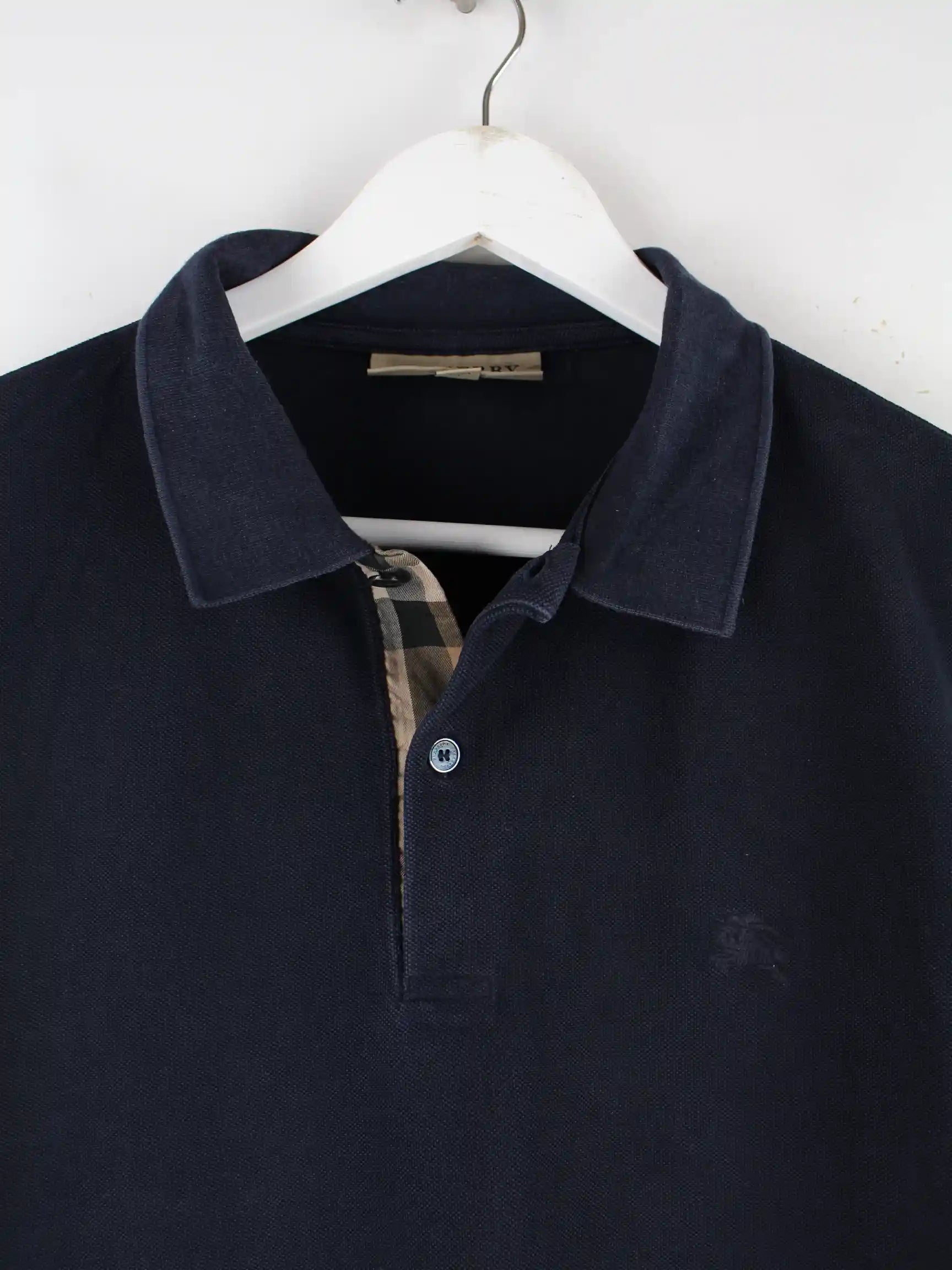 Schwarzes Poloshirt der Marke Burberry in Größe L. Es ist aus Baumwolle angefertigt und in sehr gutem Zustand bei uns zu bekommen.