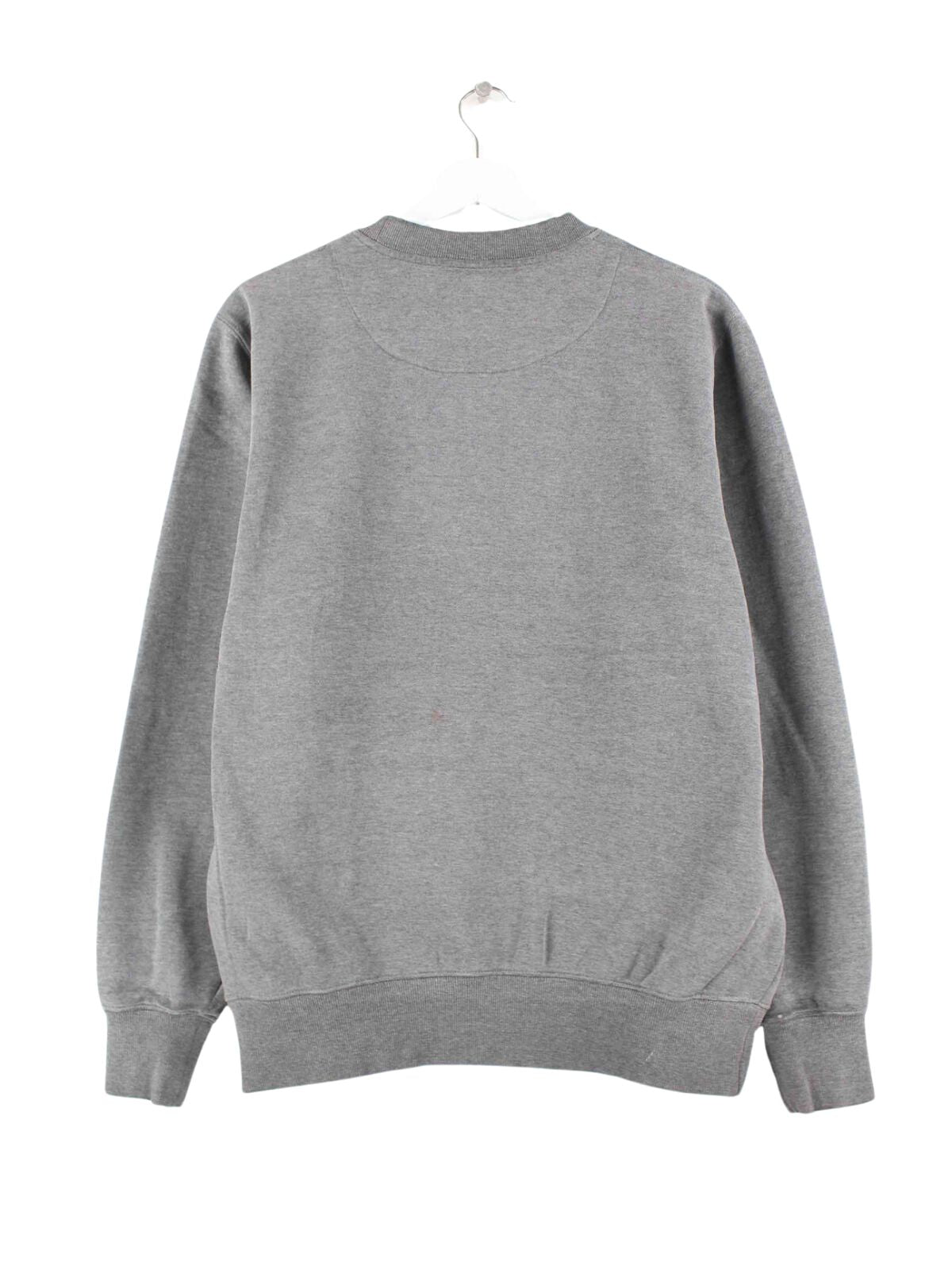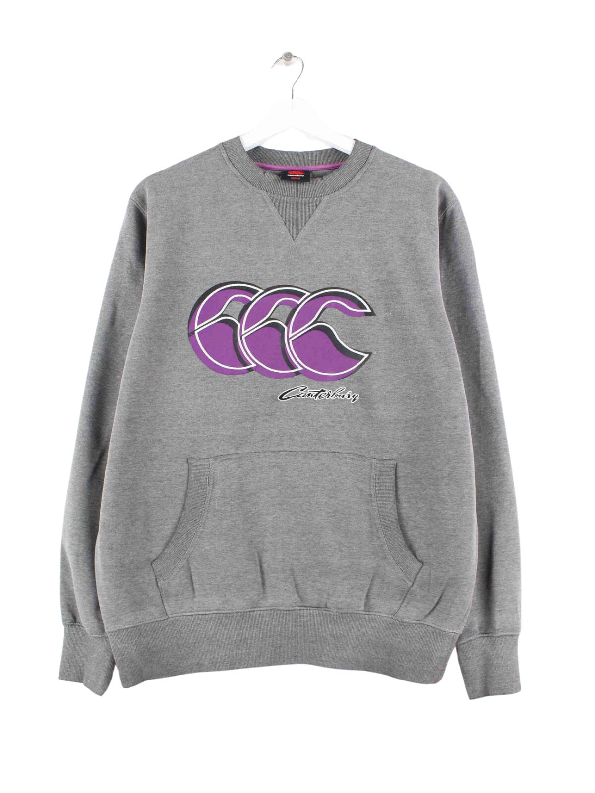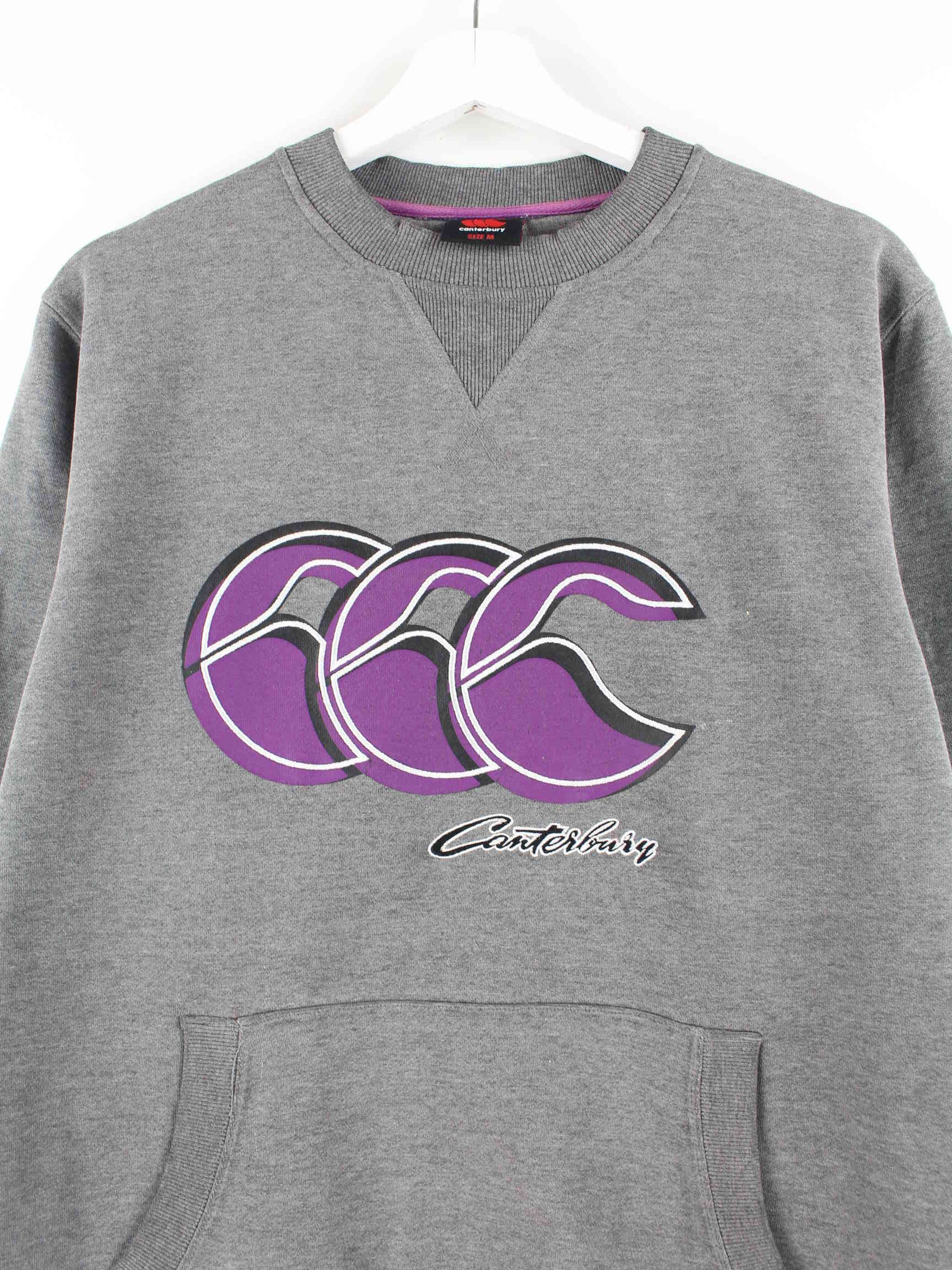 Sweater aus dem Hause Canterbury mit gestickten Mustern in Größe M. Er ist aus einer Baumwollmischung produziert und in Grau bei uns zu bekommen.