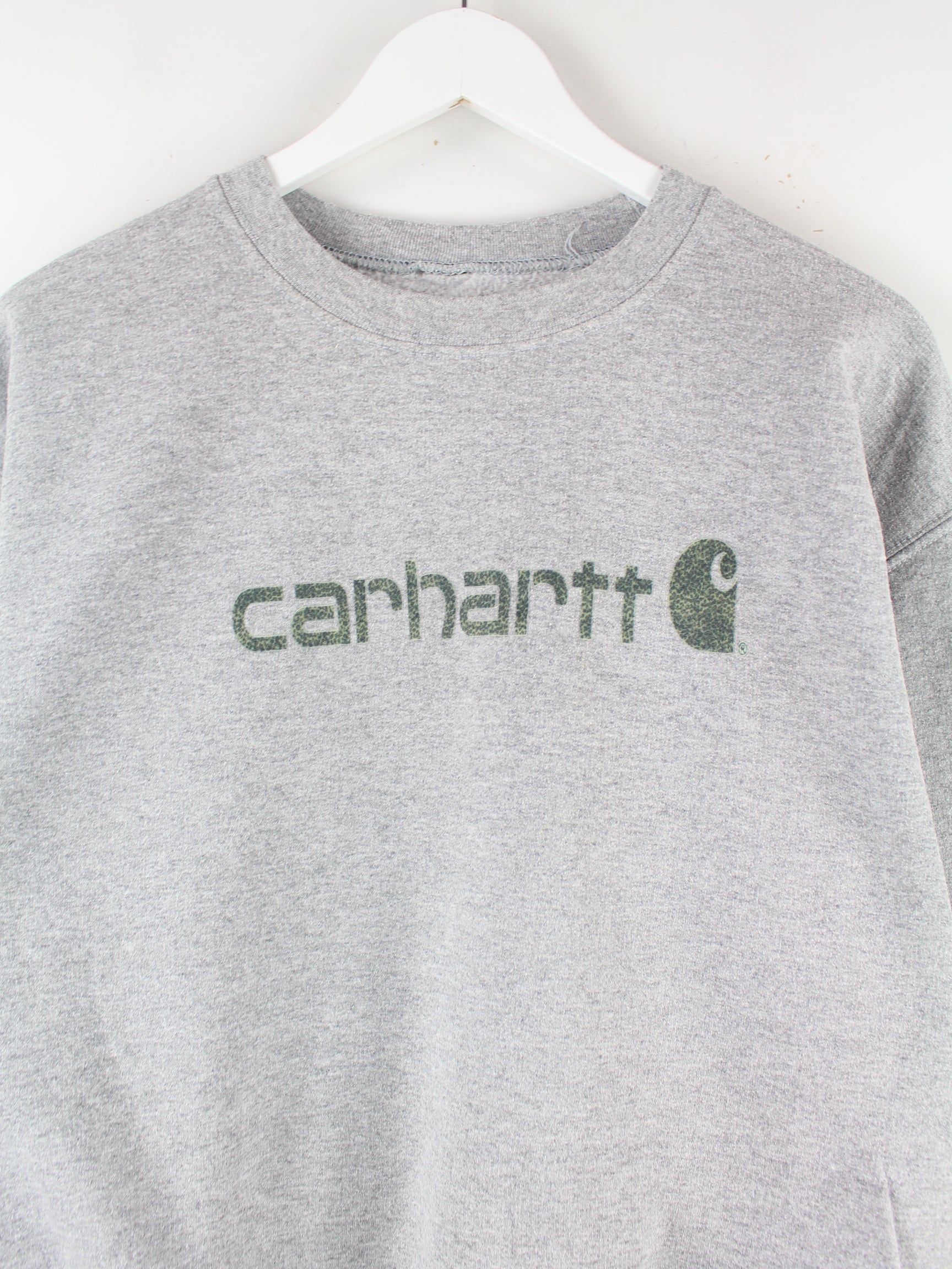 Sweater der Marke Carhartt in Größe M. Er ist aus einer Baumwollmischung gefertigt und in Grau in Stock. Mit tollem Print.