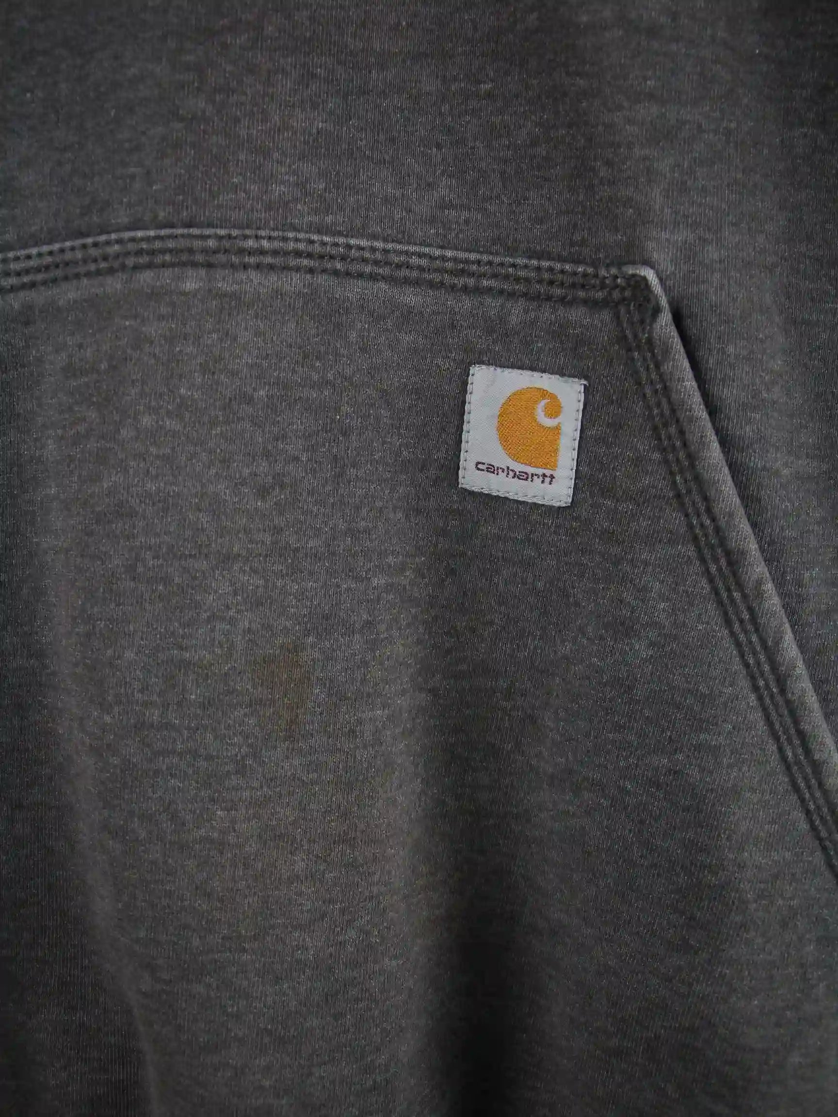 Hoodie der Marke Carhartt mit durchgehendem Reißverschluß in Größe XXL. Er ist aus einer Baumwollmischung hergestellt und in Grau lieferbar.