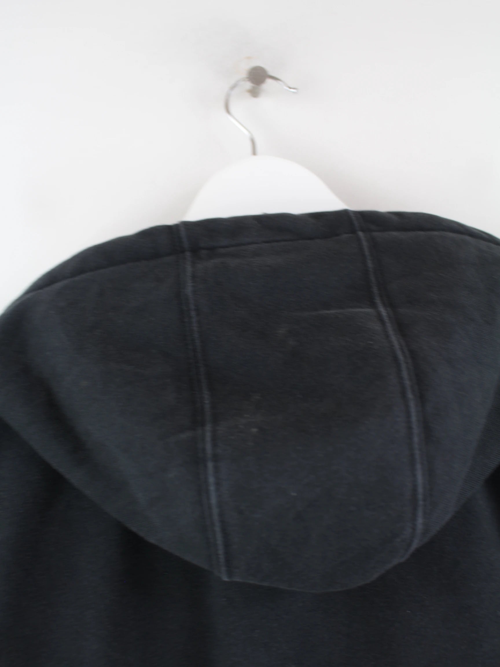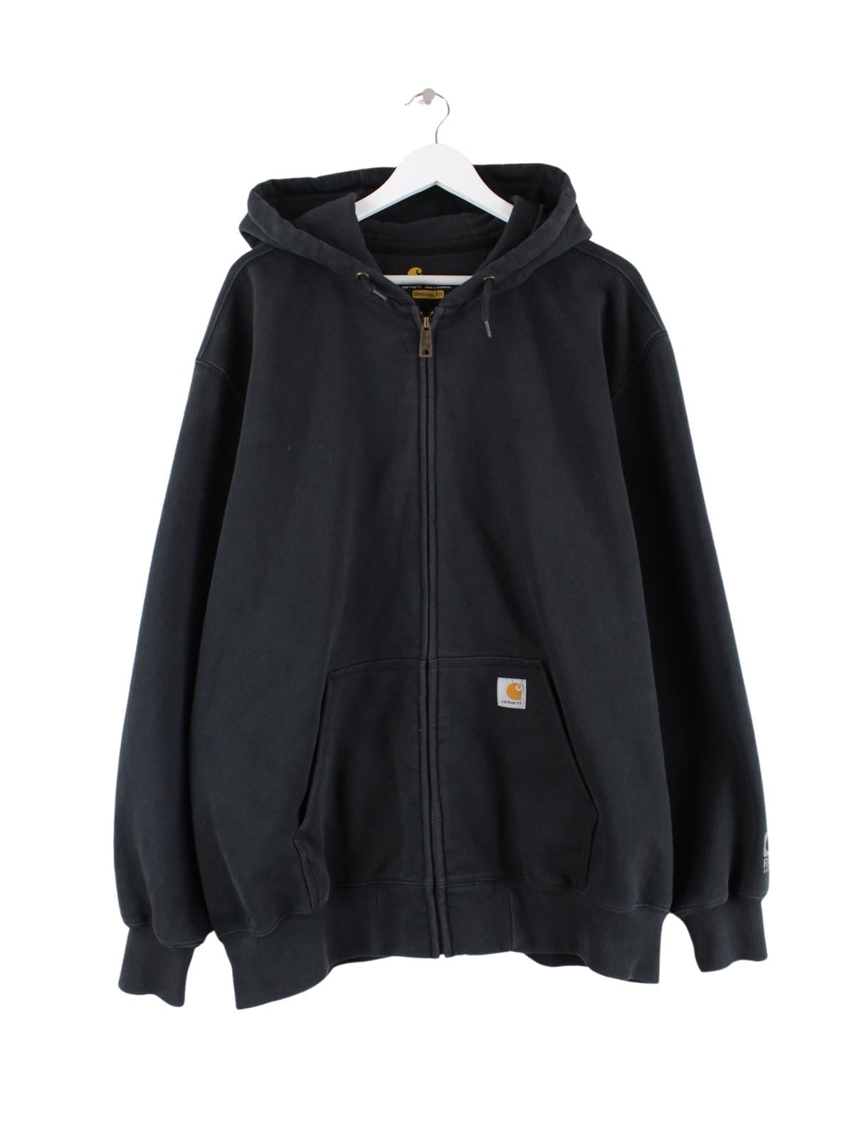 Schwarzer Hoodie mit durchgehendem Reißverschluß der Marke Carhartt in Größe XXL. Er ist aus einer Baumwollmischung produziert und in gutem Zustand zu haben.