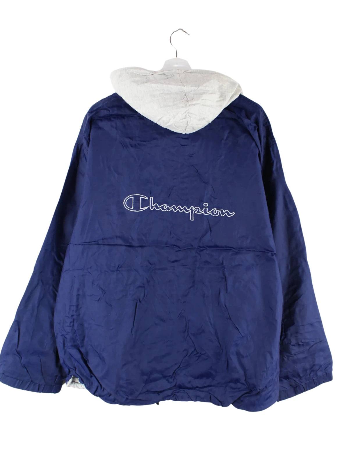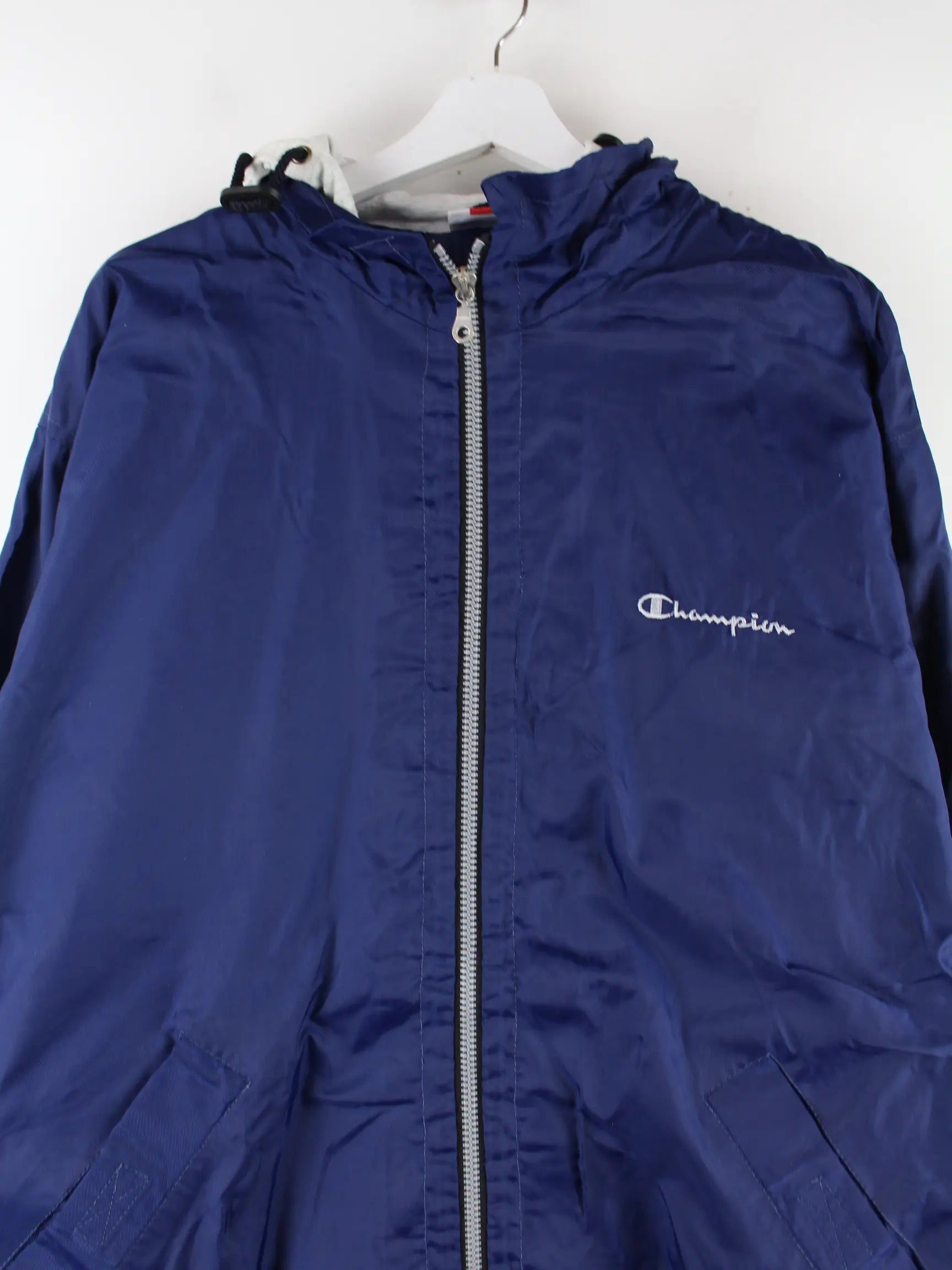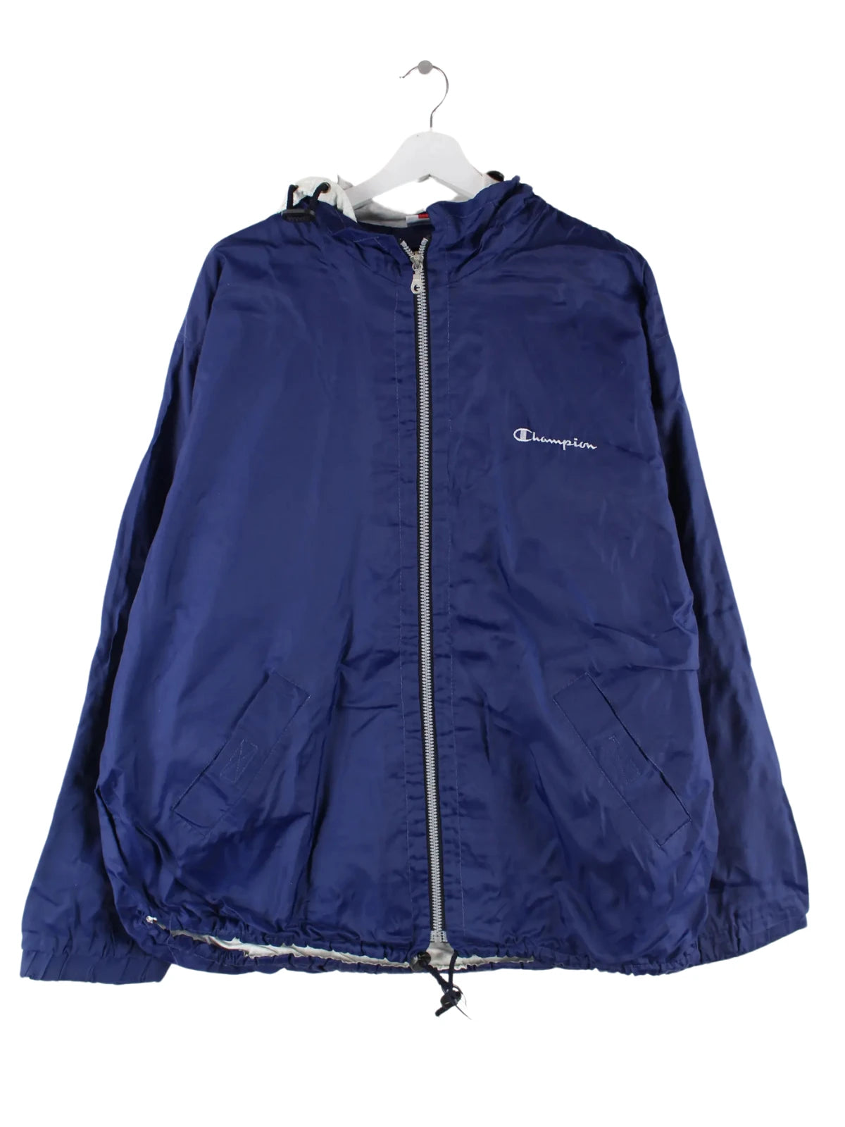 Leichte Jacke vom Label Champion mit gesticktem Logo in Größe XL. Sie ist aus Synthetik gefertigt und in Blau zu bekommen.