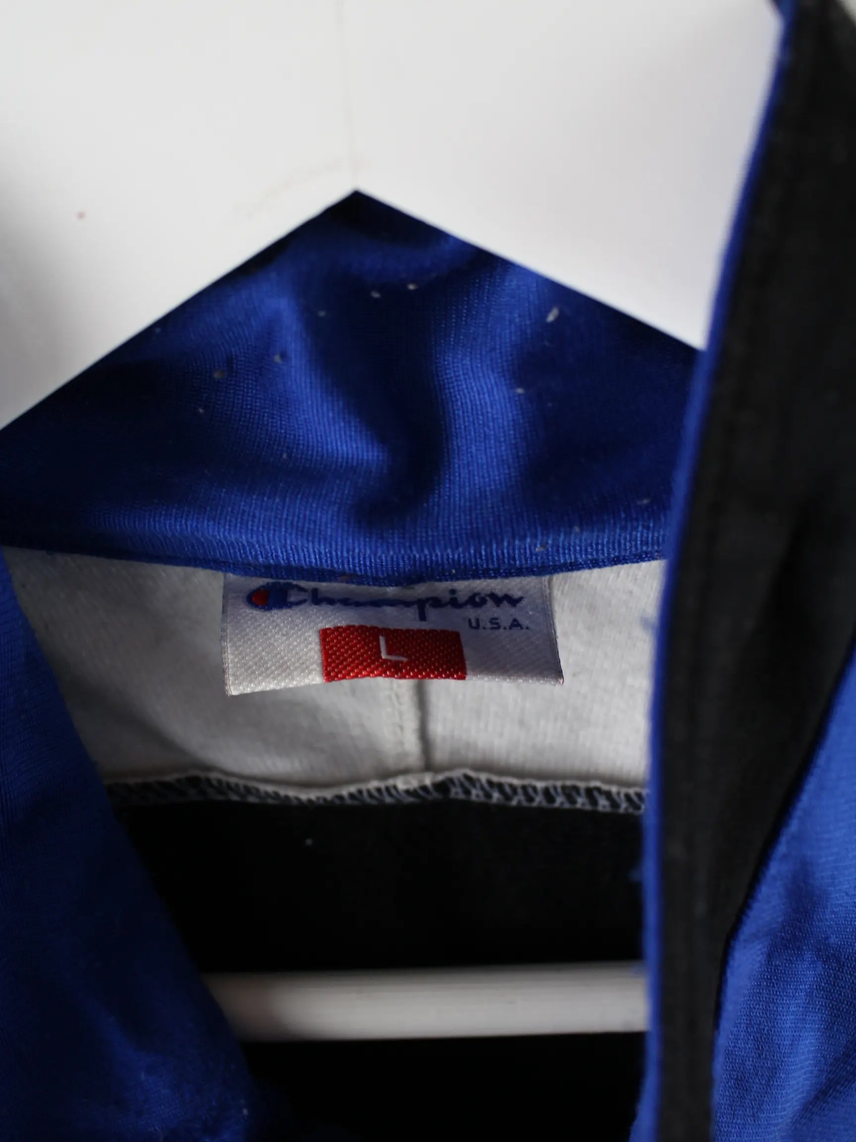 Blaue Trainingsjacke aus dem Hause Champion in Größe L. Sie ist aus Synthetik . Den Zustand würden wir als 'In Ordnung' bezeichnen (vergl. Bilder).