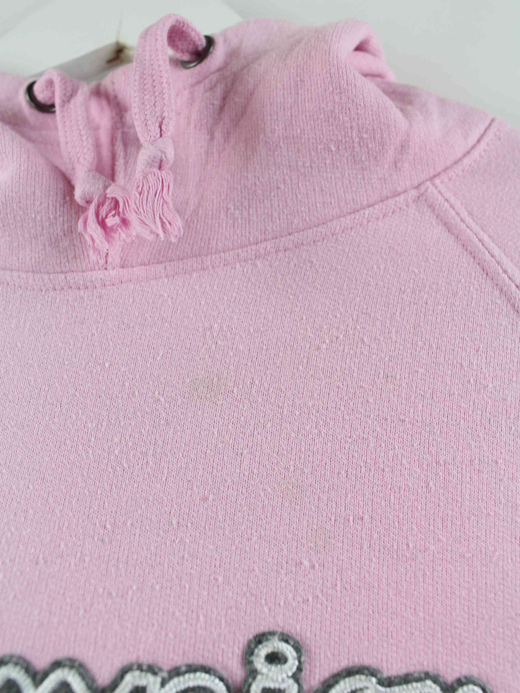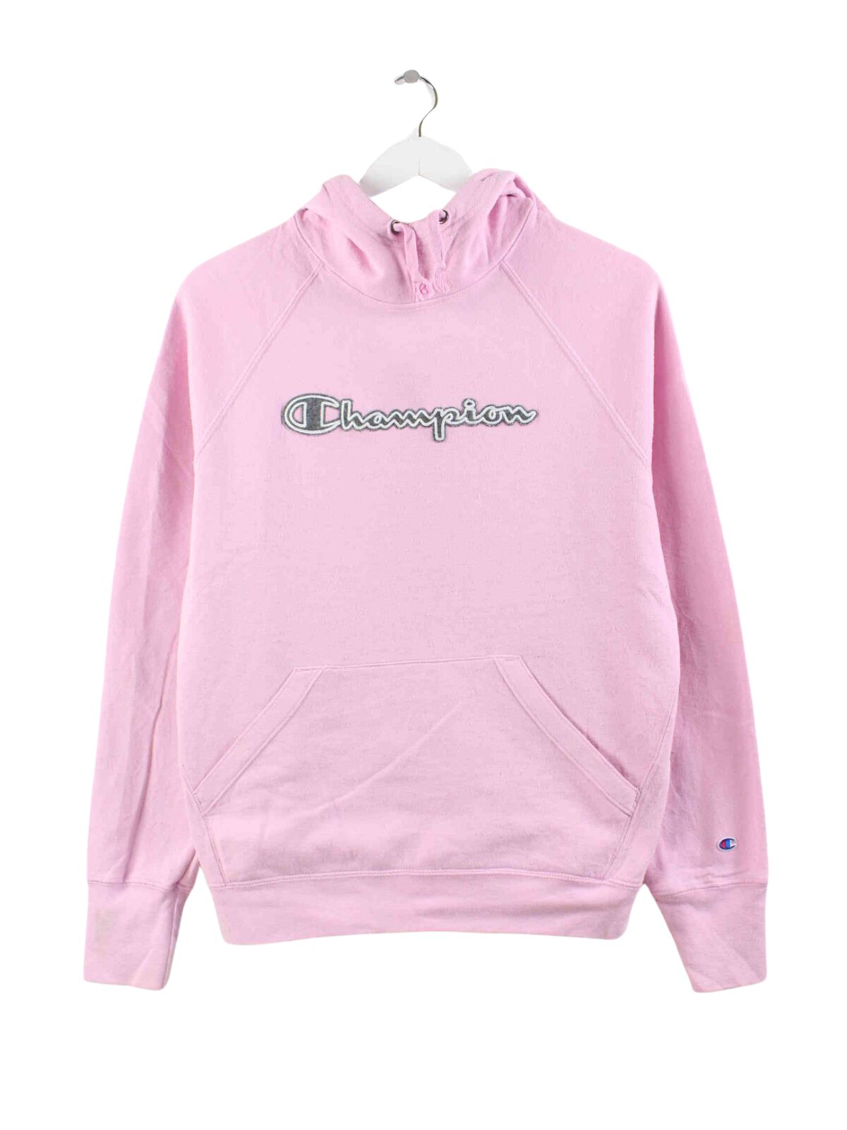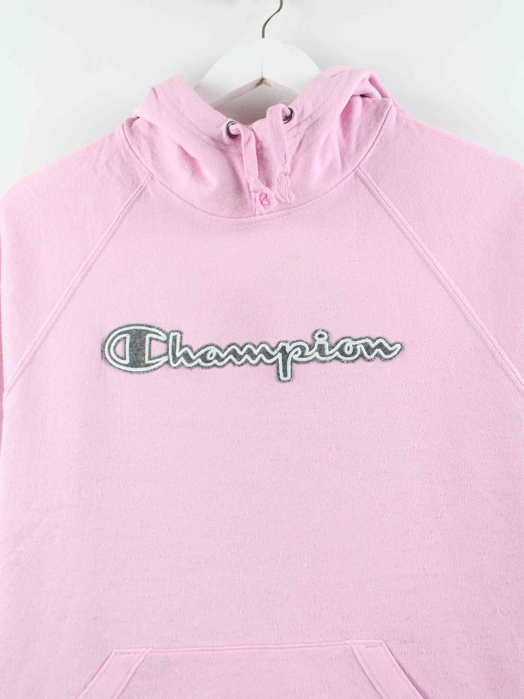 Hoodie vom Label Champion mit Stick in Größe M. Er ist aus einer Baumwollmischung produziert und in Rosa bei uns vorrätig.