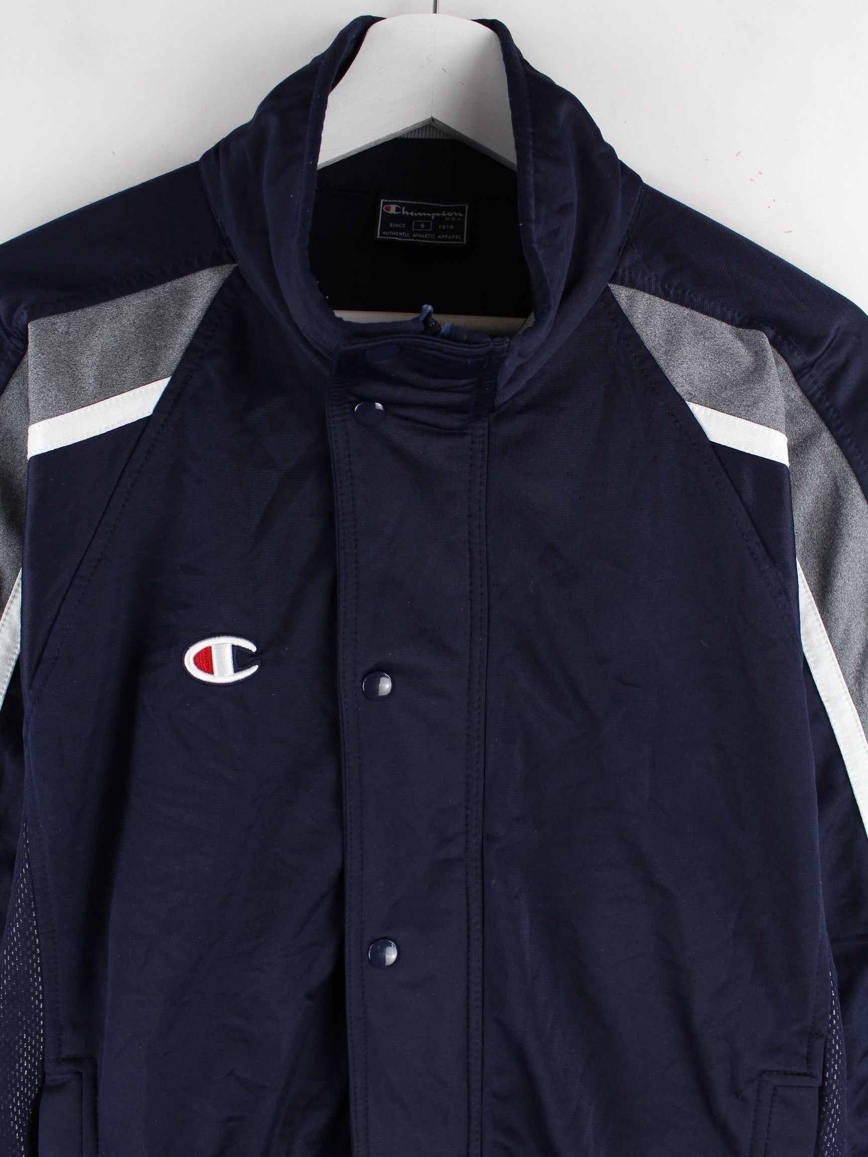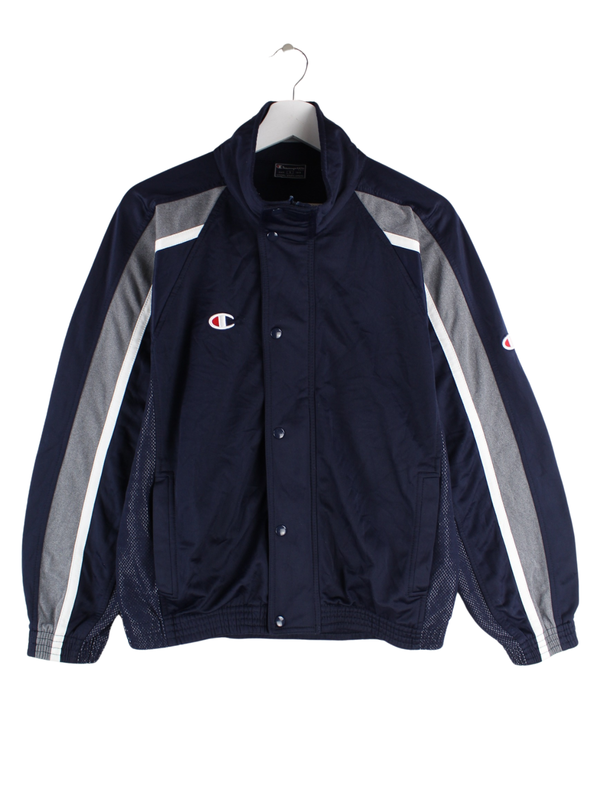 Trainingsjacke vom Brand Champion mit Stick in Größe S. Sie ist aus Synthetik hergestellt und in Blau zu haben.